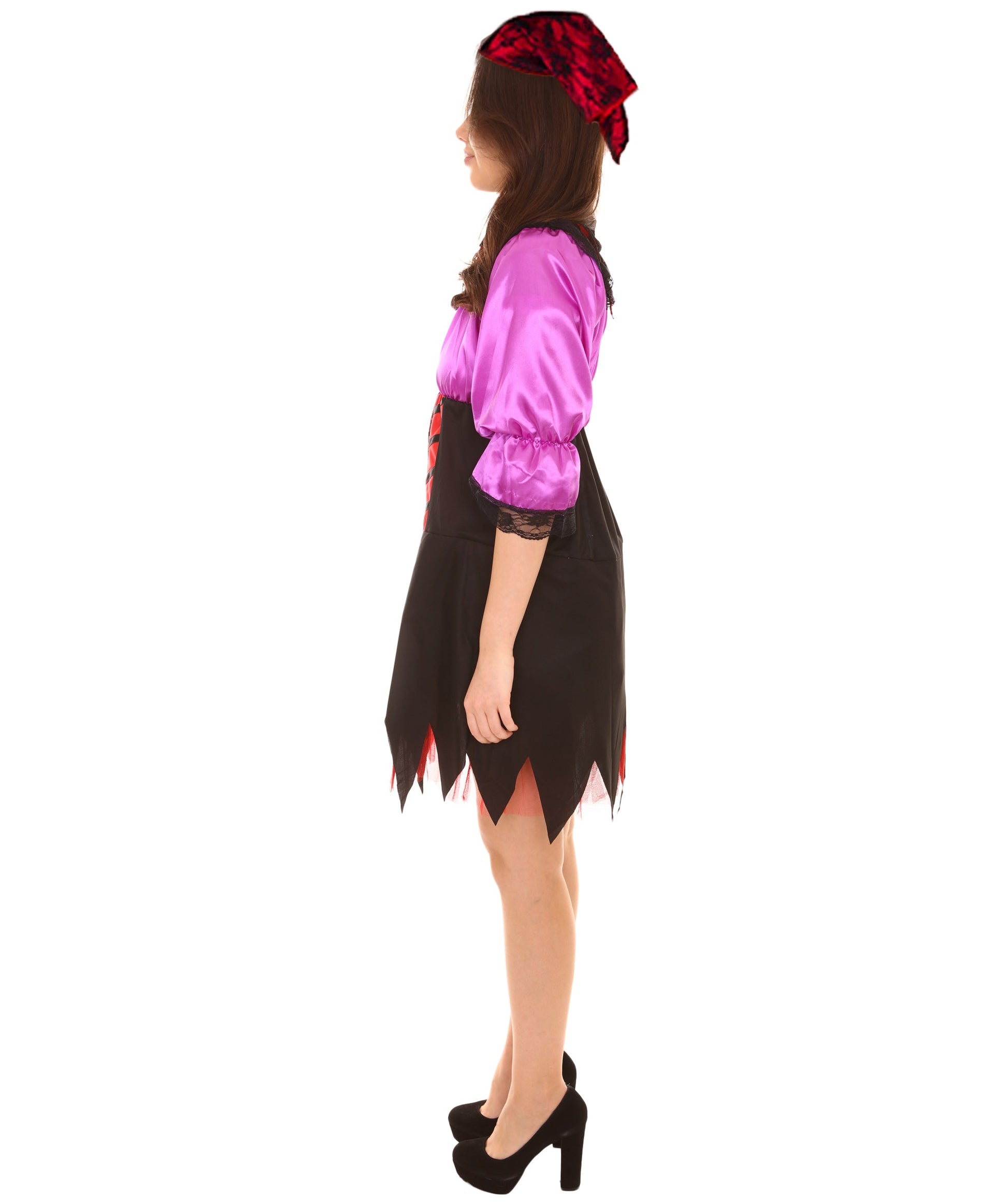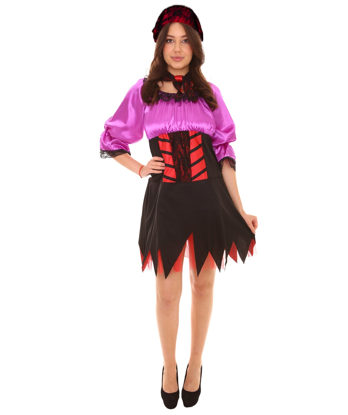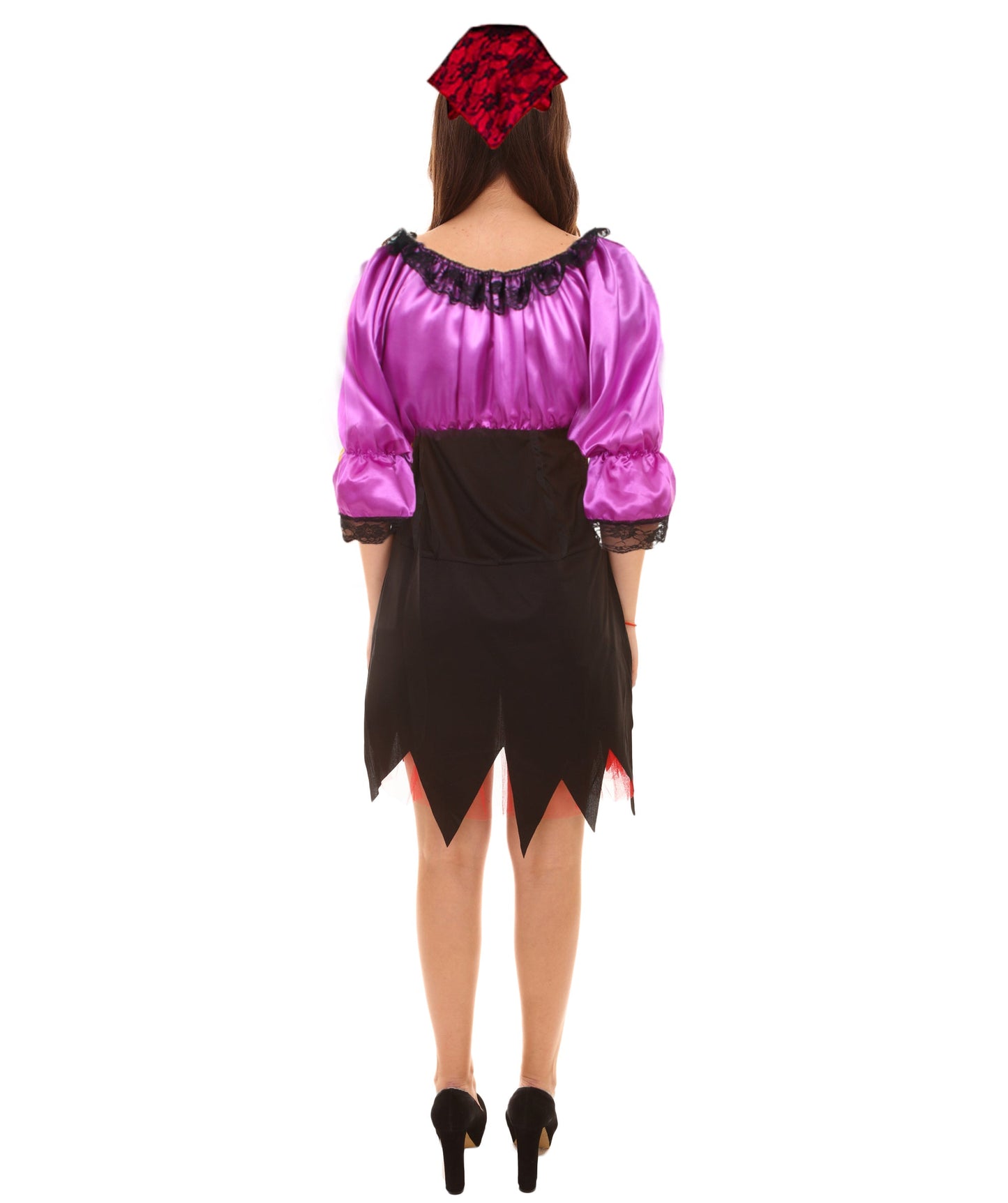 To complete the look, the costume comes with a matching headscarf. The headscarf is made from soft red and black mixed-color fabric and can be styled in a variety of ways to suit your personal taste.