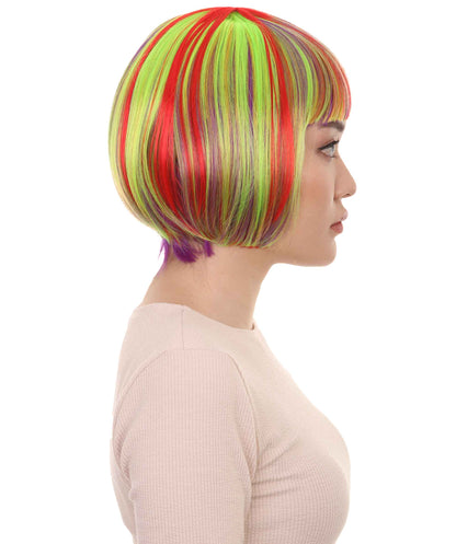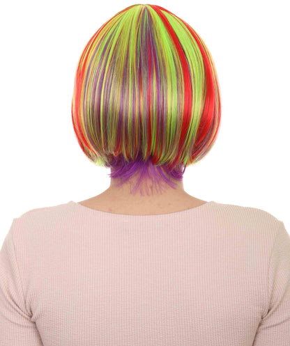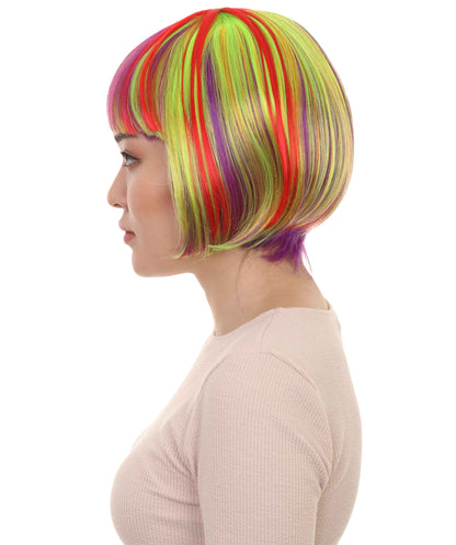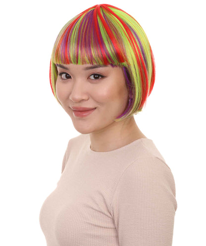 Womens Rainbow Bob Wig | Colorful Party Ready Halloween Wigs | Premium Breathable Capless Cap