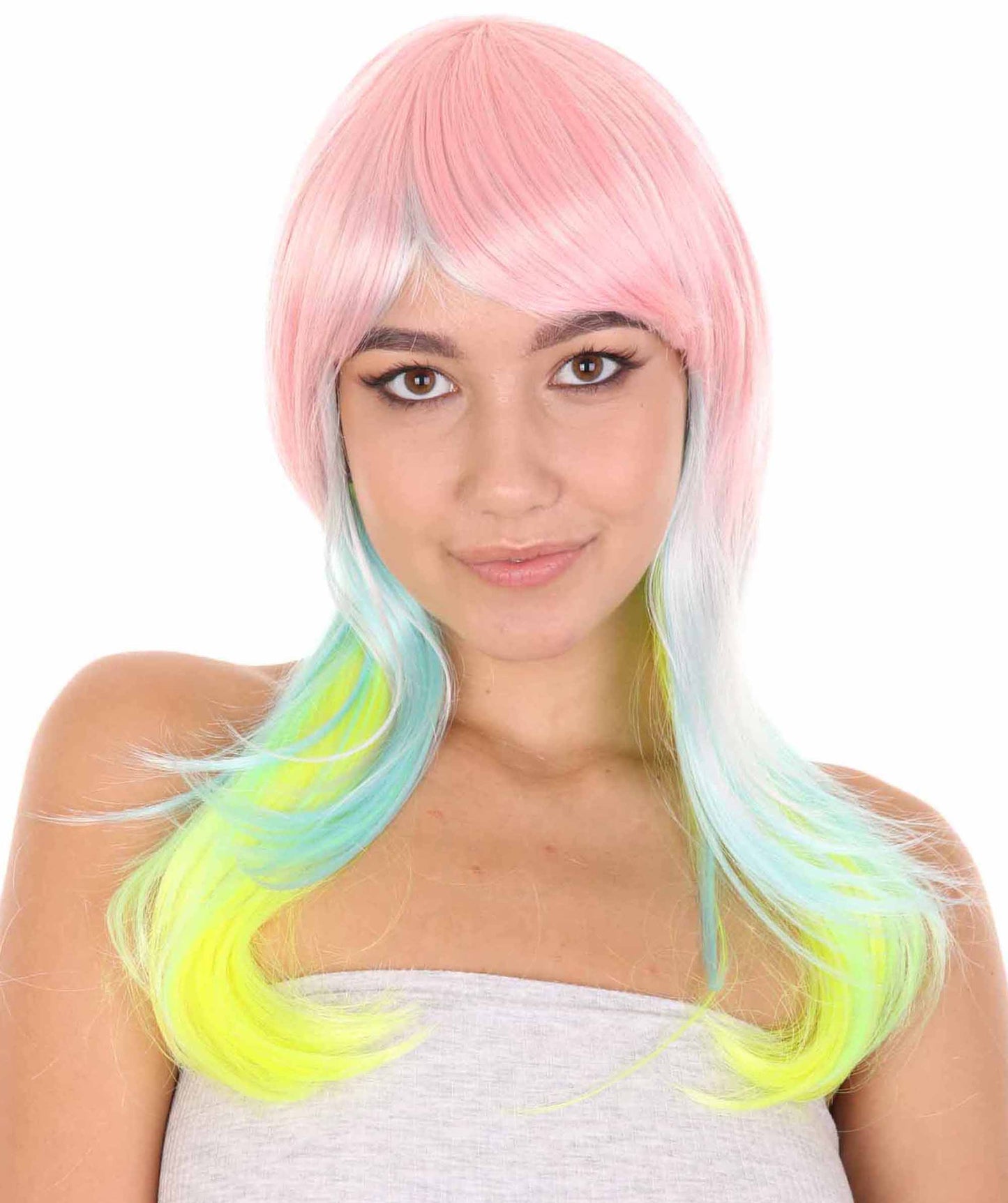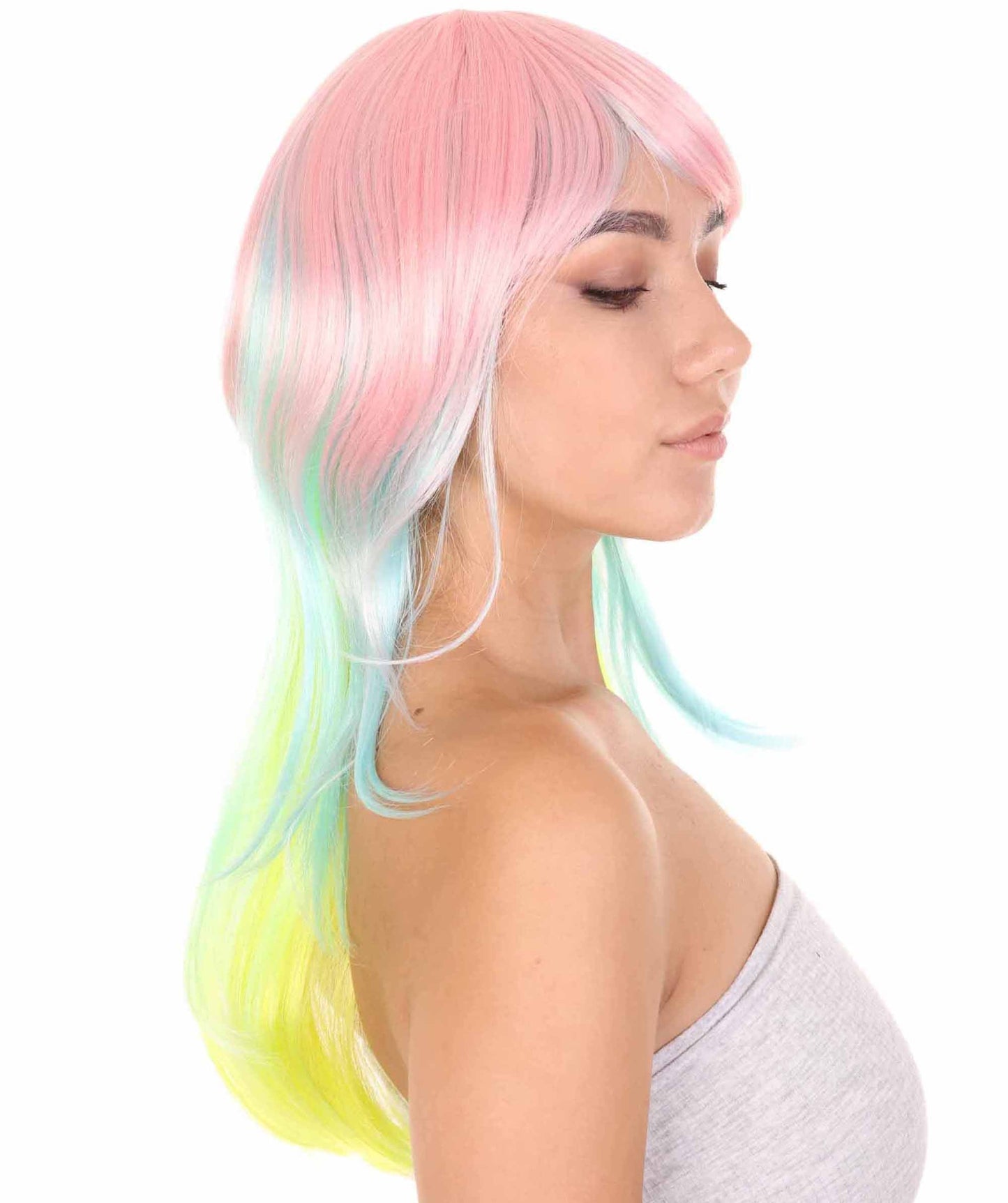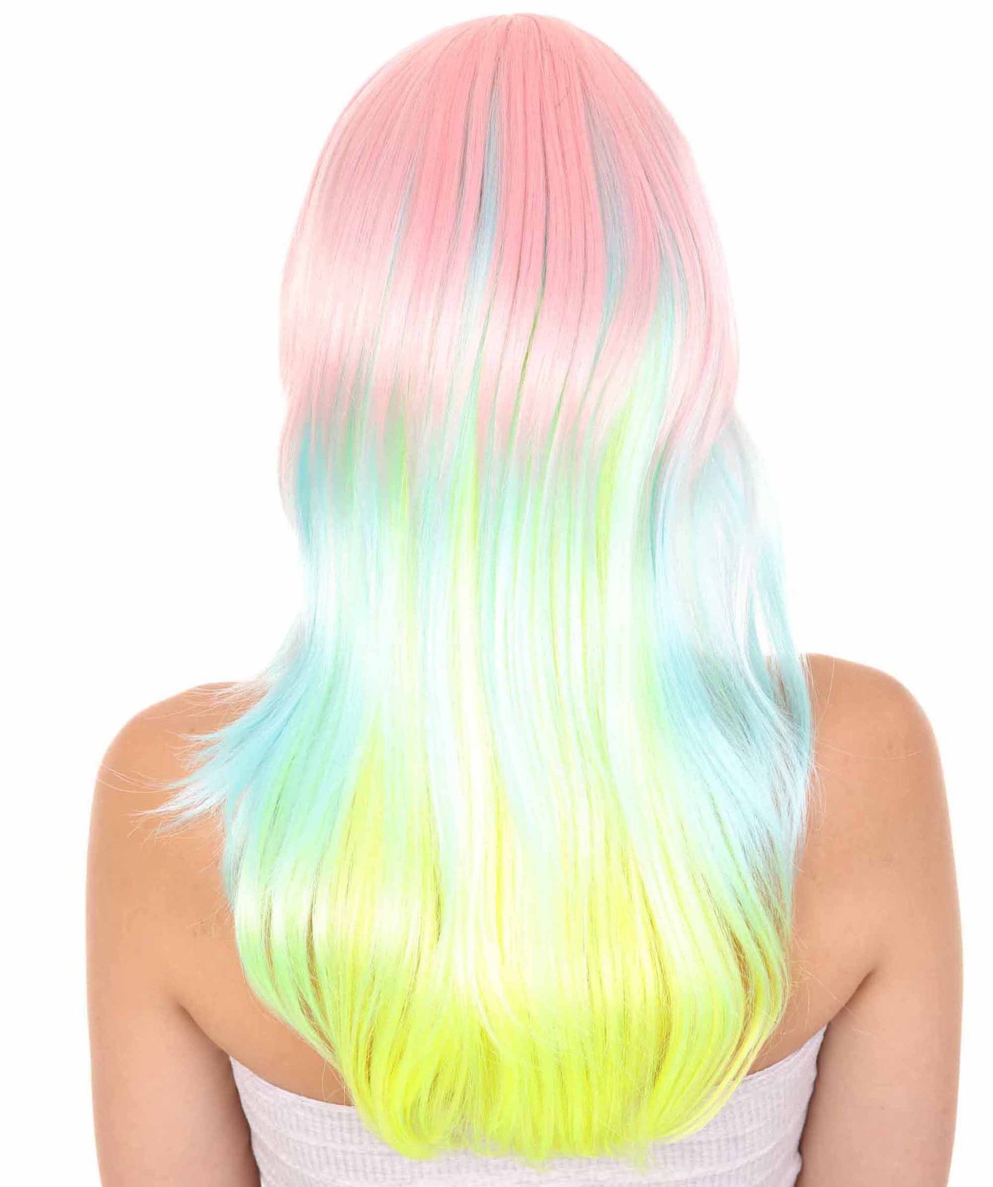 Rainbow Long Straight Womens Wig | Party Ready Halloween Wig | Premium Breathable Capless Cap