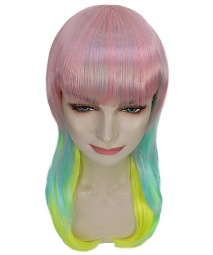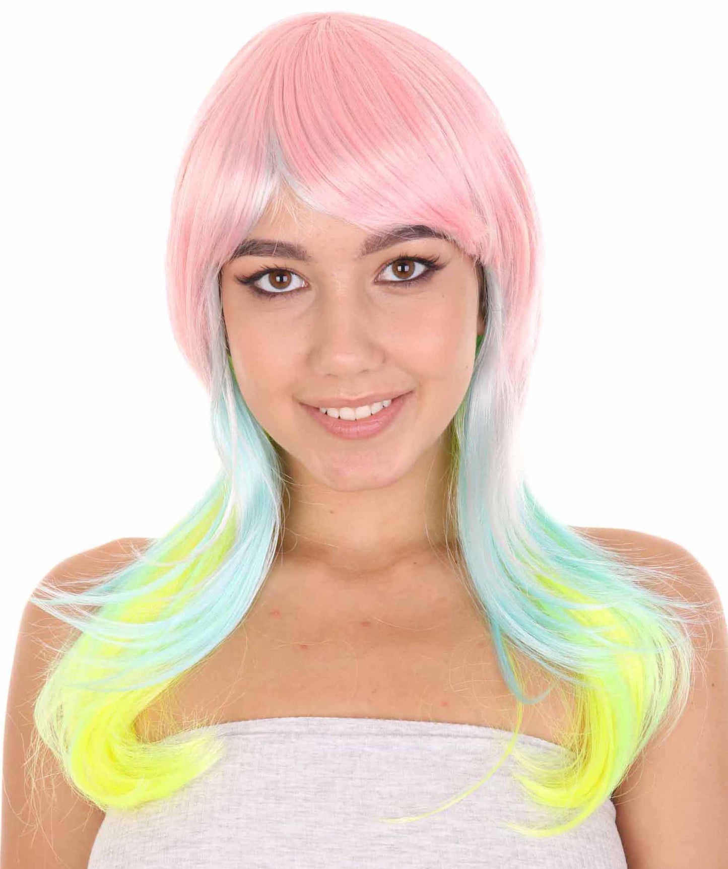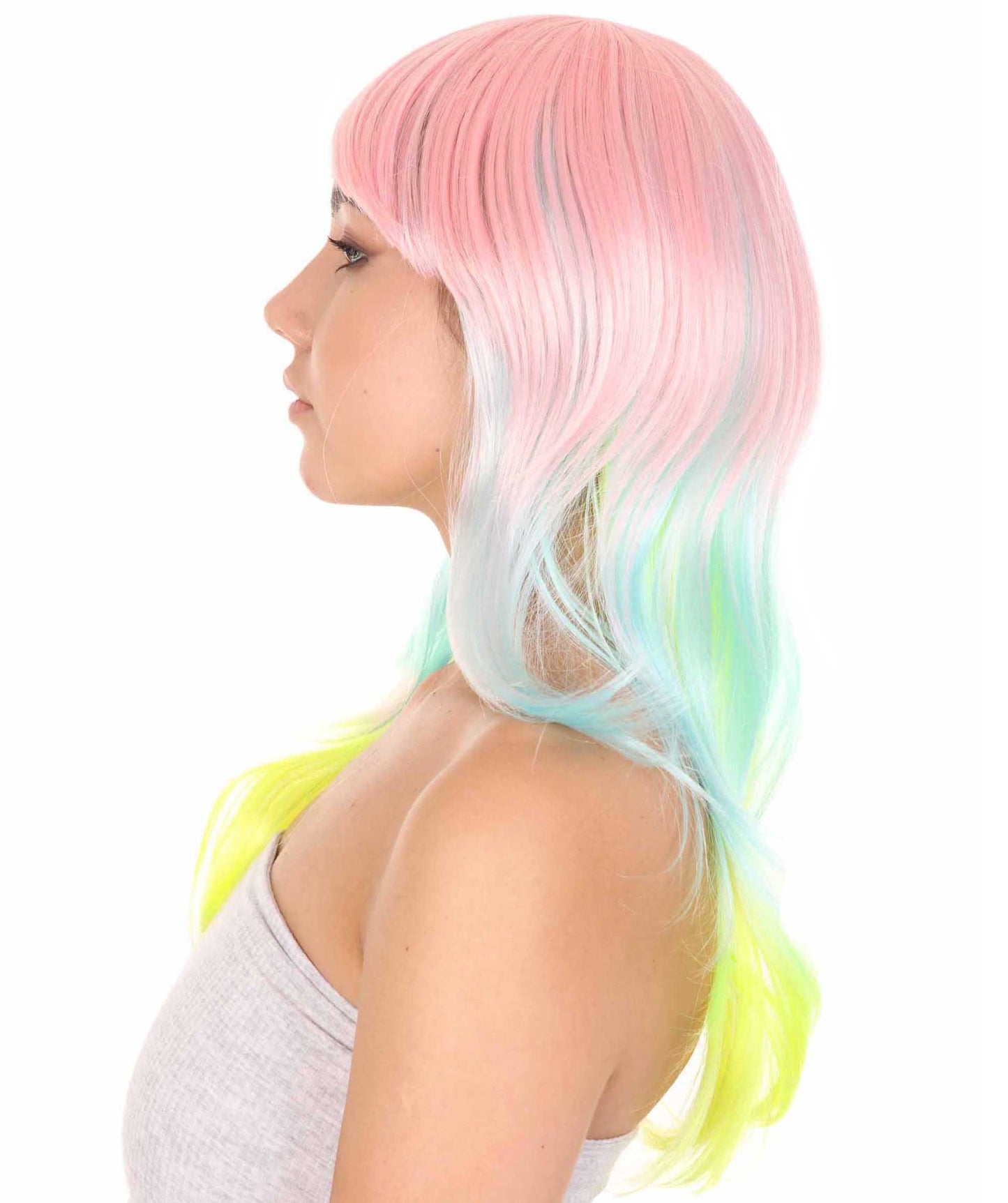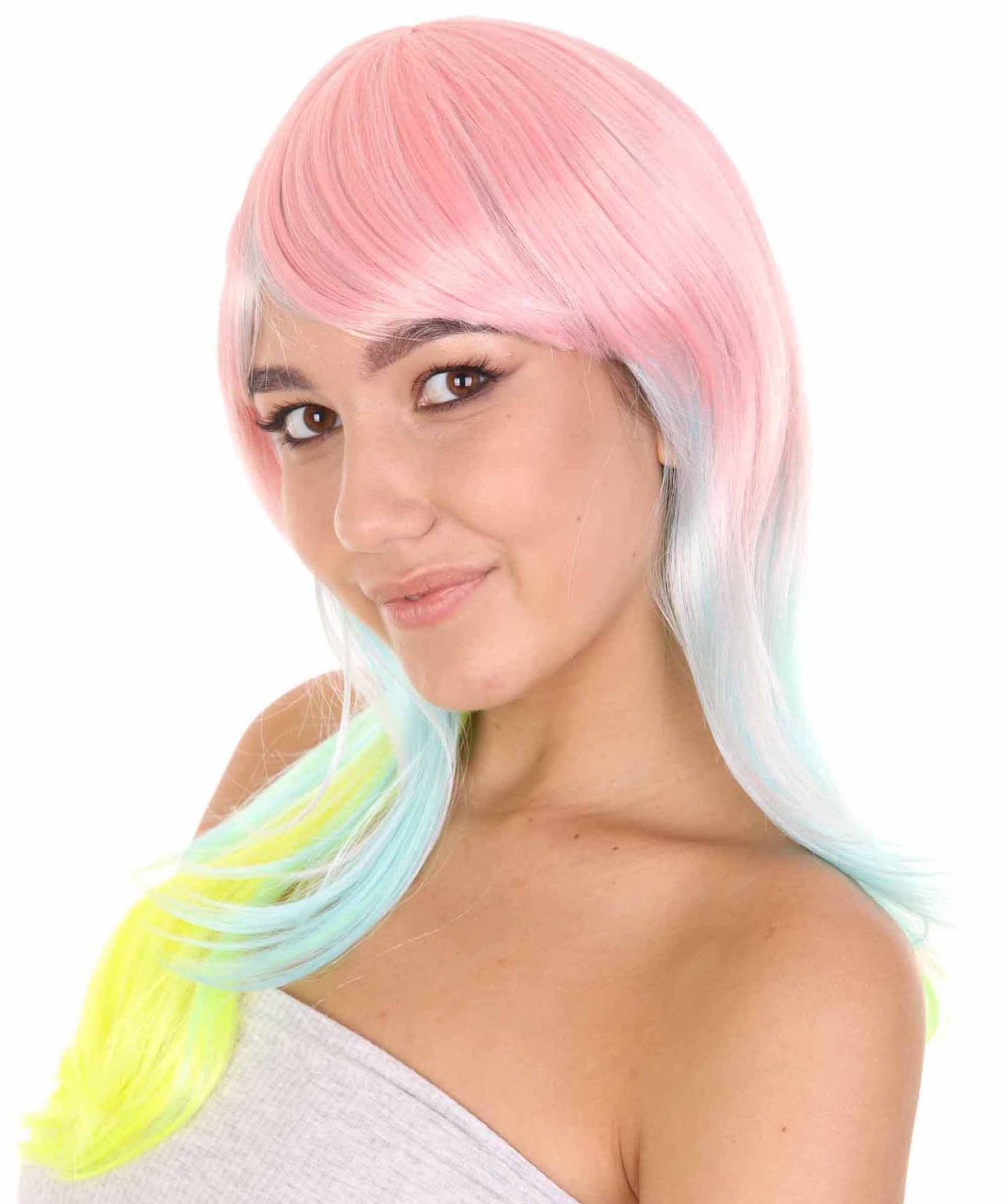 Rainbow Long Straight Womens Wig | Party Ready Halloween Wig | Premium Breathable Capless Cap