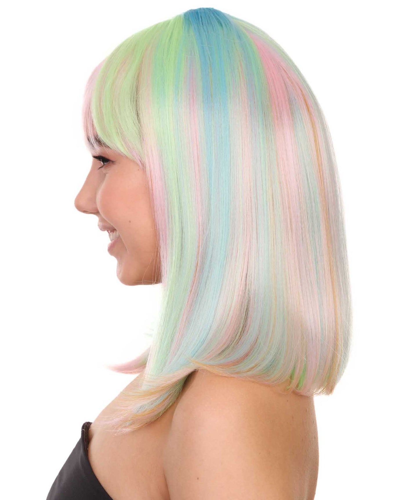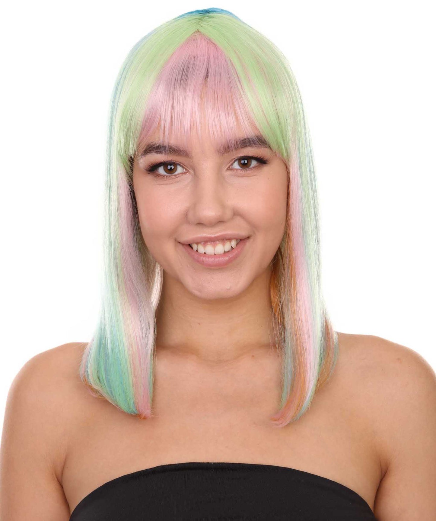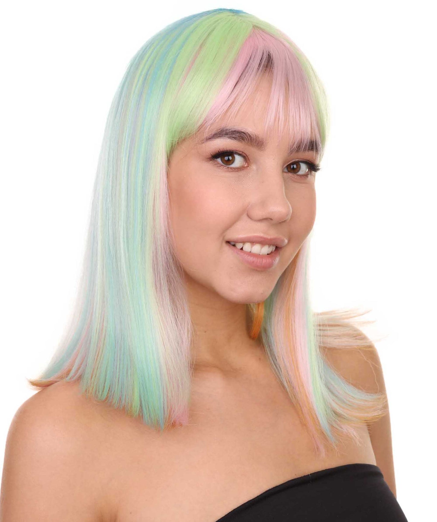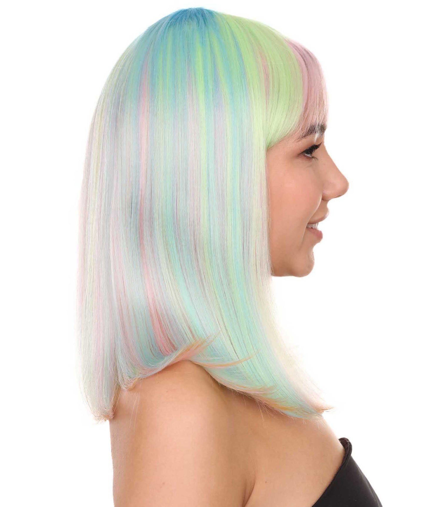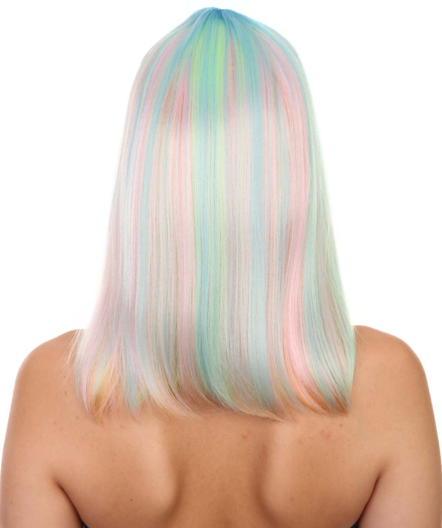 Women's 14" Inch Medium Length Halloween Fancy Rainbow Rave Mermaid Costume Wig, Synthetic Soft Fiber Hair, Perfect for your next Festival and Group Anime Party! | HPO