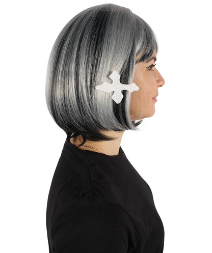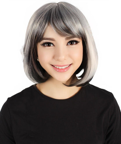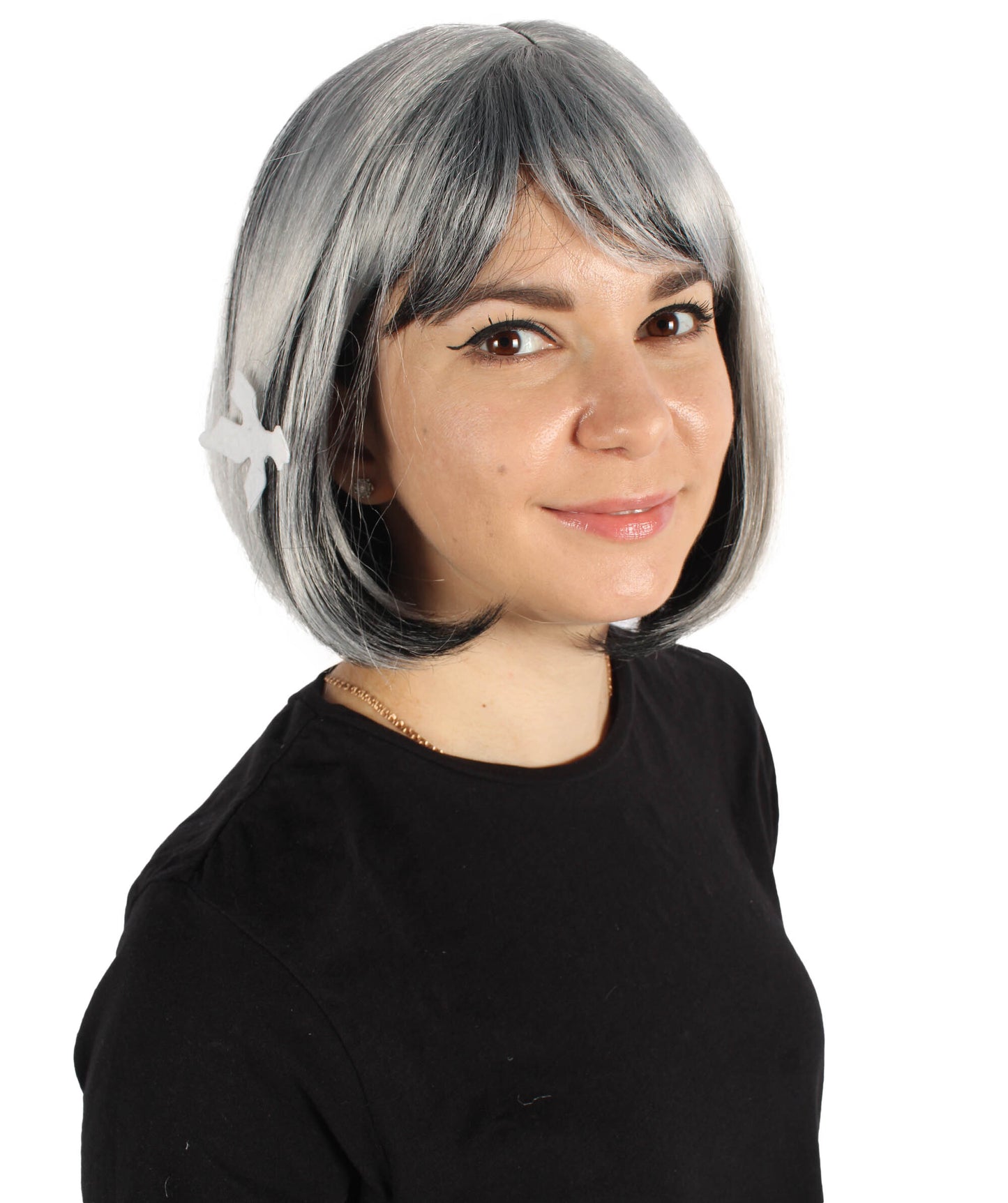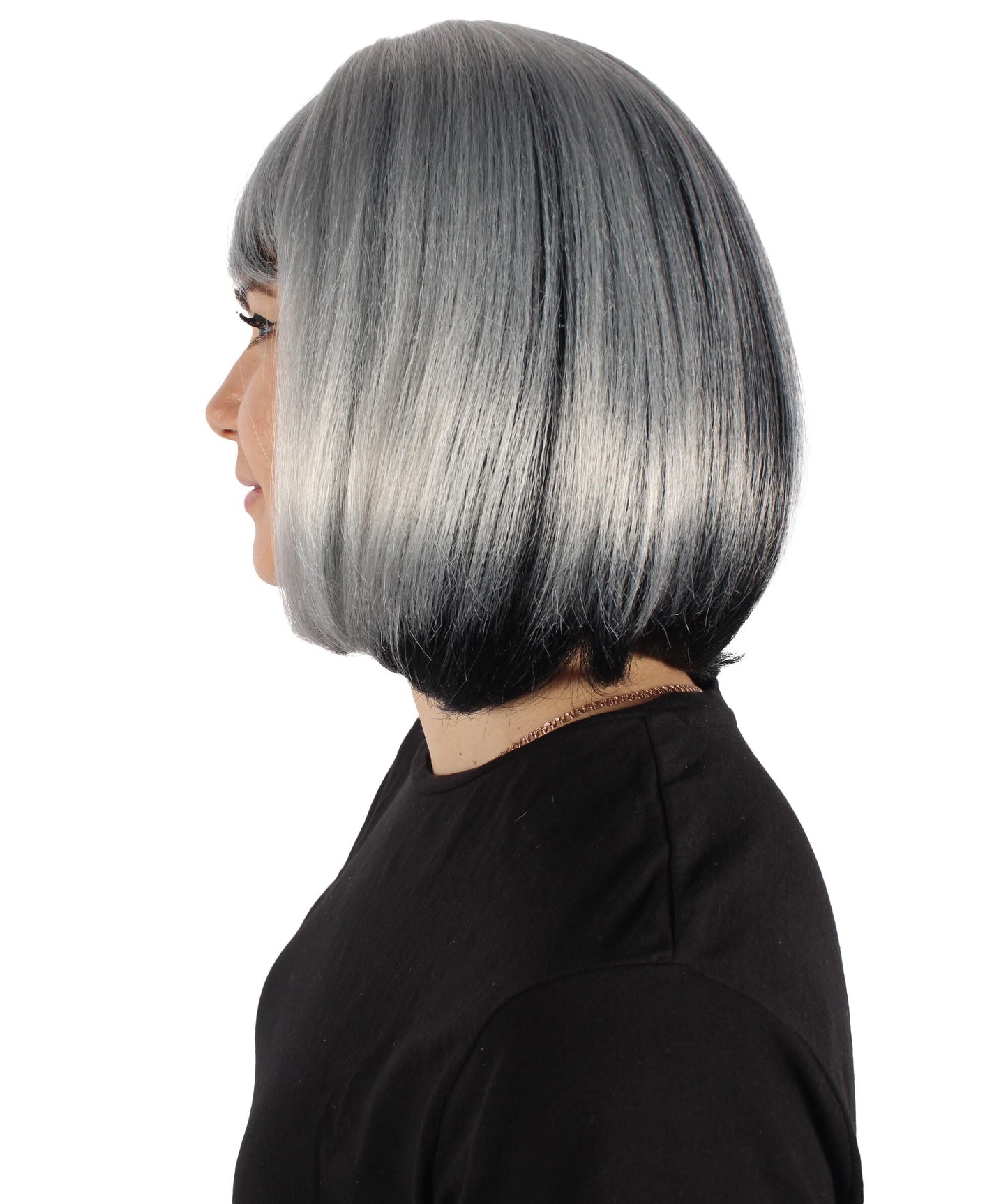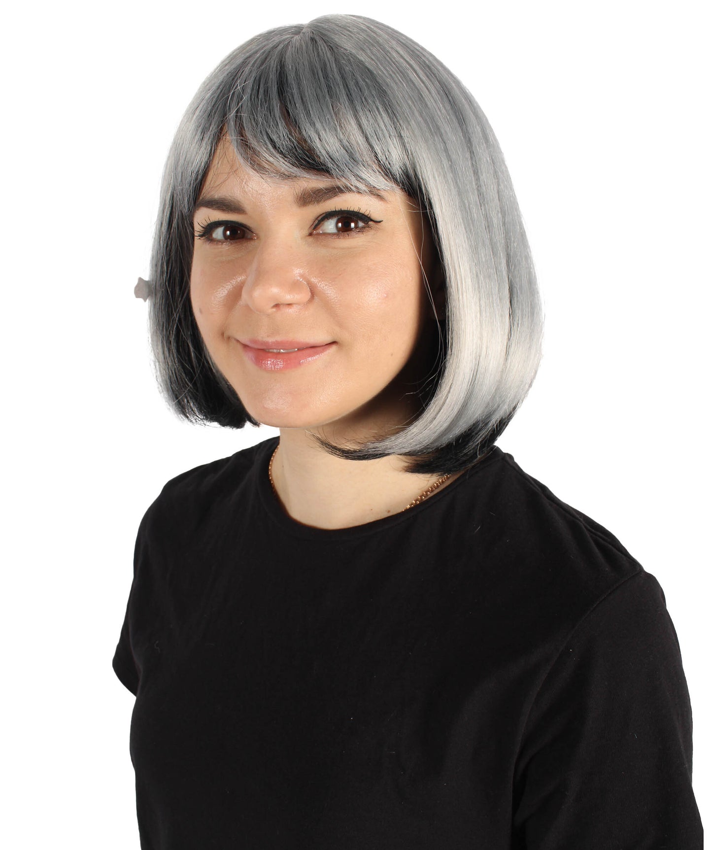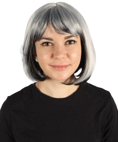 HPO Women's Rapper Black & White Wig, Perfect for Halloween, Flame-retardant Synthetic Fiber