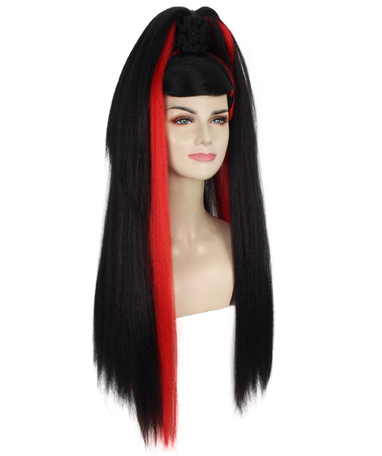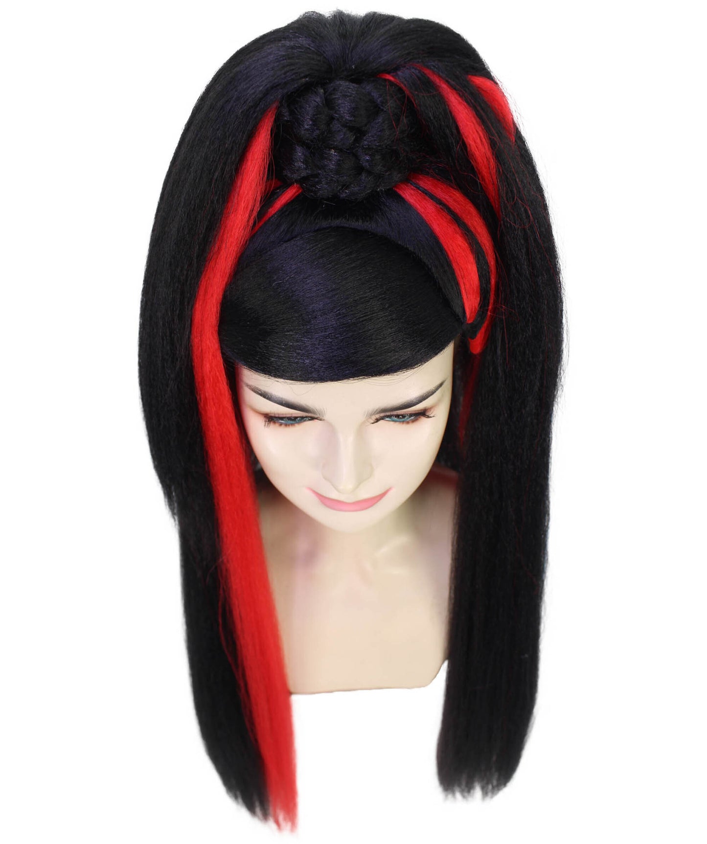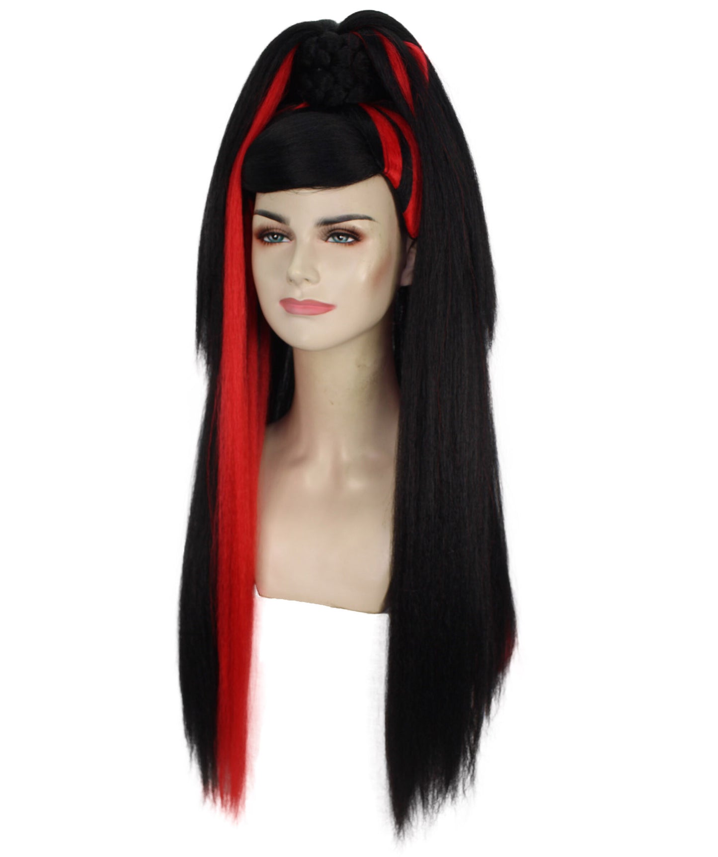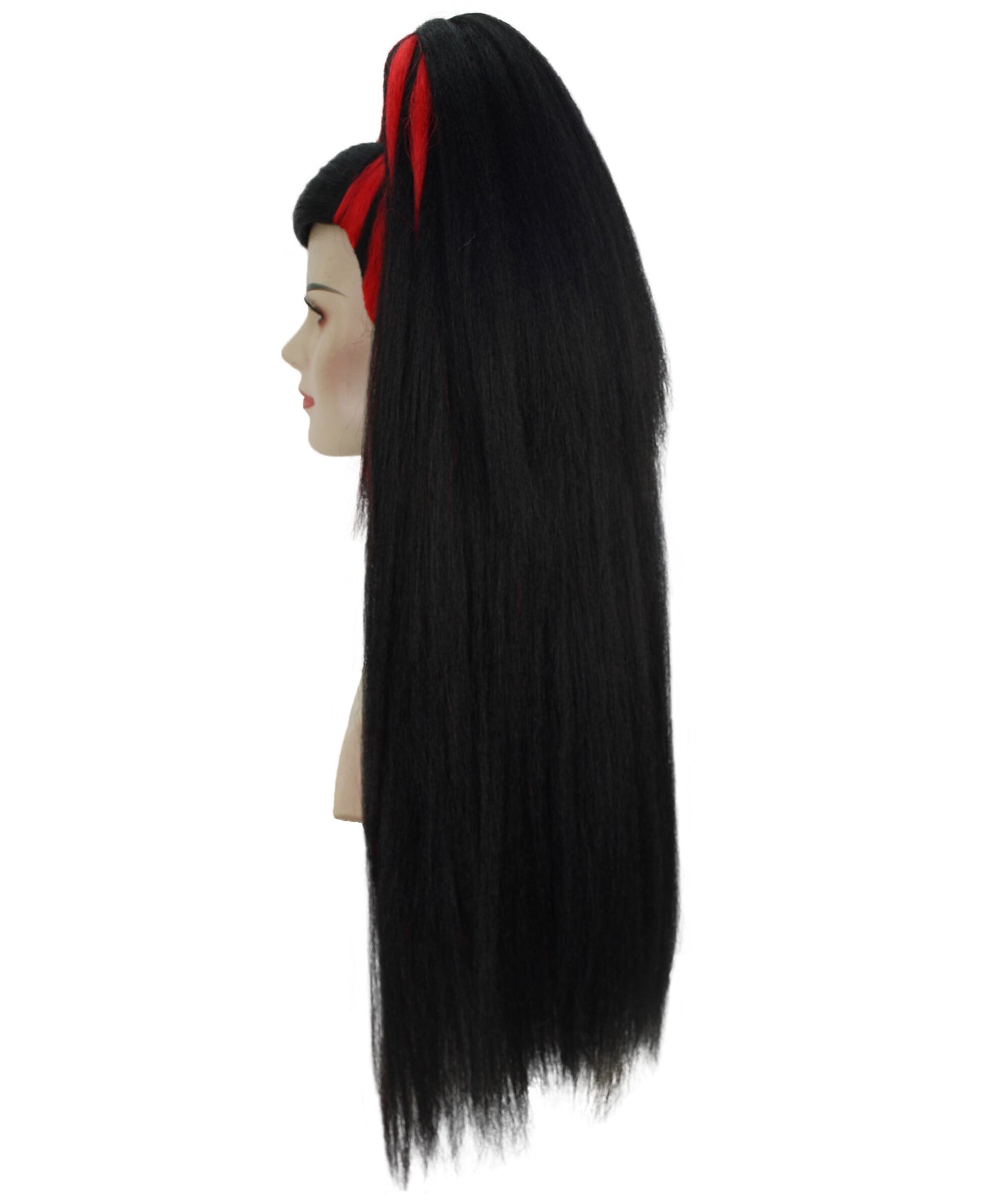 Hey there, costume Rockstar! Need an extra punch for your Halloween or look? Our Ponytail Drag Queen Wig in Red and Black color is the secret weapon you’ve been hunting for!