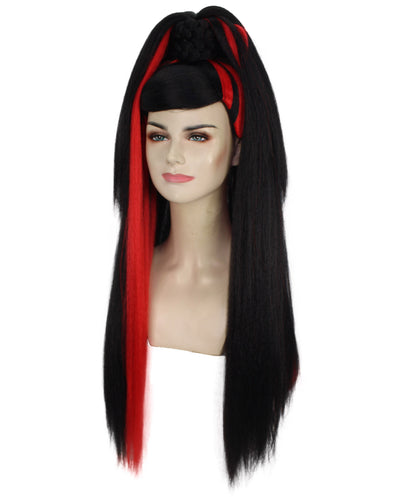HPO Women's Red and Black Ponytail Drag Queen Wig,Perfect for Halloween,Flame-retardant Synthetic Fiber