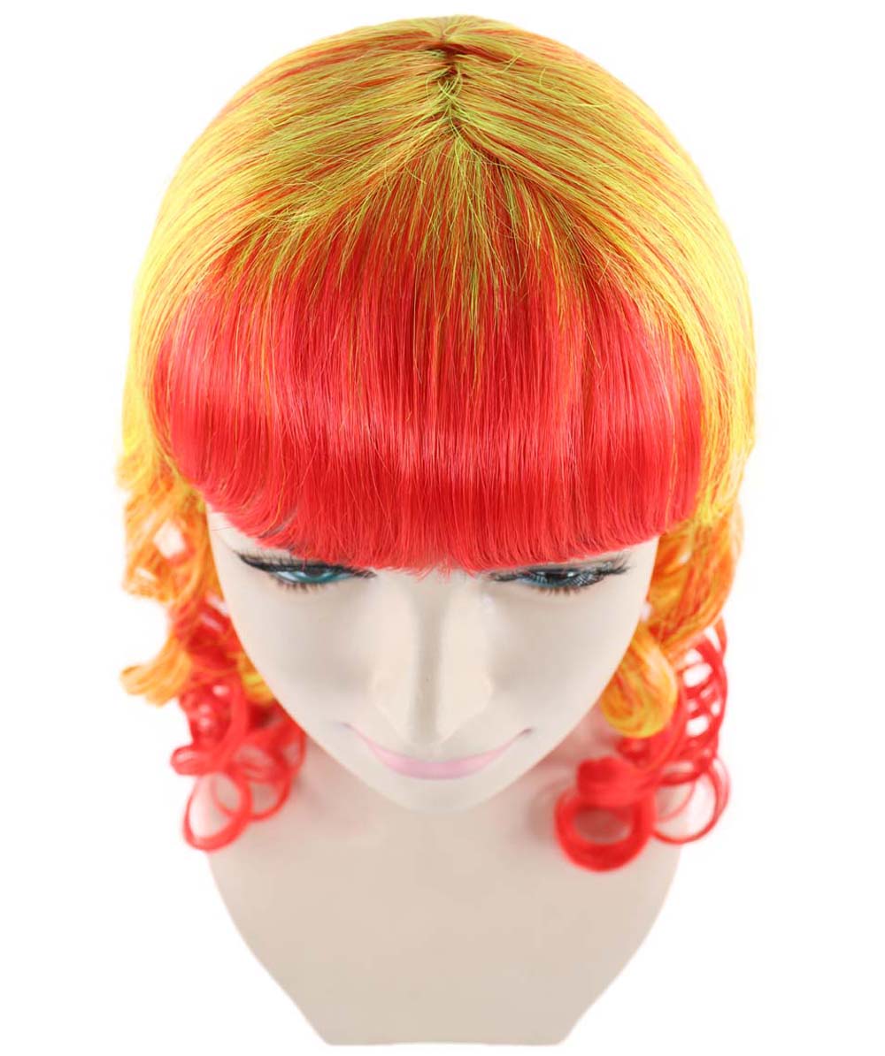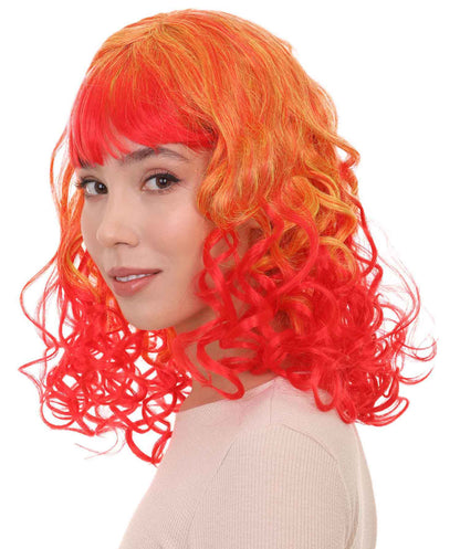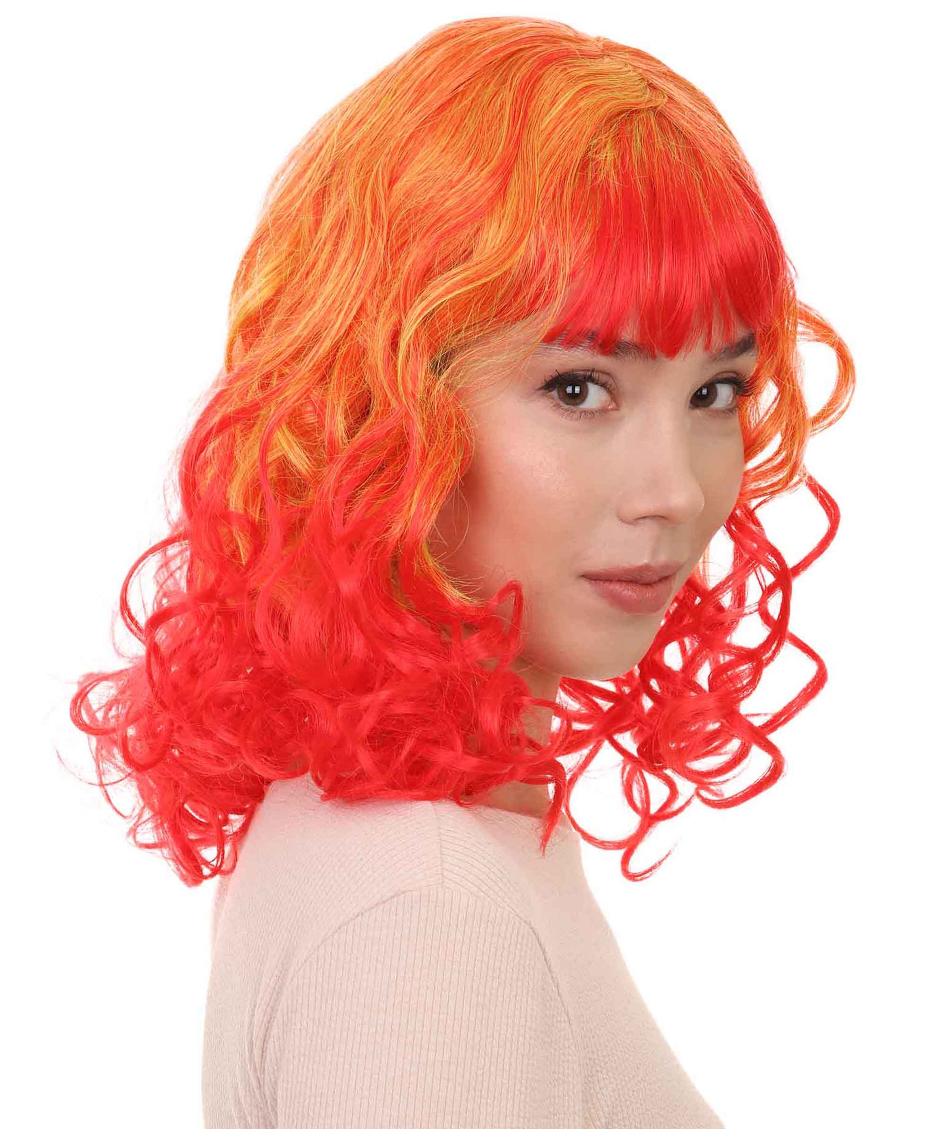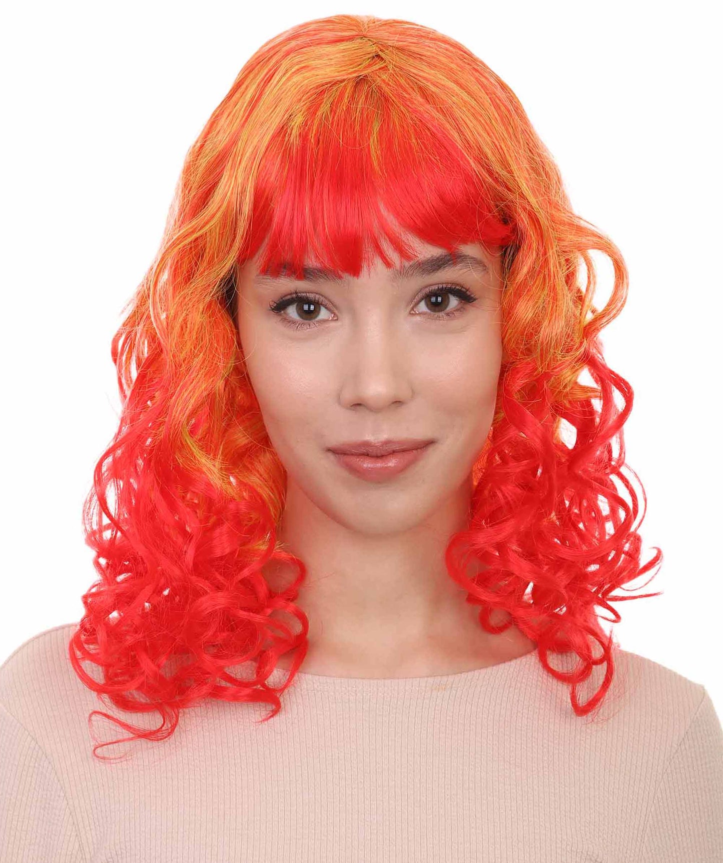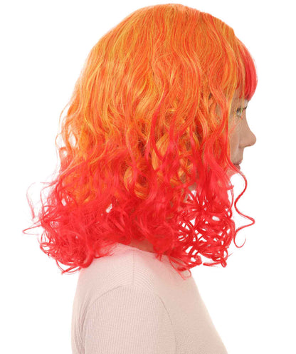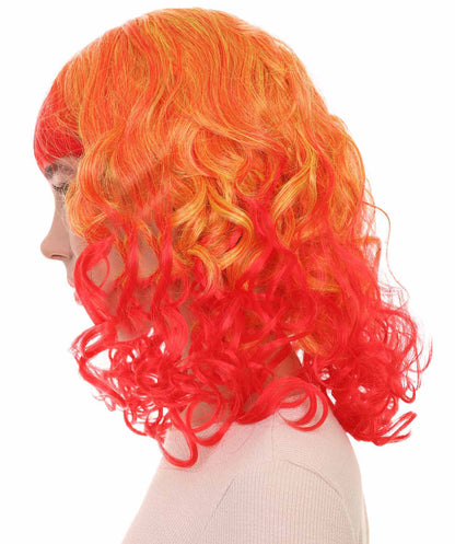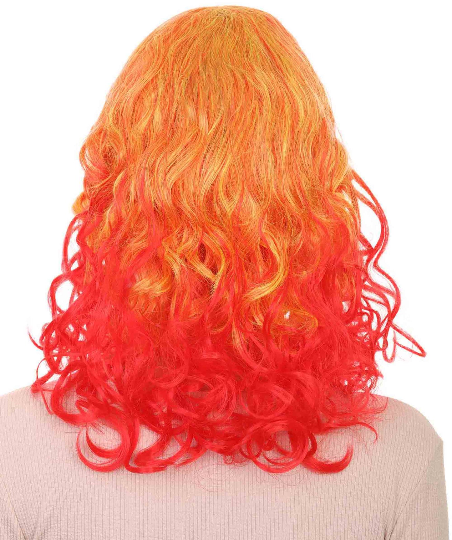 Red and Yellow Two Tone Long Wavy Womens Wig | Party Ready Halloween Wig | Premium Breathable Capless Cap