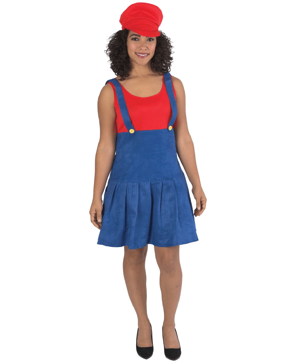 This female red plumber Costume is a popular costume choice for Halloween and costume parties, inspired by an iconic plumber video game character. The costume usually includes a red short-sleeved shirt, short blue overalls, and of course a red hat. This costume is both recognizable and fun, perfect for those who want to embody a classic video game character. Whether wearing it individually or as part of a group costume, the Female Red Plumber Costume is sure to make a statement and be a hit at any party. Check out our costume collection which includes costumes for other major characters from this vintage video game franchise.