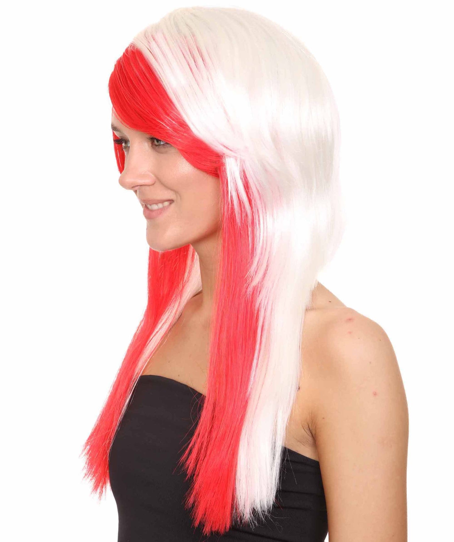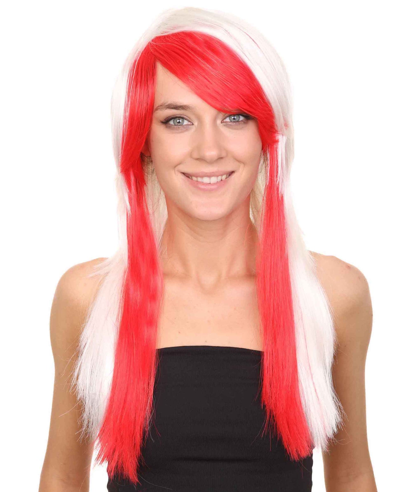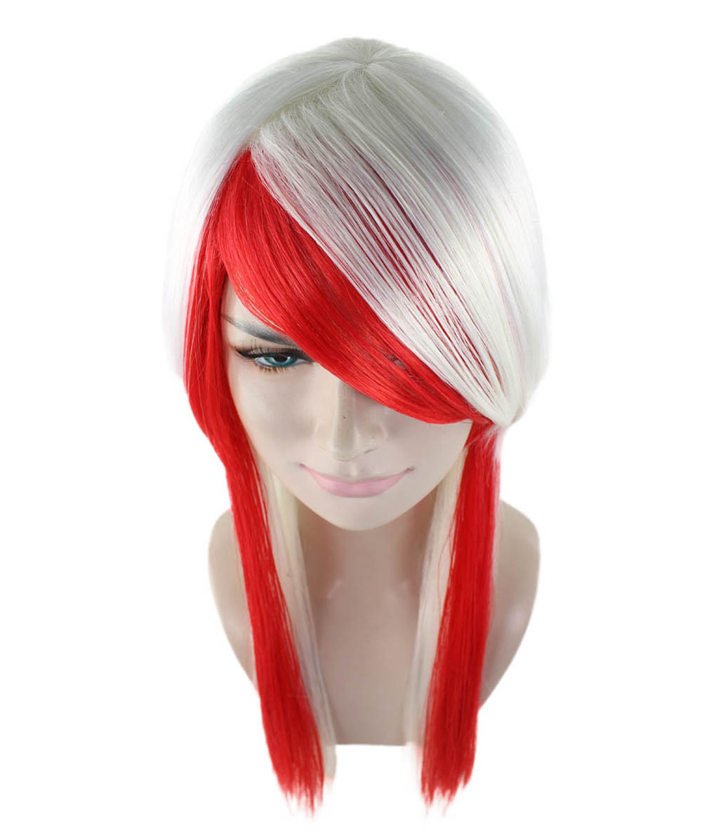 The striking two-toned color scheme and long, flowing style add a touch of drama and glamour to your look, making it the perfect accessory for cosplay events, Halloween, or just a night out on the town. Whether you're looking to channel your inner anime character, add some edge to your everyday style, or simply try something new, our Japanese Anime Long Red White Two-Toned Wig is a perfect choice.