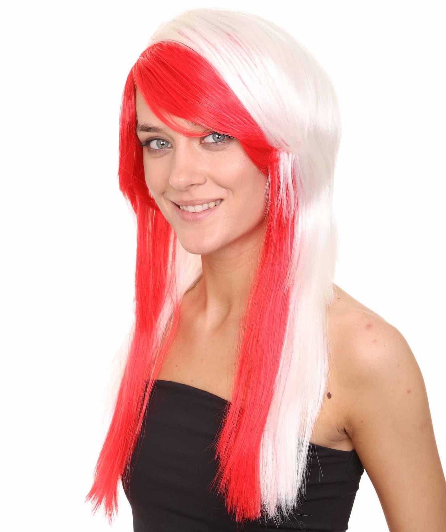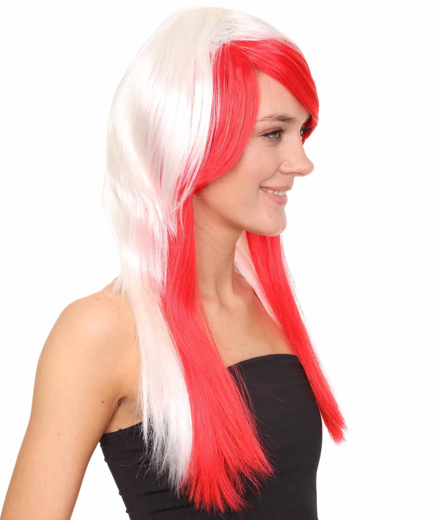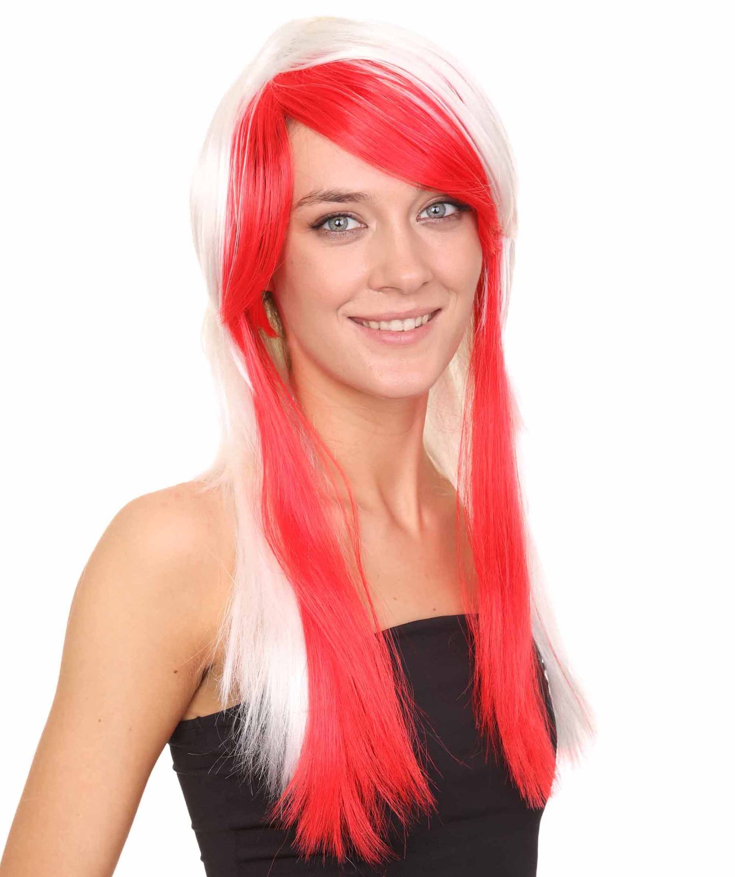 Japanese Cosplay Womens Wig | Red White Two Toned Long Wig | Premium Breathable Capless Cap