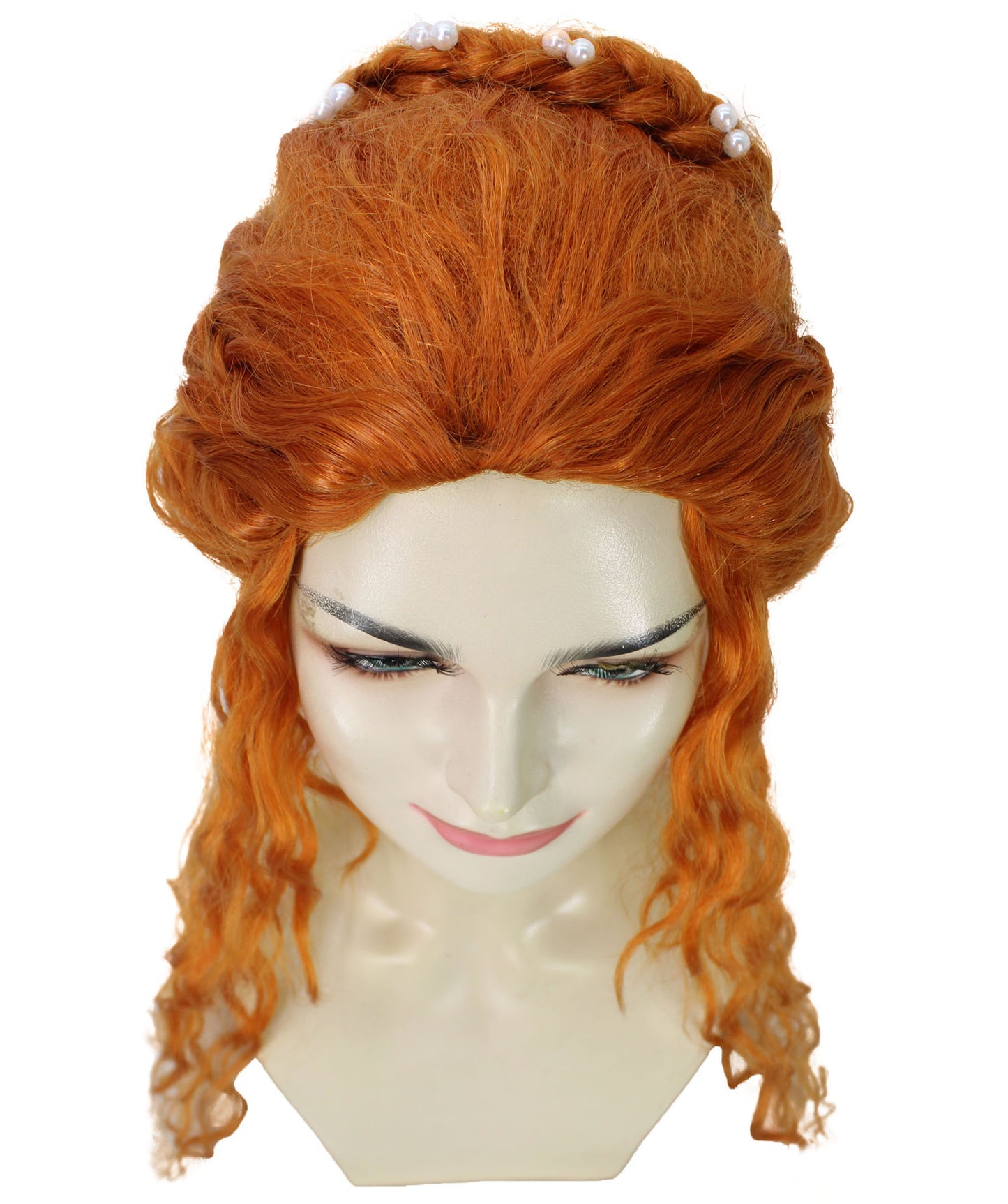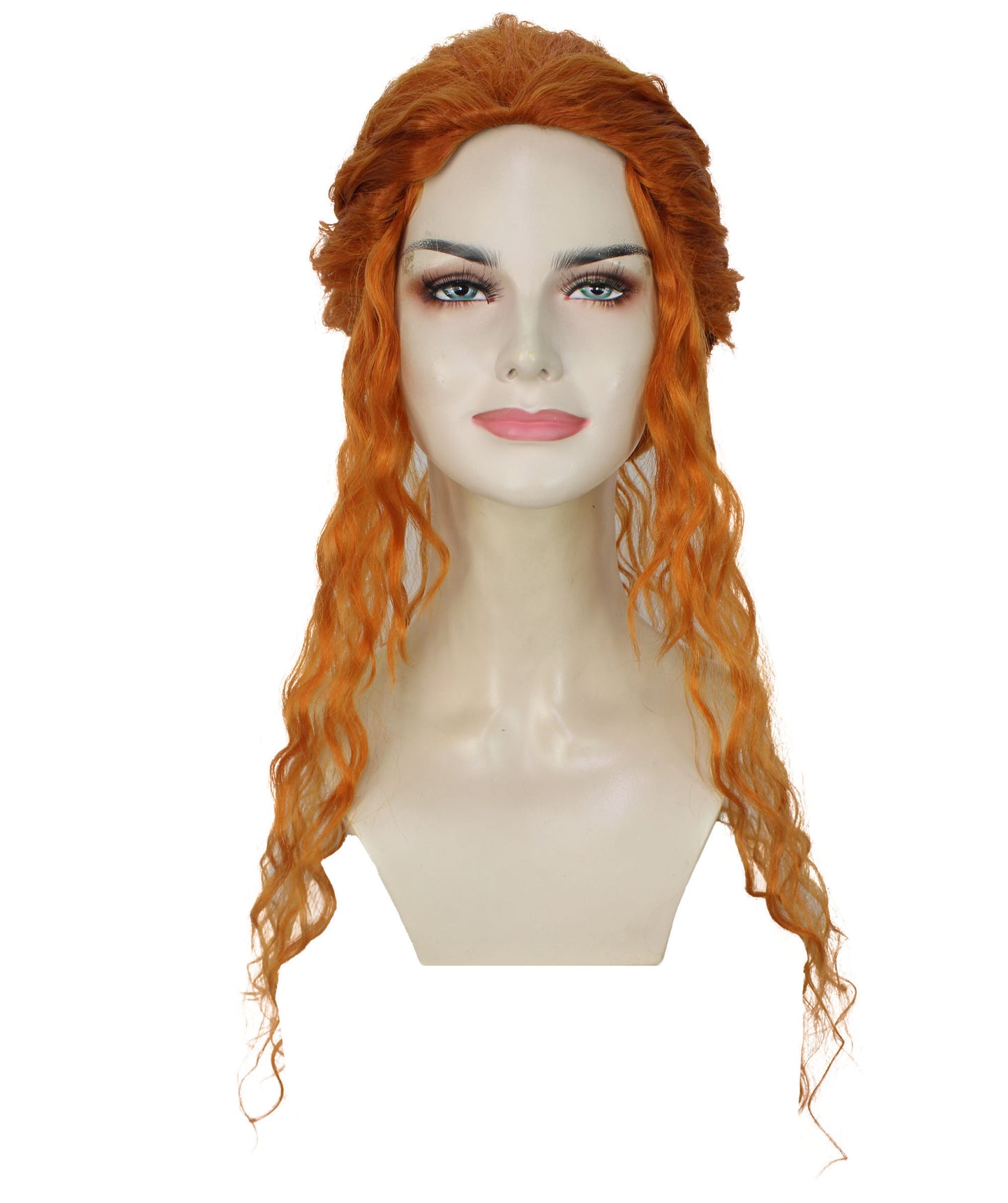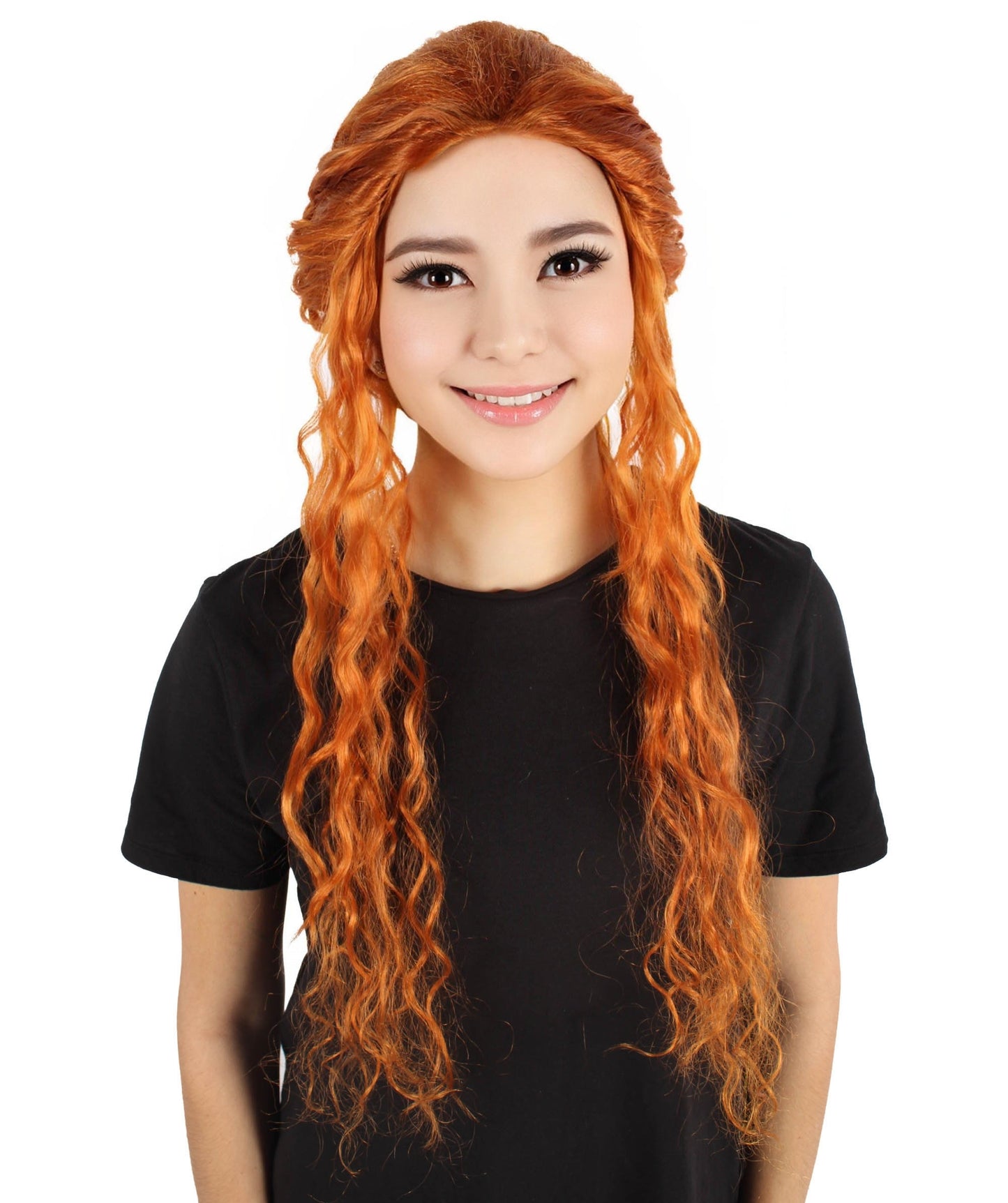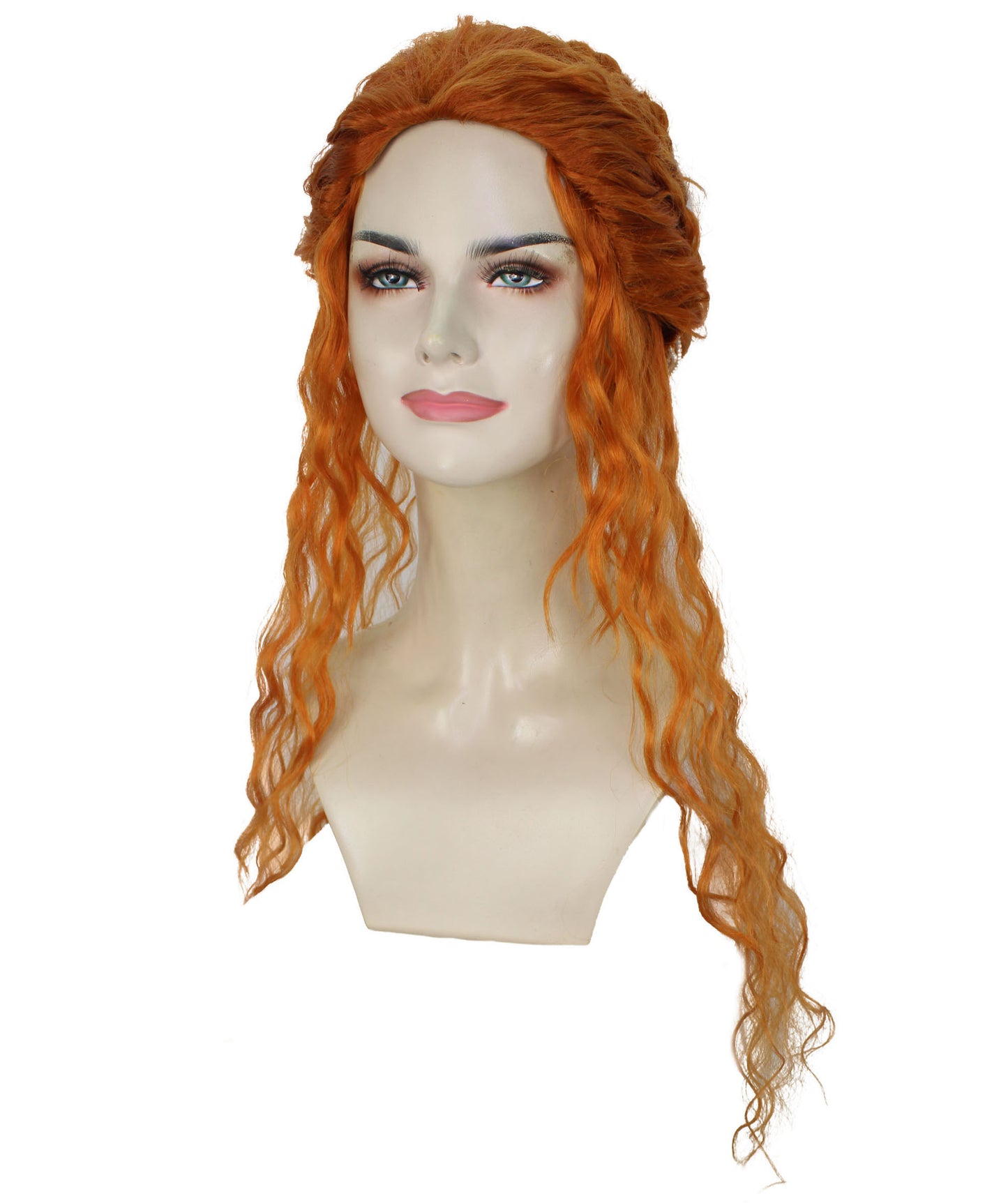 HPO Women's Renaissance Long Curly Orange Wig | Perfect for Halloween| Flame-retardant Synthetic Fiber