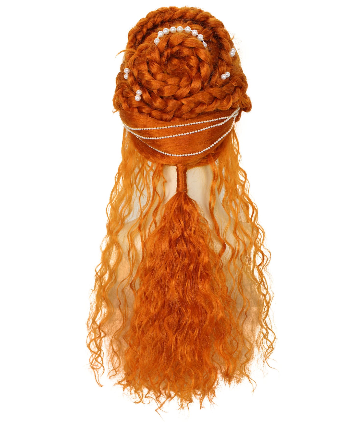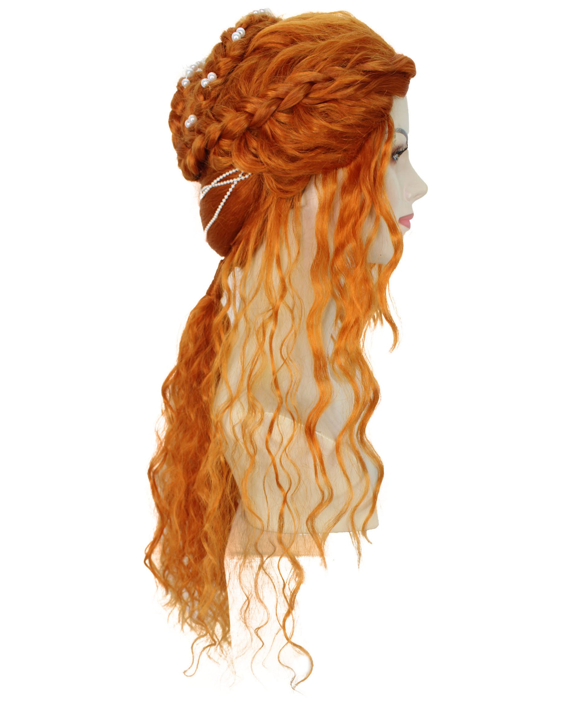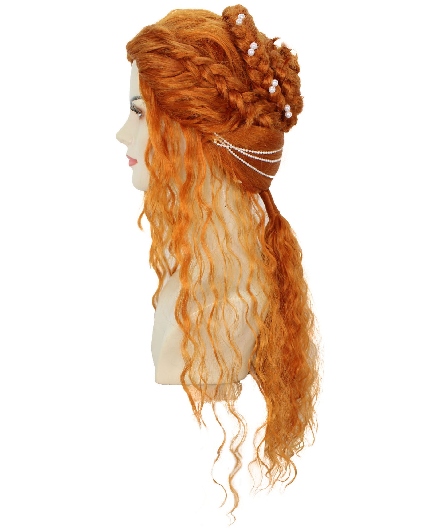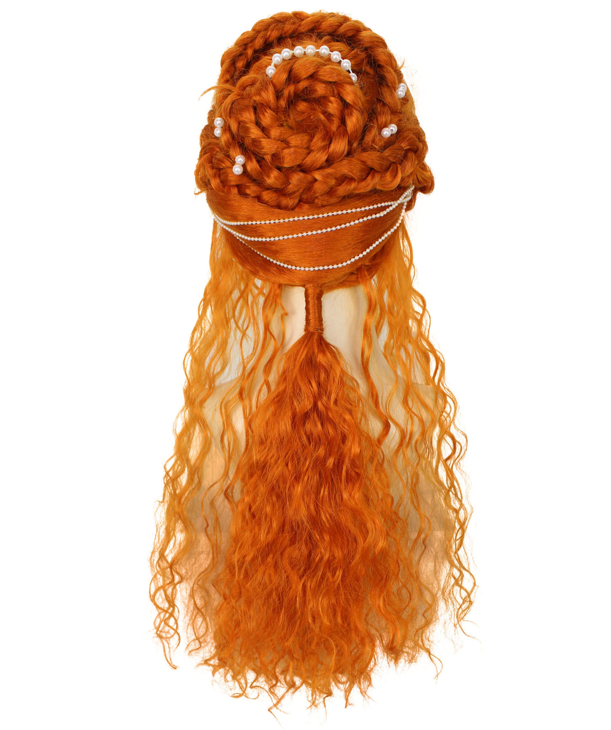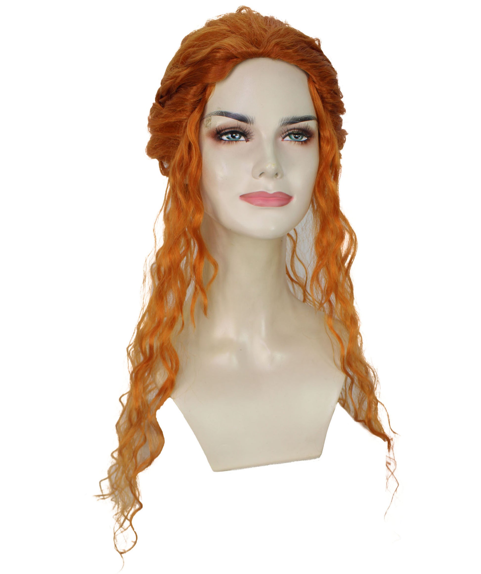 HPO Women's Renaissance Long Curly Orange Wig | Perfect for Halloween| Flame-retardant Synthetic Fiber