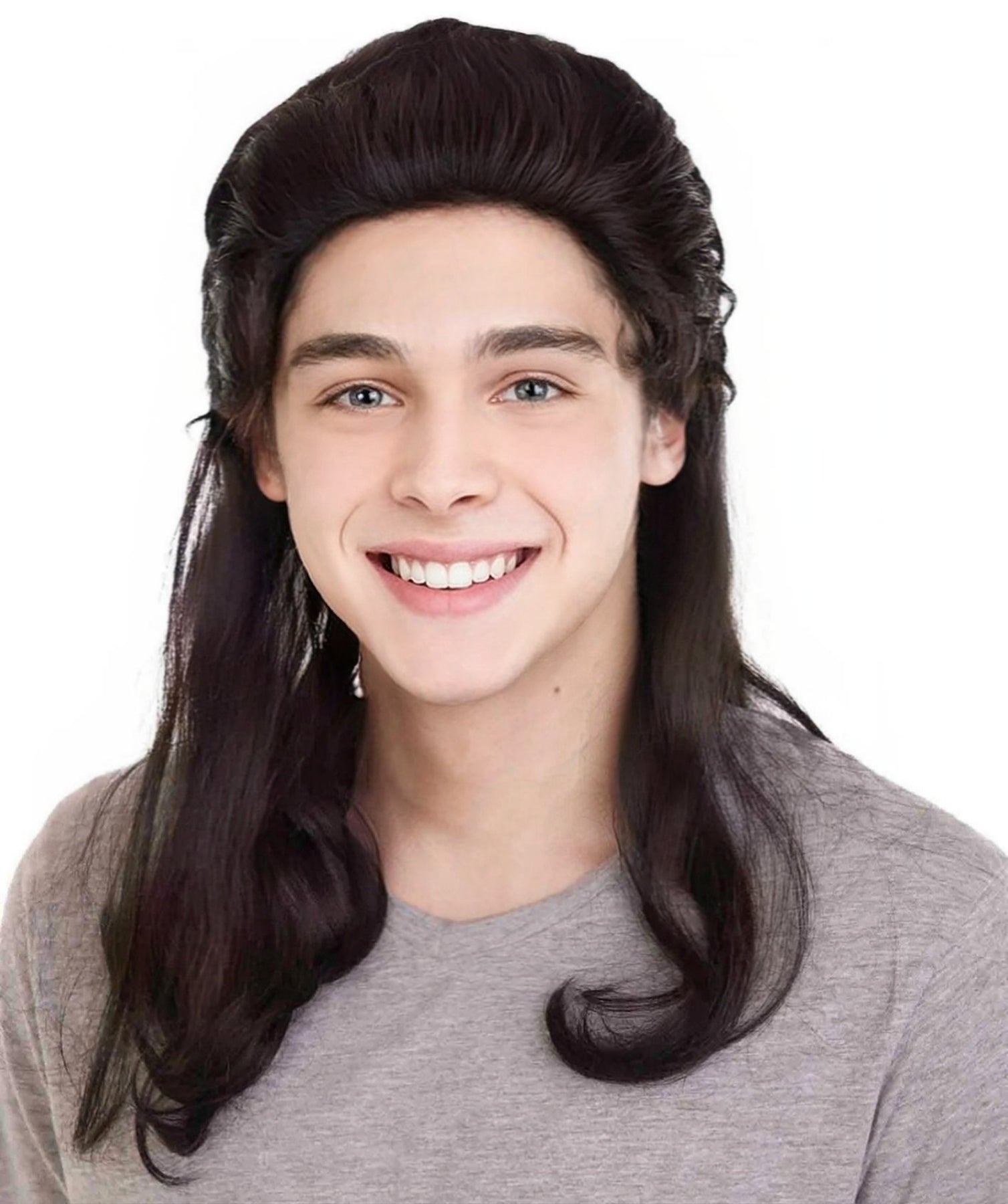 80's Mullet Black Wig | Retro Halloween Wig | Premium Breathable Capless Cap