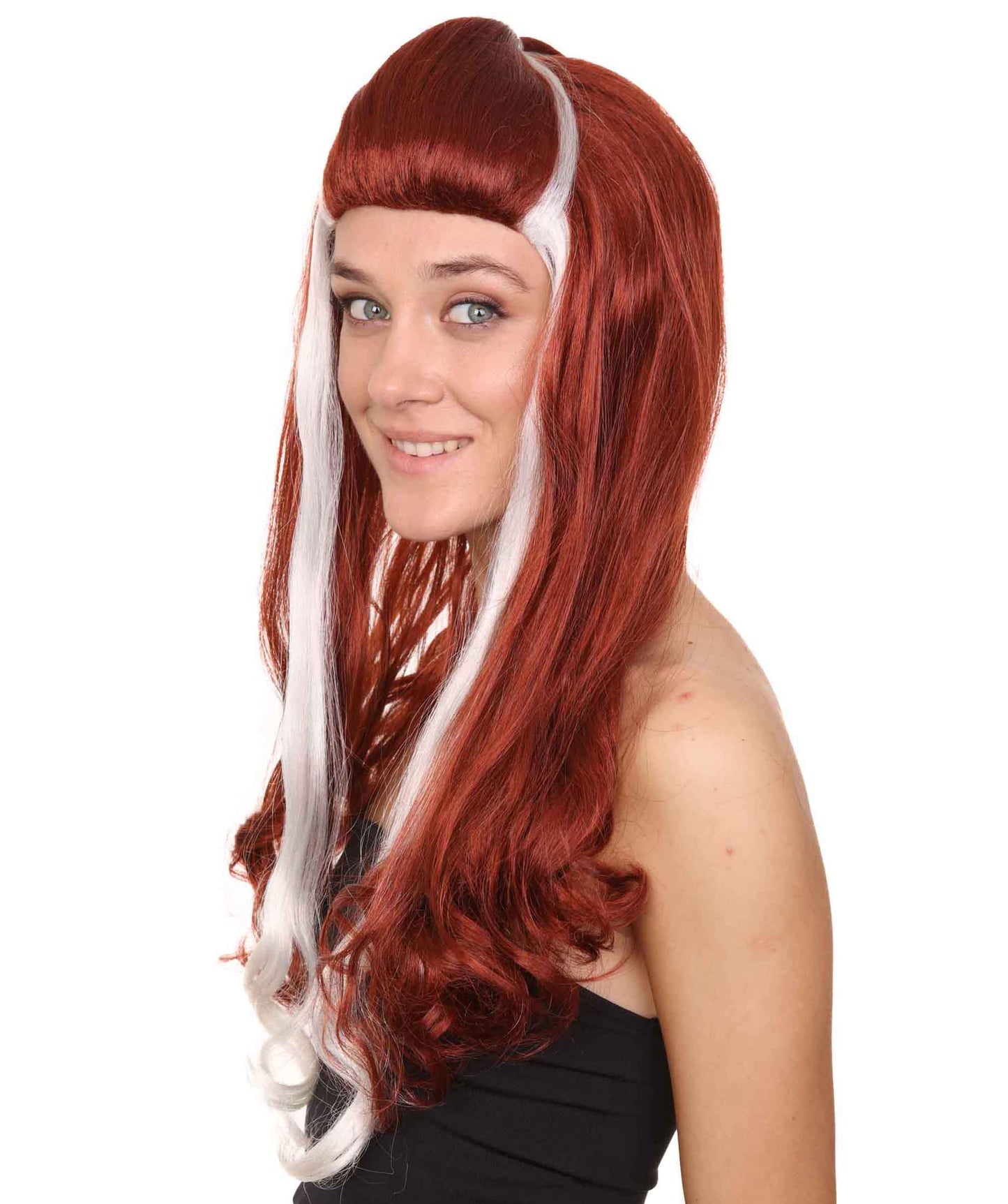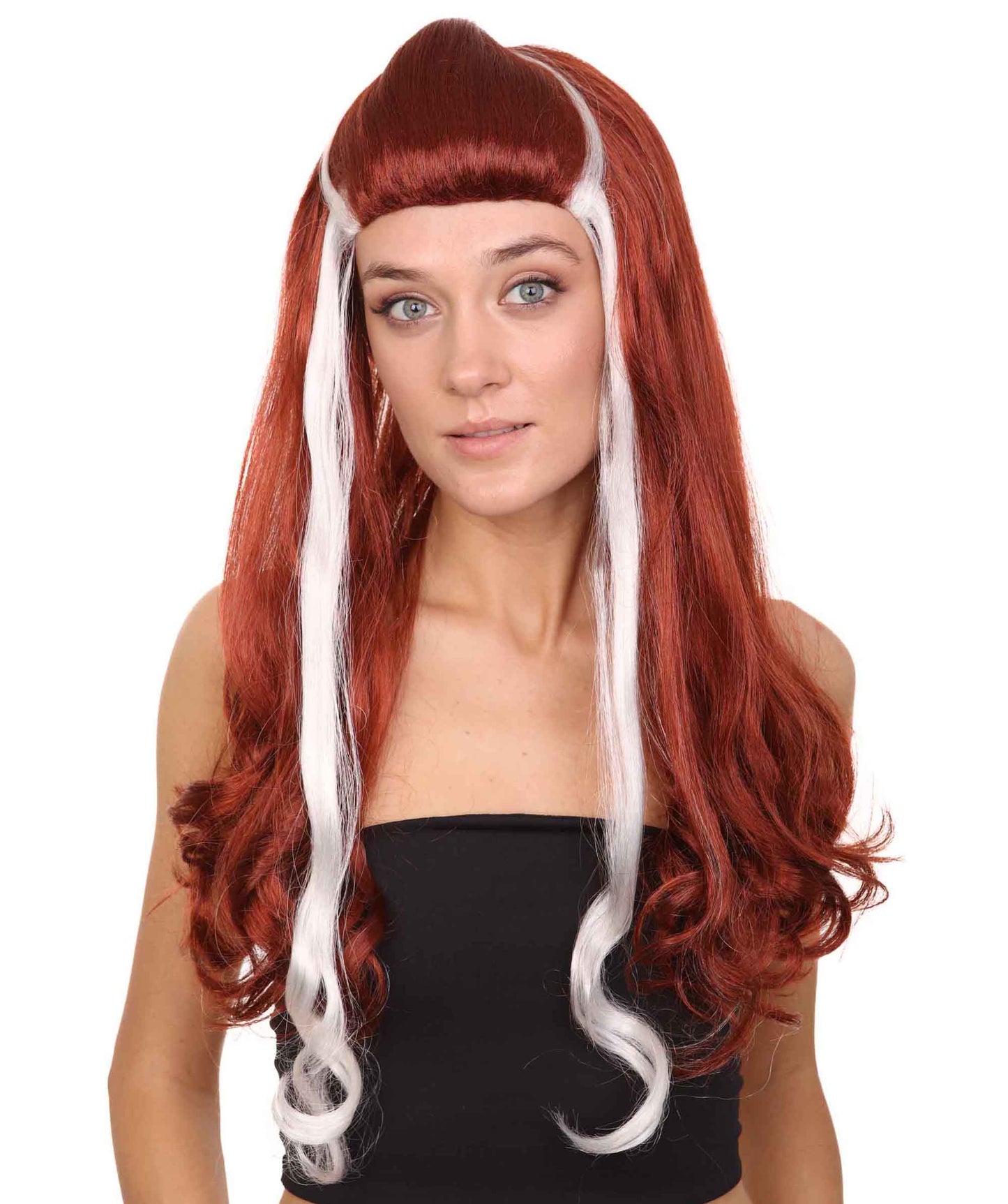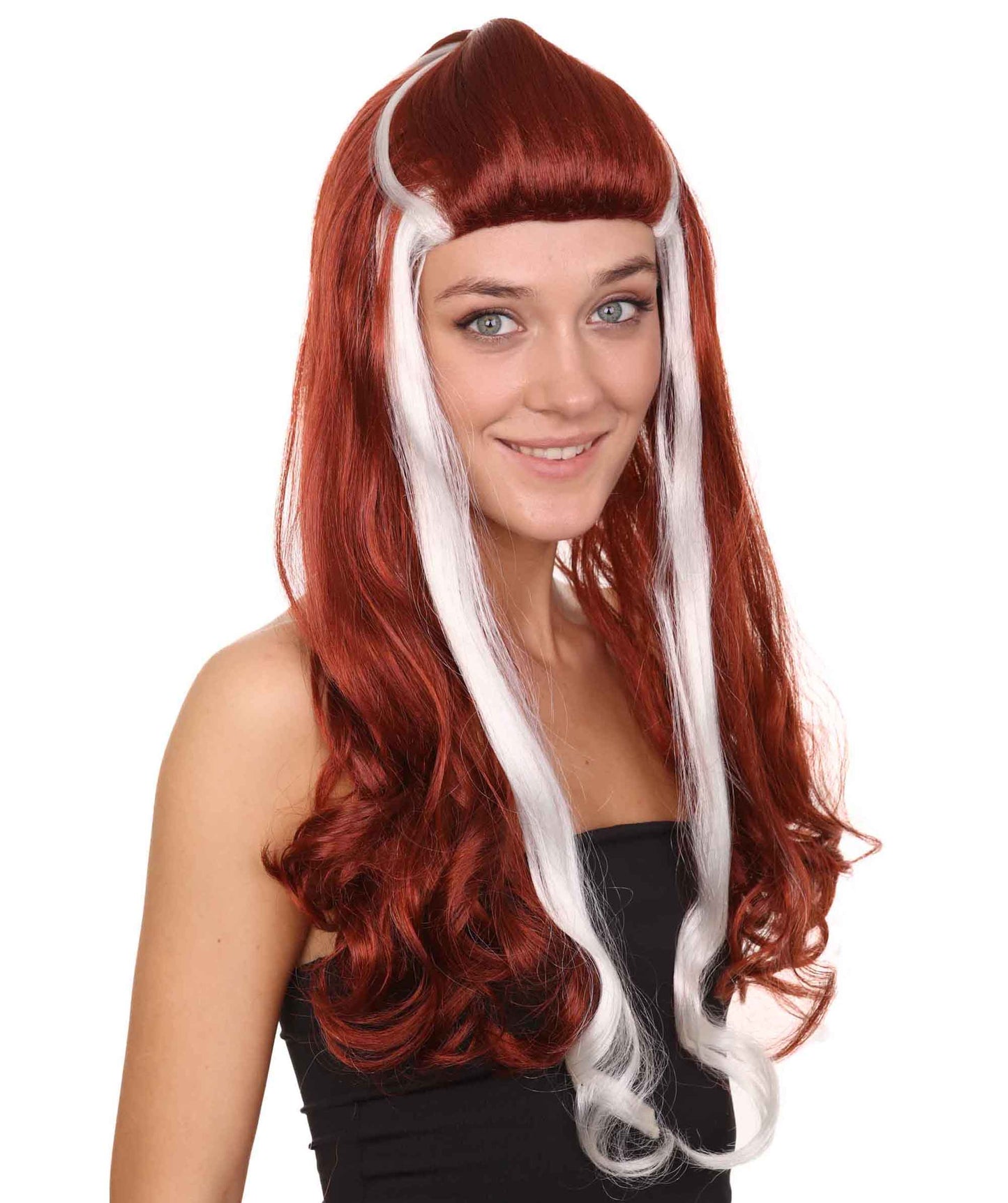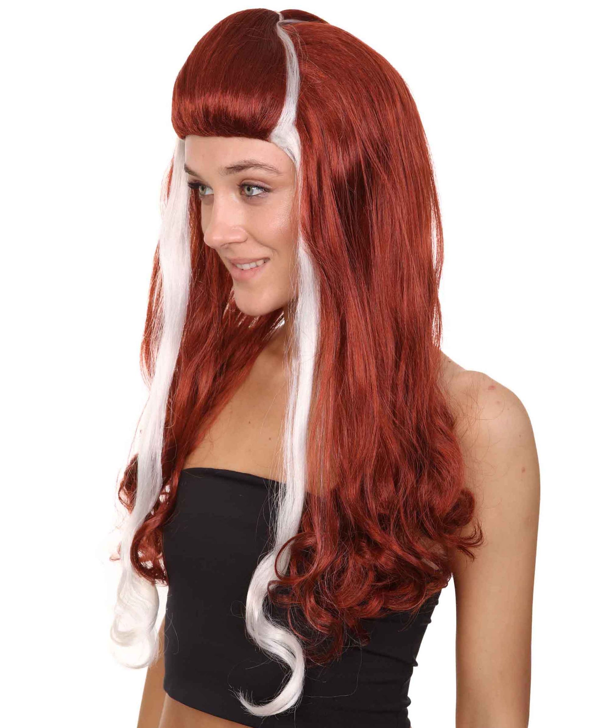So if you're ready to rock and roll with a bold and daring look, the Red Rockstar Wig with white streaks is the perfect choice for you. Don't settle for ordinary, embrace your inner rock star and let this wig help you stand out from the crowd.