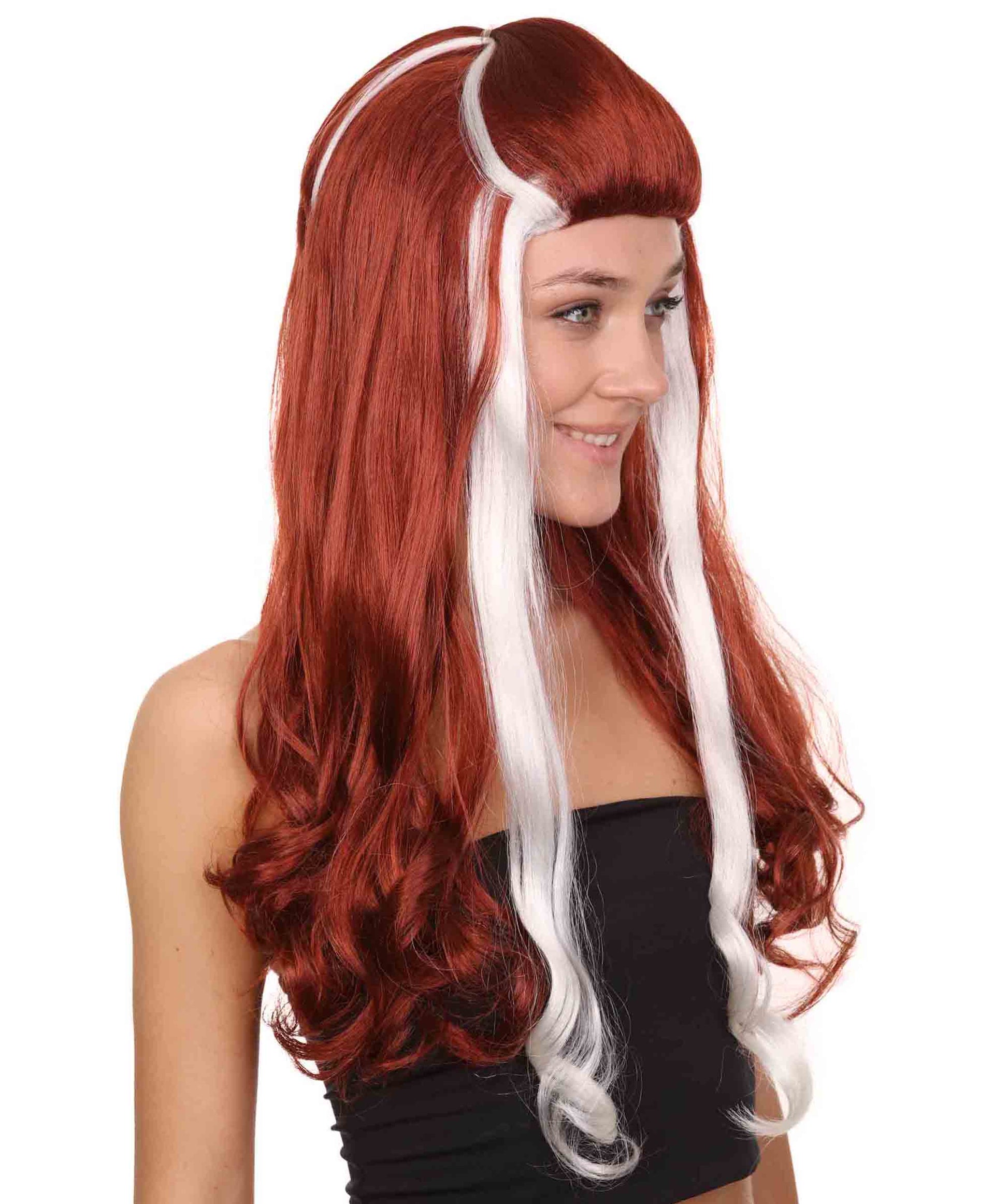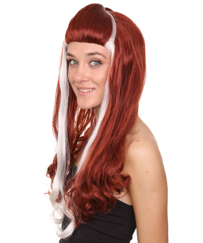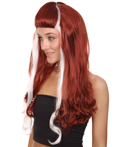 Retro Rock Star Womens Wig | Red & White Halloween Wig | Premium Breathable Capless Cap