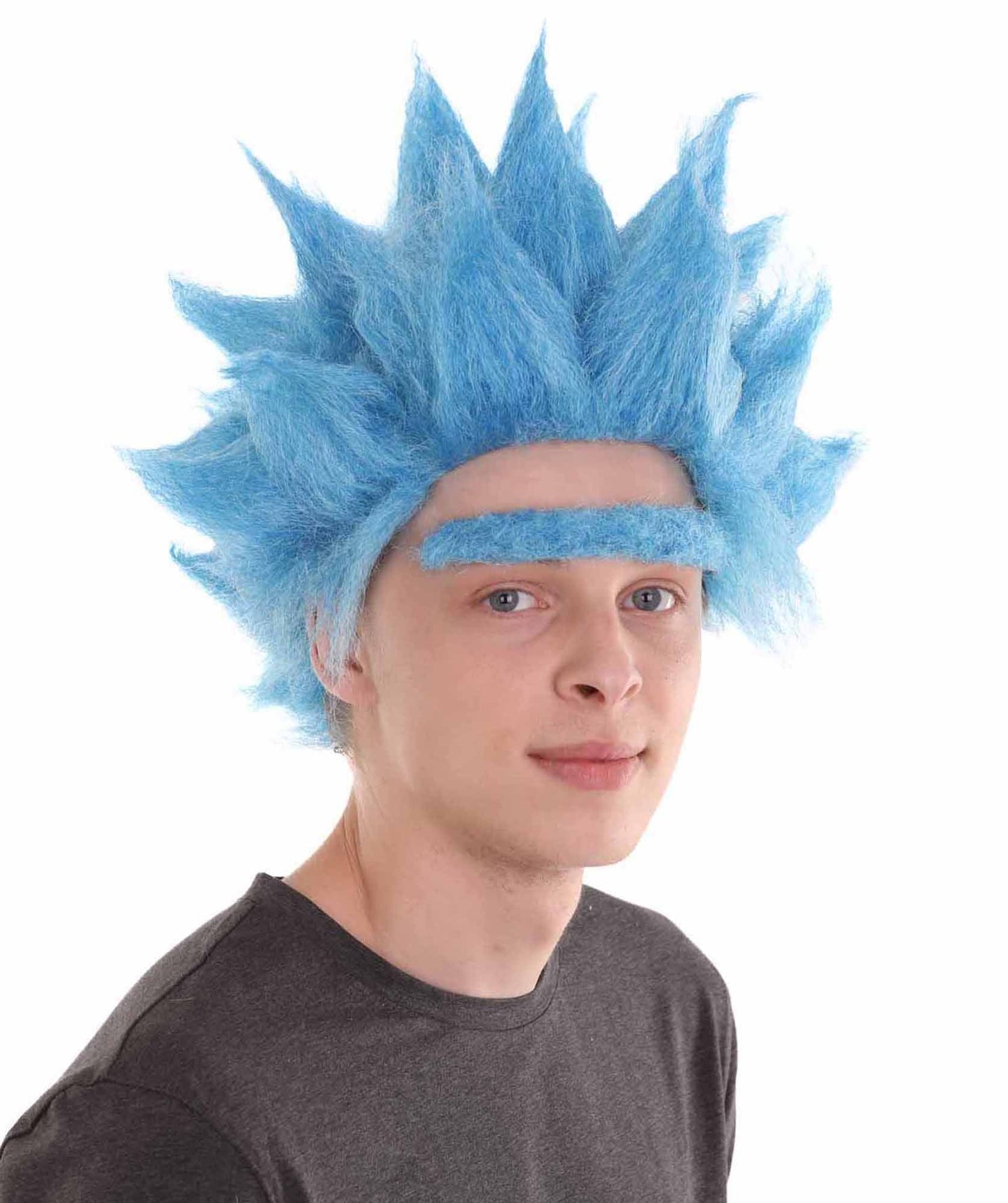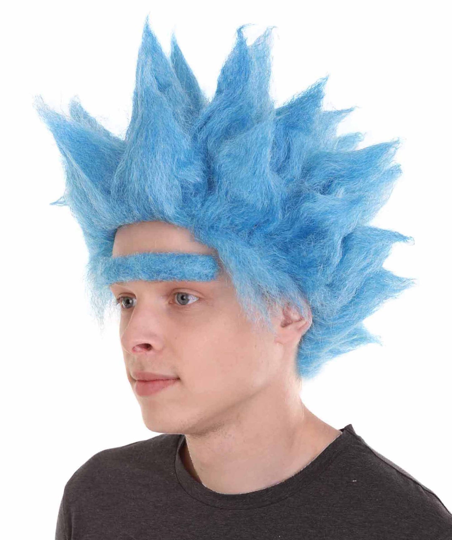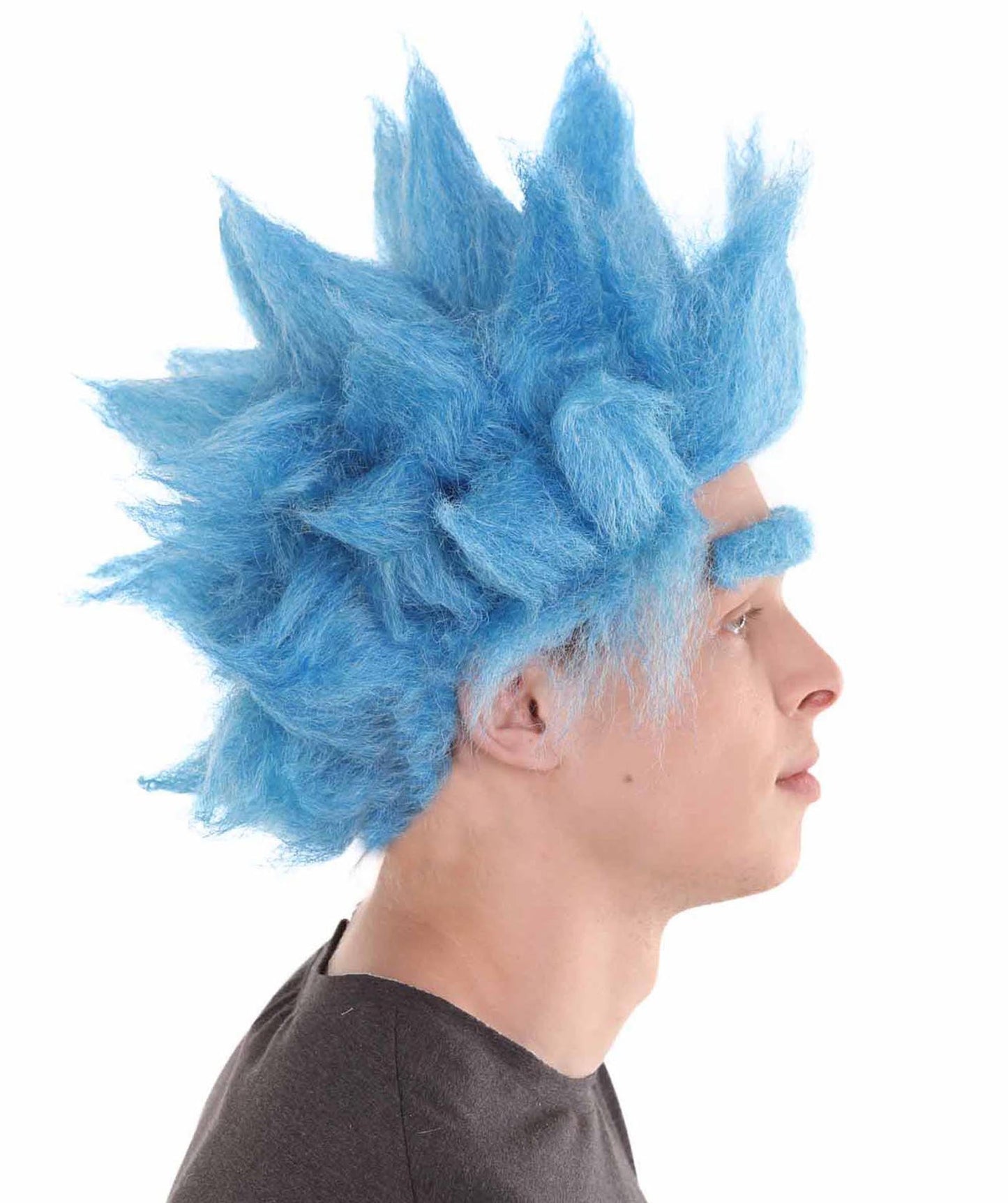 Scientist TV/Movie Mens Wig and Unibrow | Sky Blue Halloween Wig | Premium Breathable Capless Cap