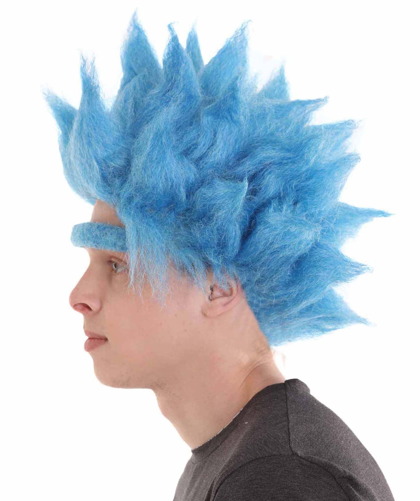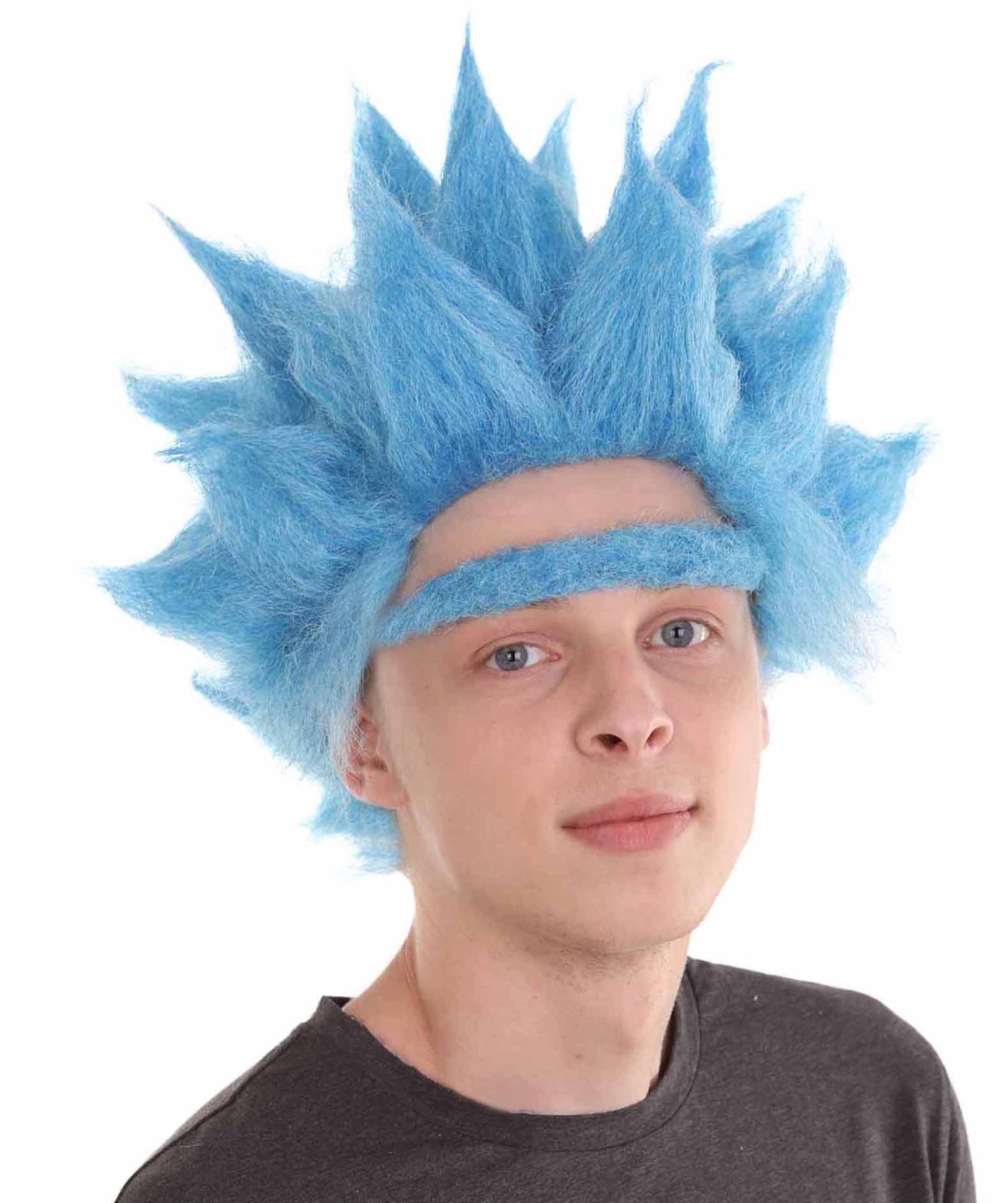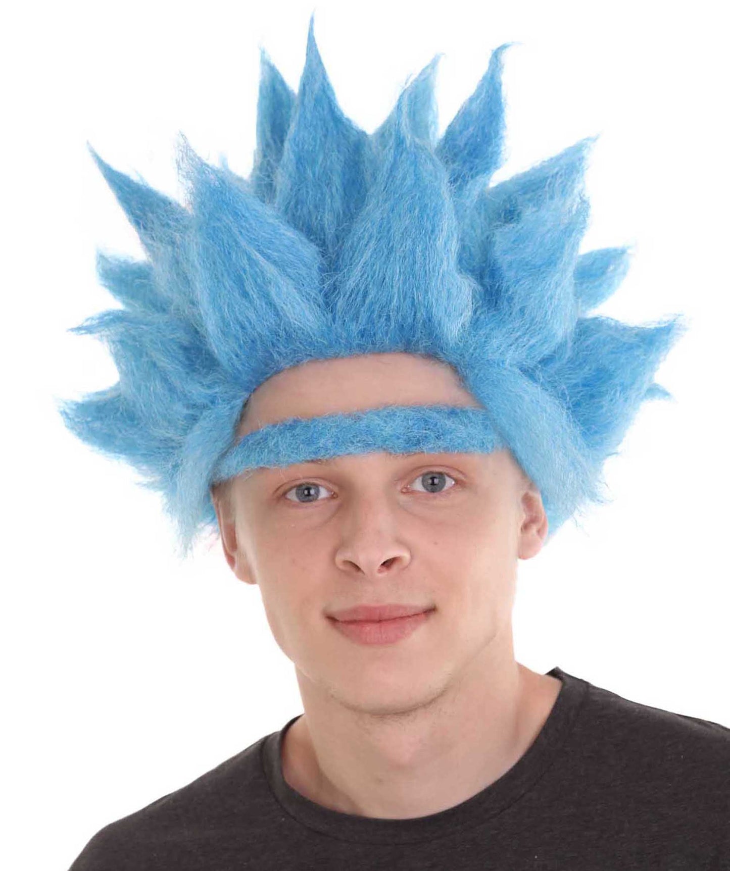 Scientist TV/Movie Mens Wig and Unibrow | Sky Blue Halloween Wig | Premium Breathable Capless Cap