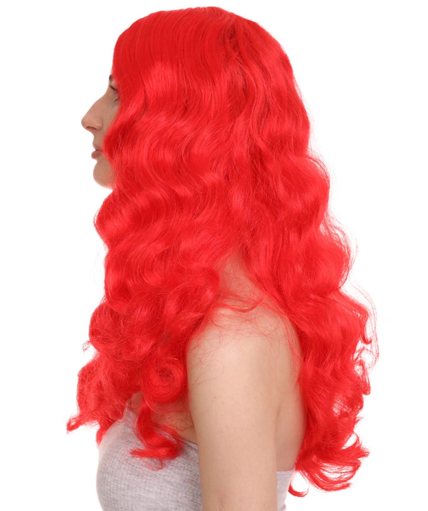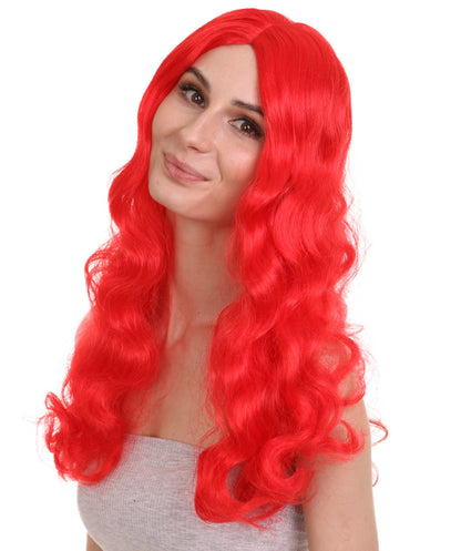 - Transform into a magical sea princess with this stunning long red curly wig, designed to replicate Ariel’s iconic look from The Little Mermaid.