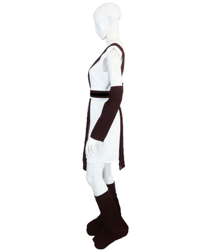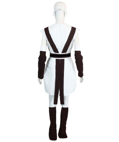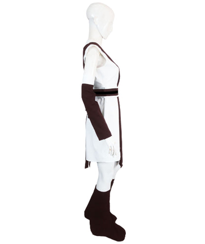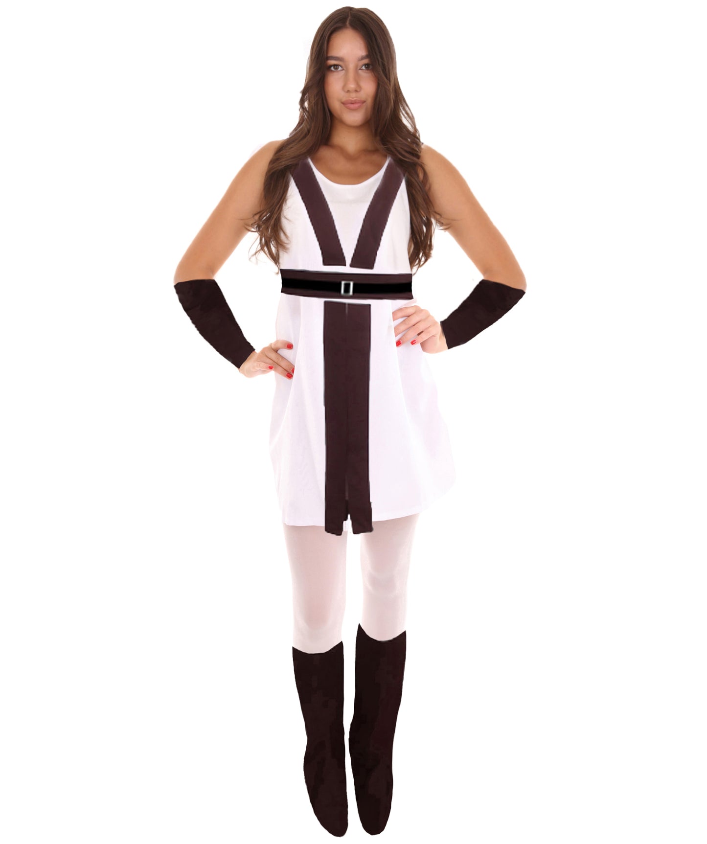 Crafted from synthetic fabric, this costume is designed to make you feel like a true intergalactic fighter. The sleek and sexy dress features intricate details, combination of white and brown, and a form-fitting design that will turn heads and capture attention.