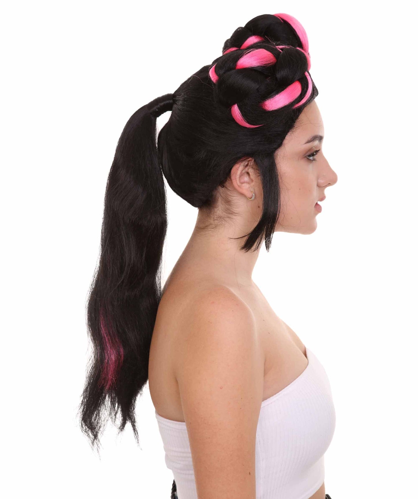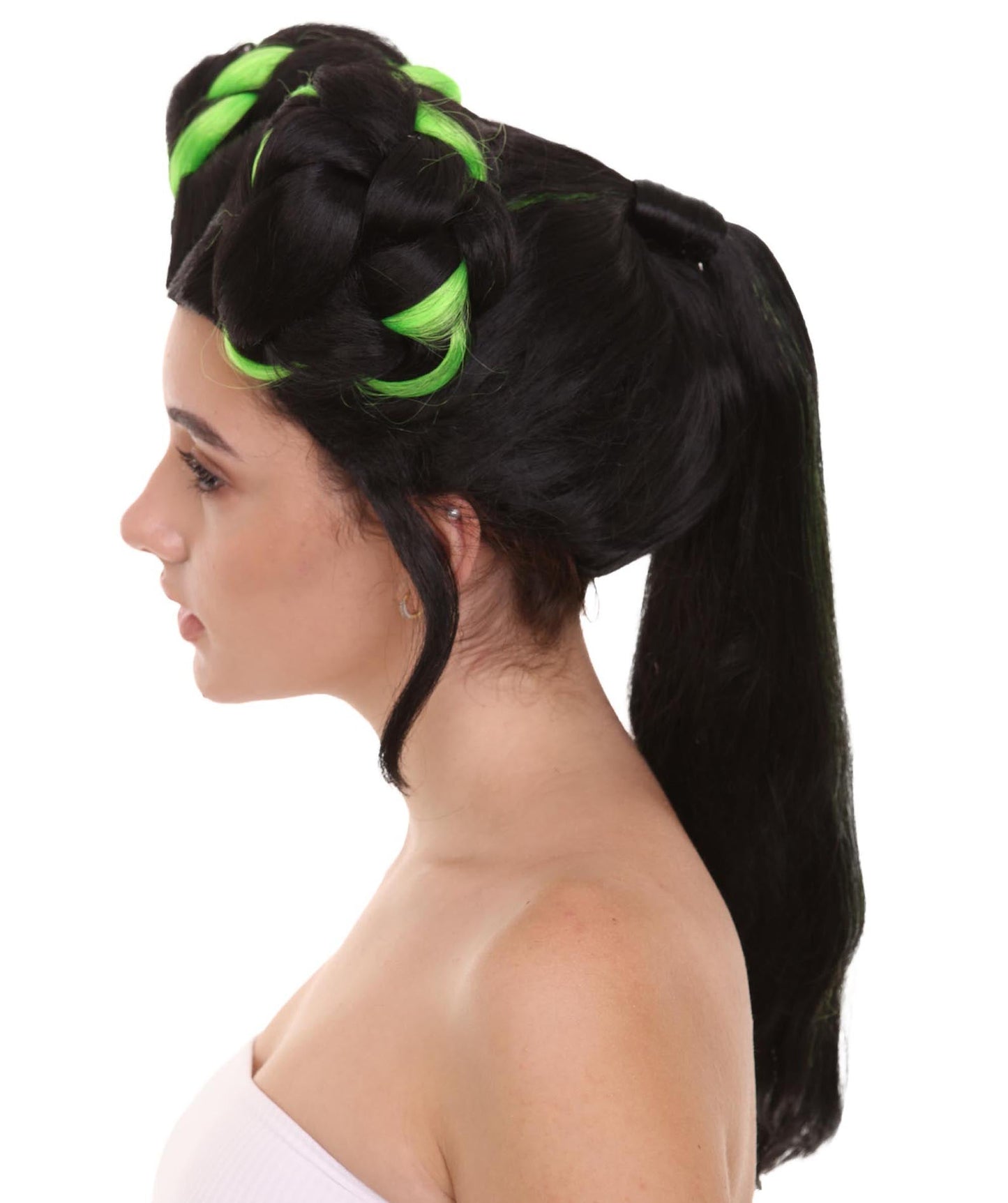 Choose from a range of colors to match your costume, from classic white and gray to bold and daring colors like pink and neon green. The wig also features a ponytail, adding a touch of sophistication and style to your overall look.