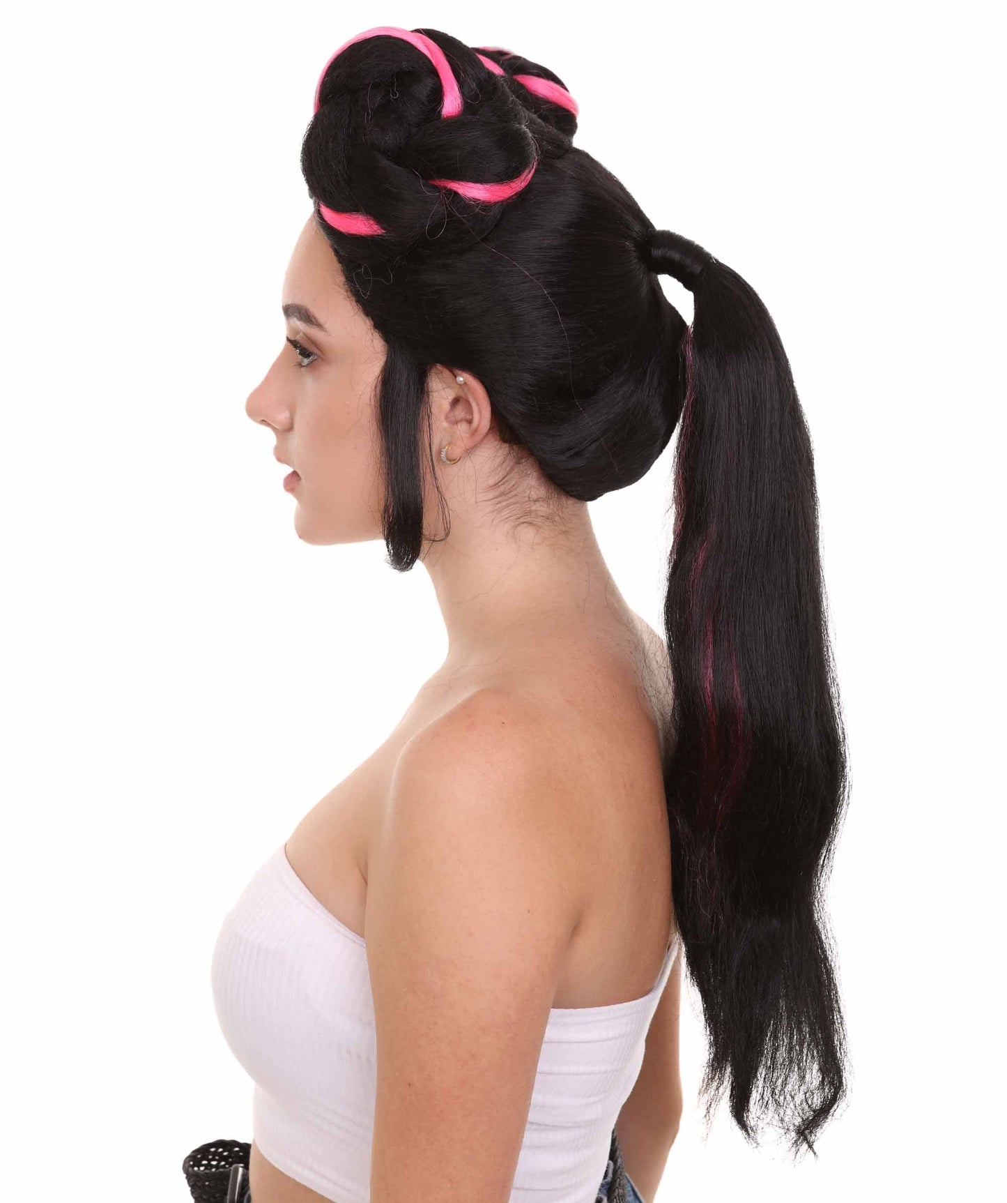 Get ready to steal the show with our Women's Eurovision Contest Singer Bun Wig, now available in multiple color options, perfect for your Halloween costume! With its stunningly voluminous and braided bun, this wig is sure to elevate your look to the next level. Made with high-quality synthetic fibers, the wig is soft and comfortable to wear all night long, while also maintaining its shape and style.