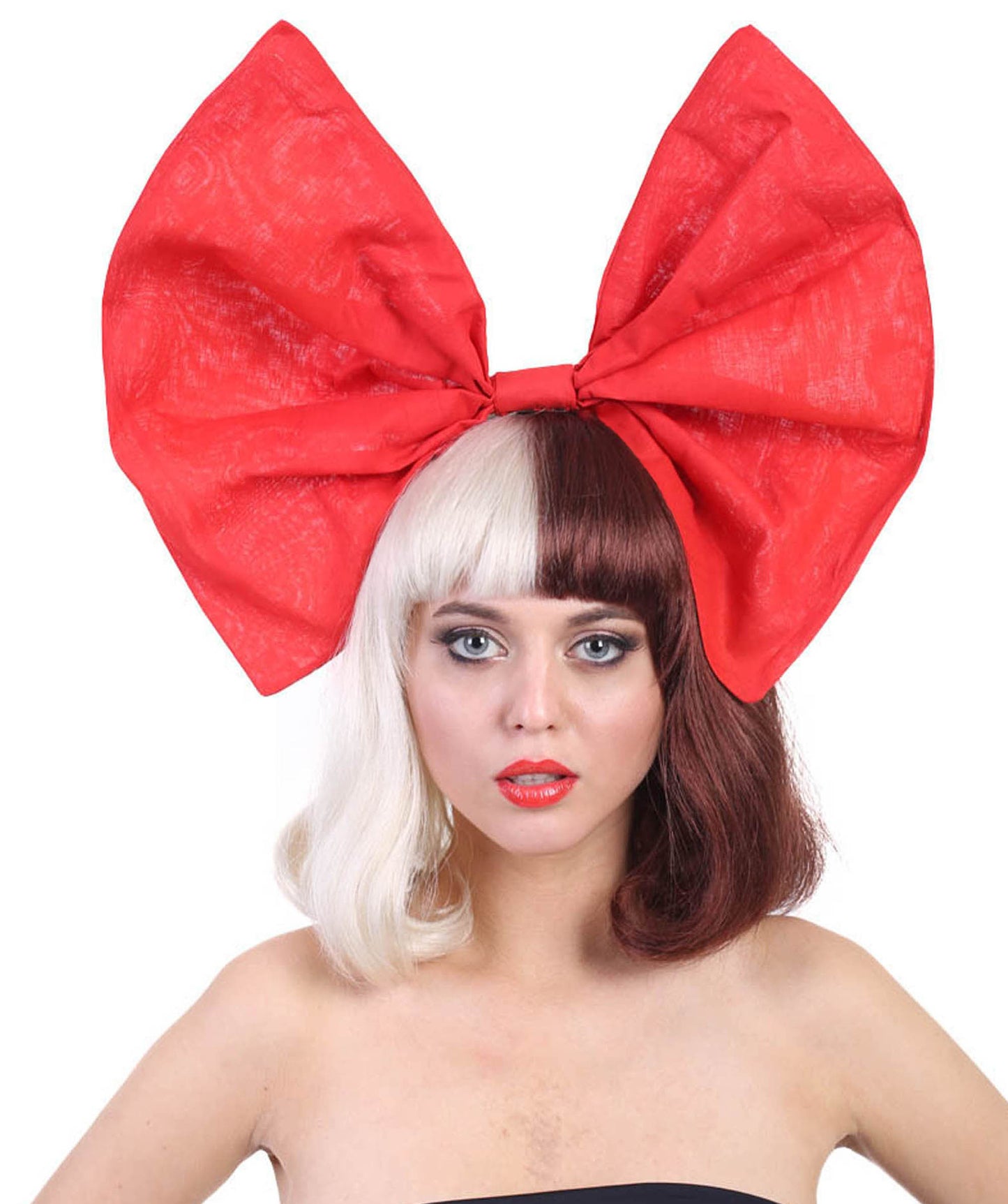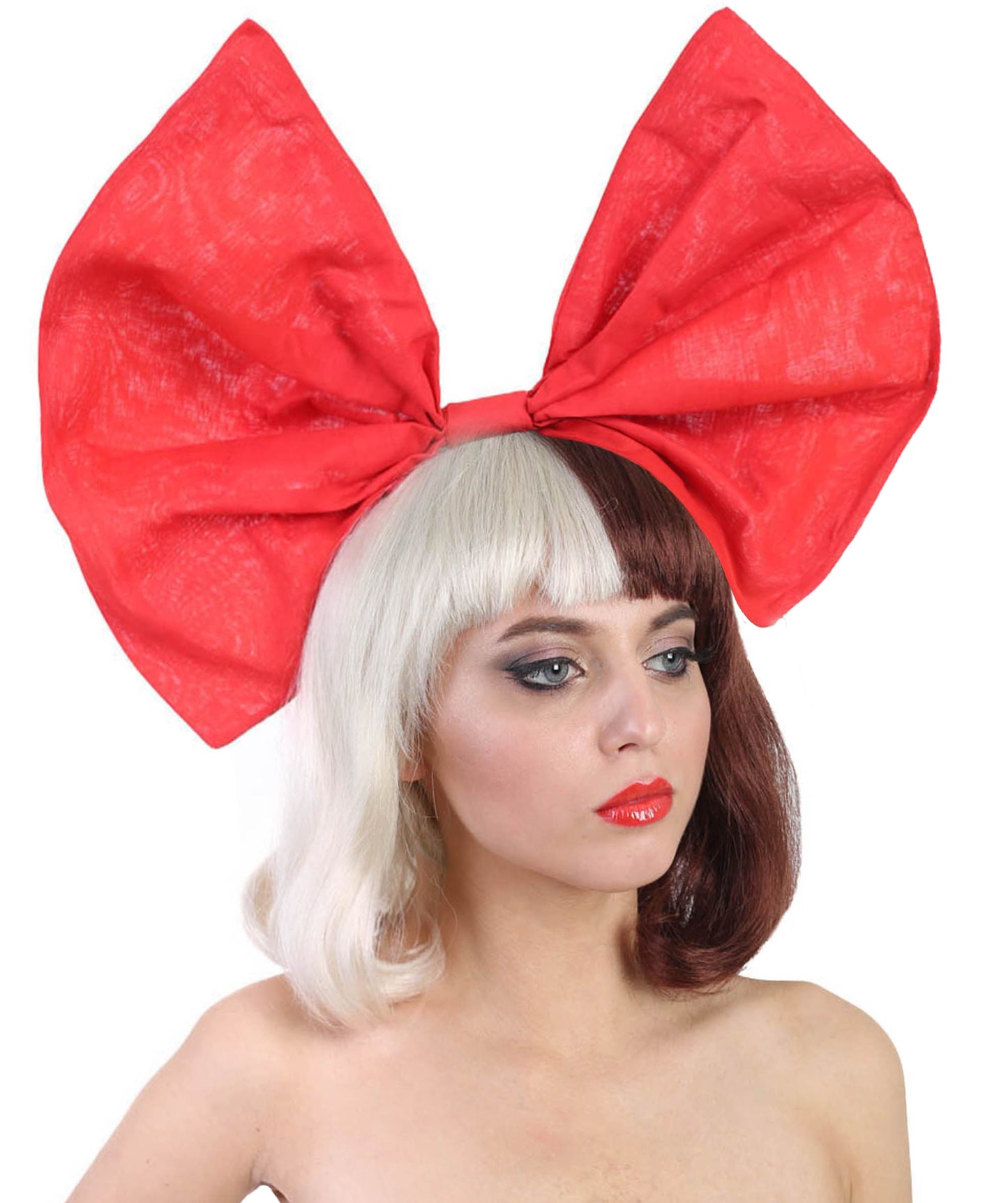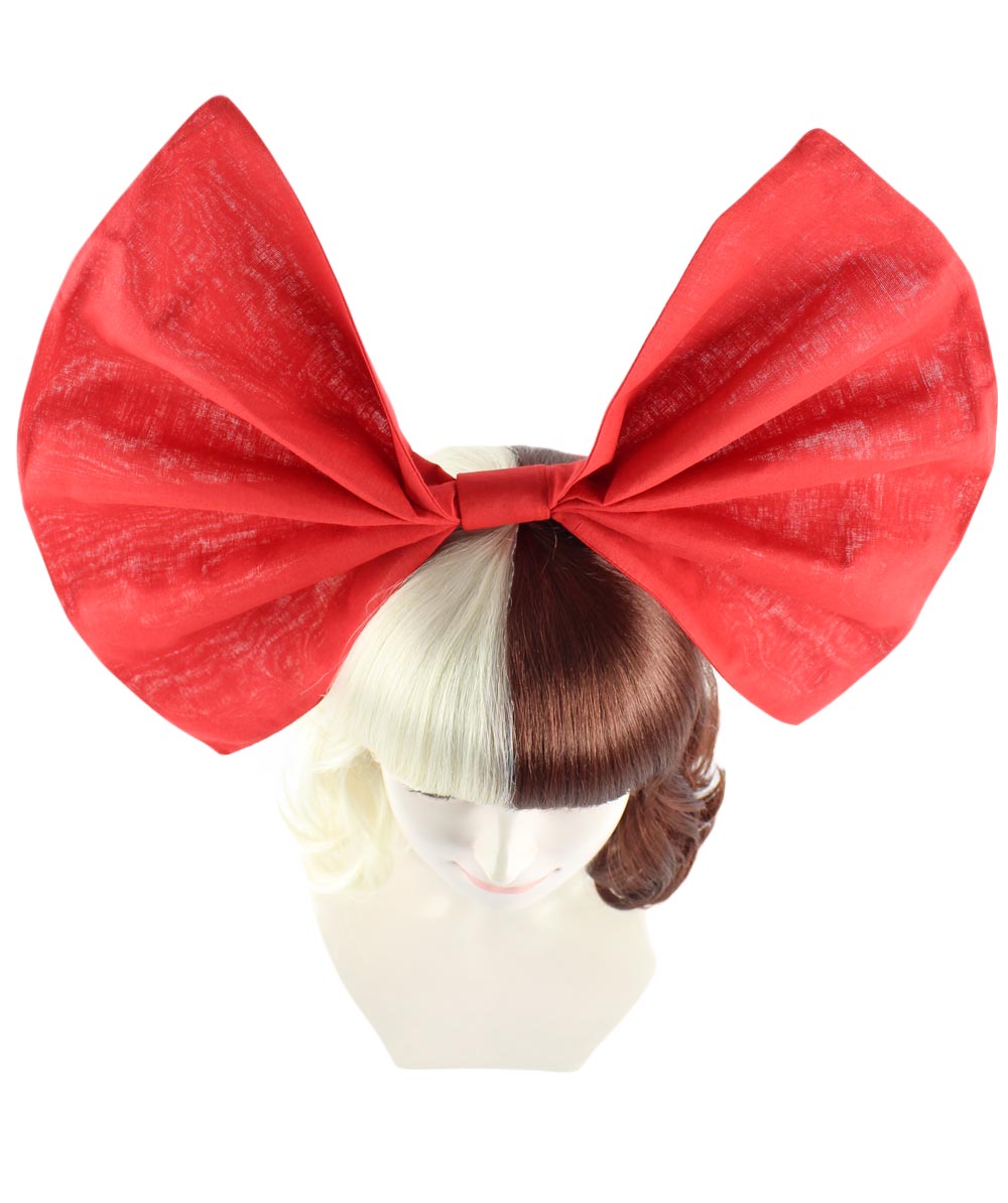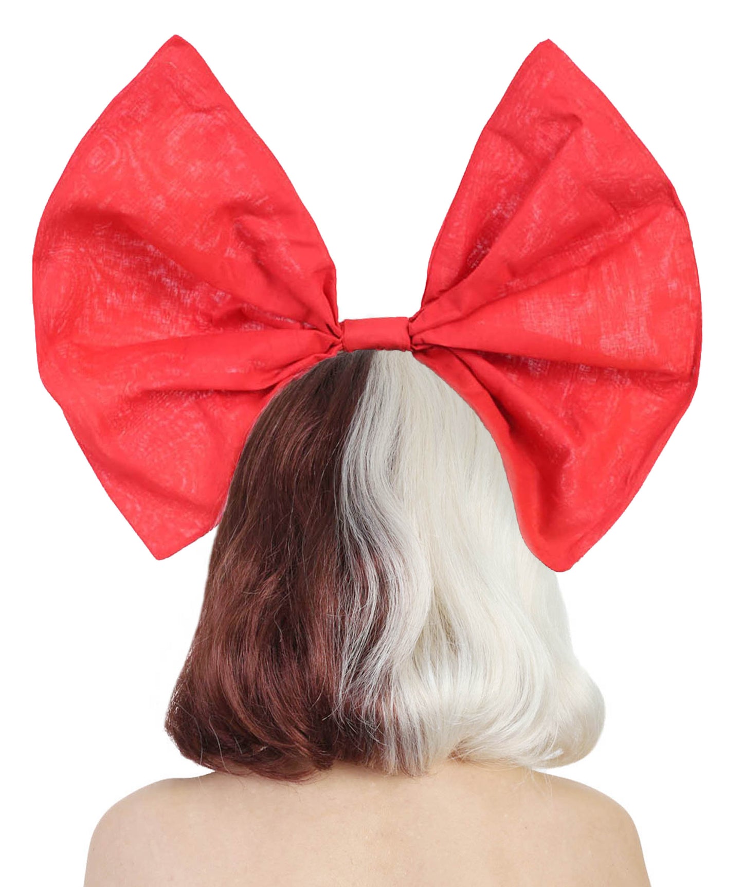 Singer Women's Short Straight Wig | Large Red Bow Brown & Blonde Celebrity Wig | Premium Breathable Capless Cap