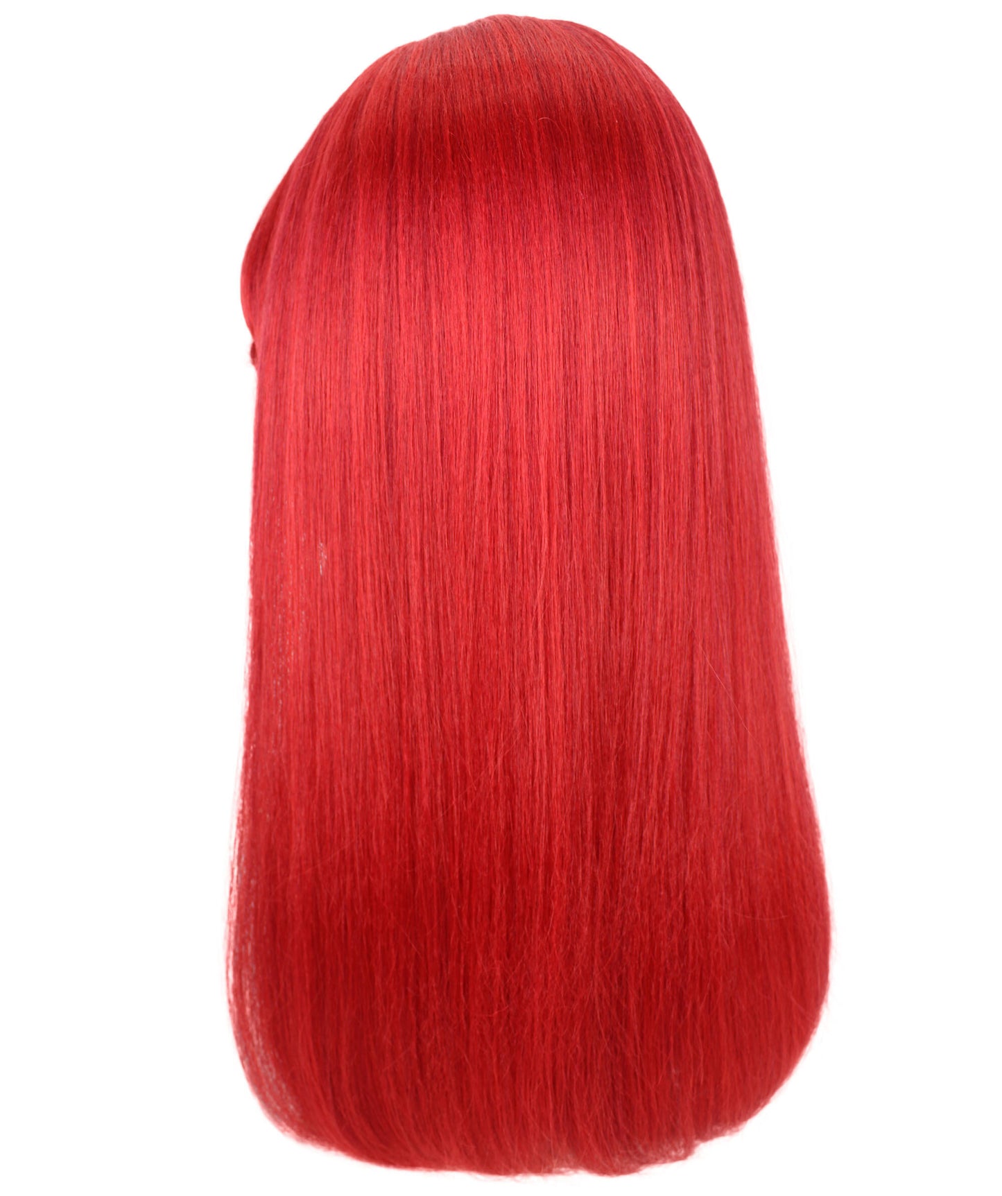 Made of flame-retardant synthetic fibers, this Long Red Wig also comes with an adjustable strap to fit any head size.