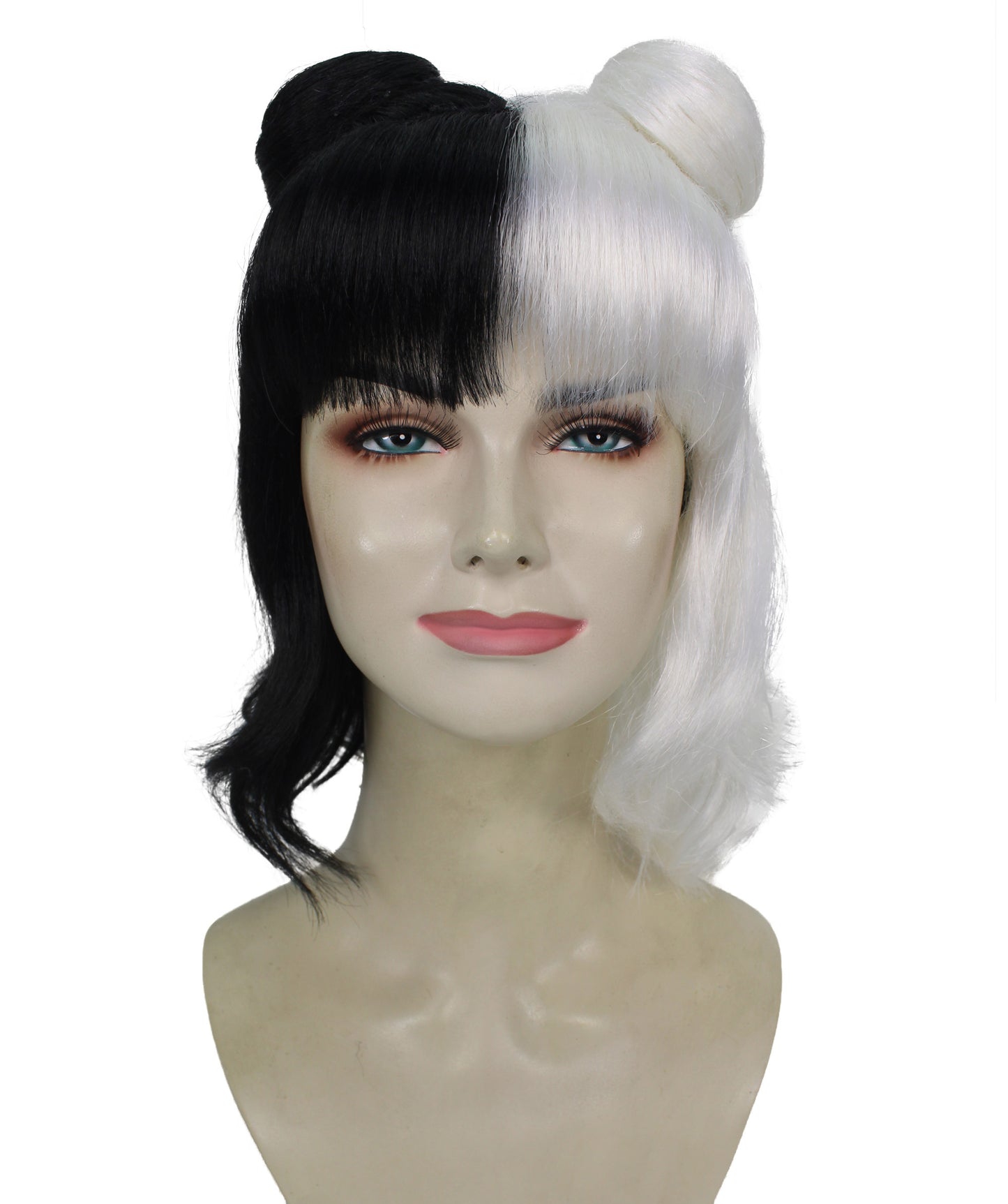 It’s the Space Buns Wig from HPO - the perfect accessory for anyone looking to add a touch of glamour and fun to their look. This Multiple Color shoulder-length wig features a short wavy bob style with two buns on the head, giving you a playful and trendy look.