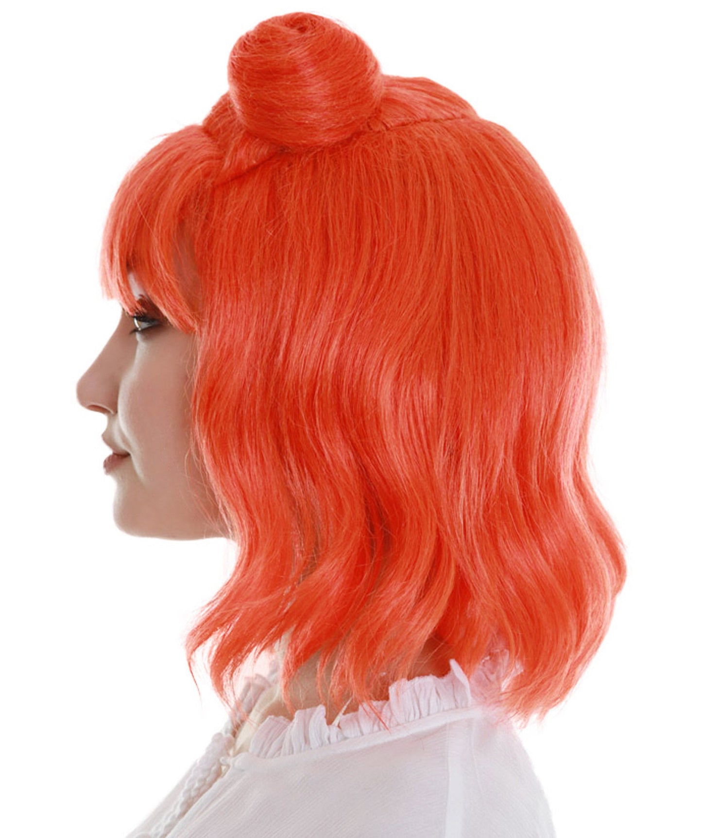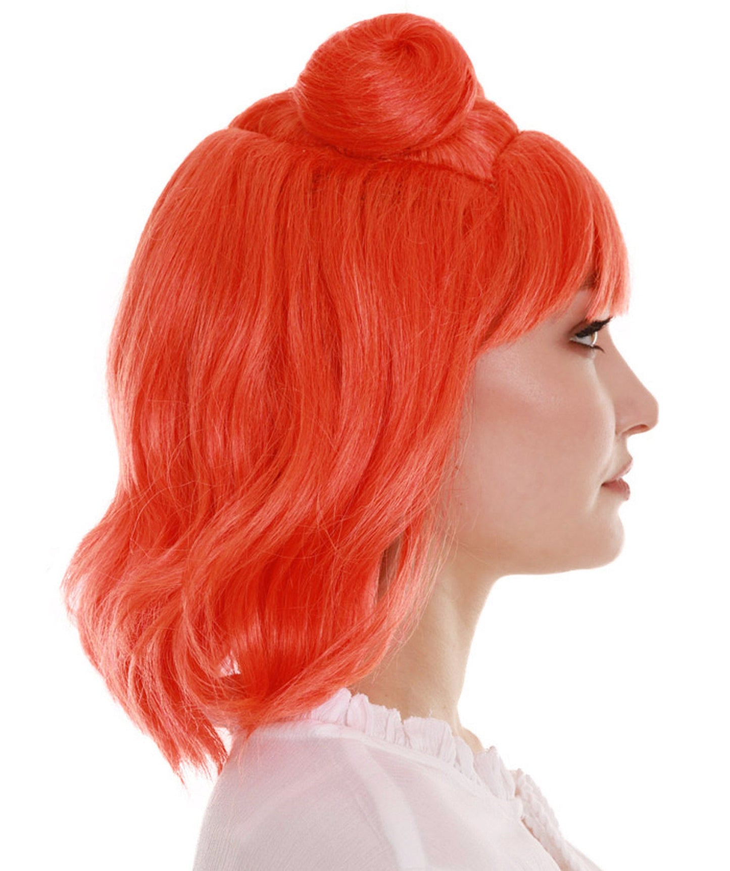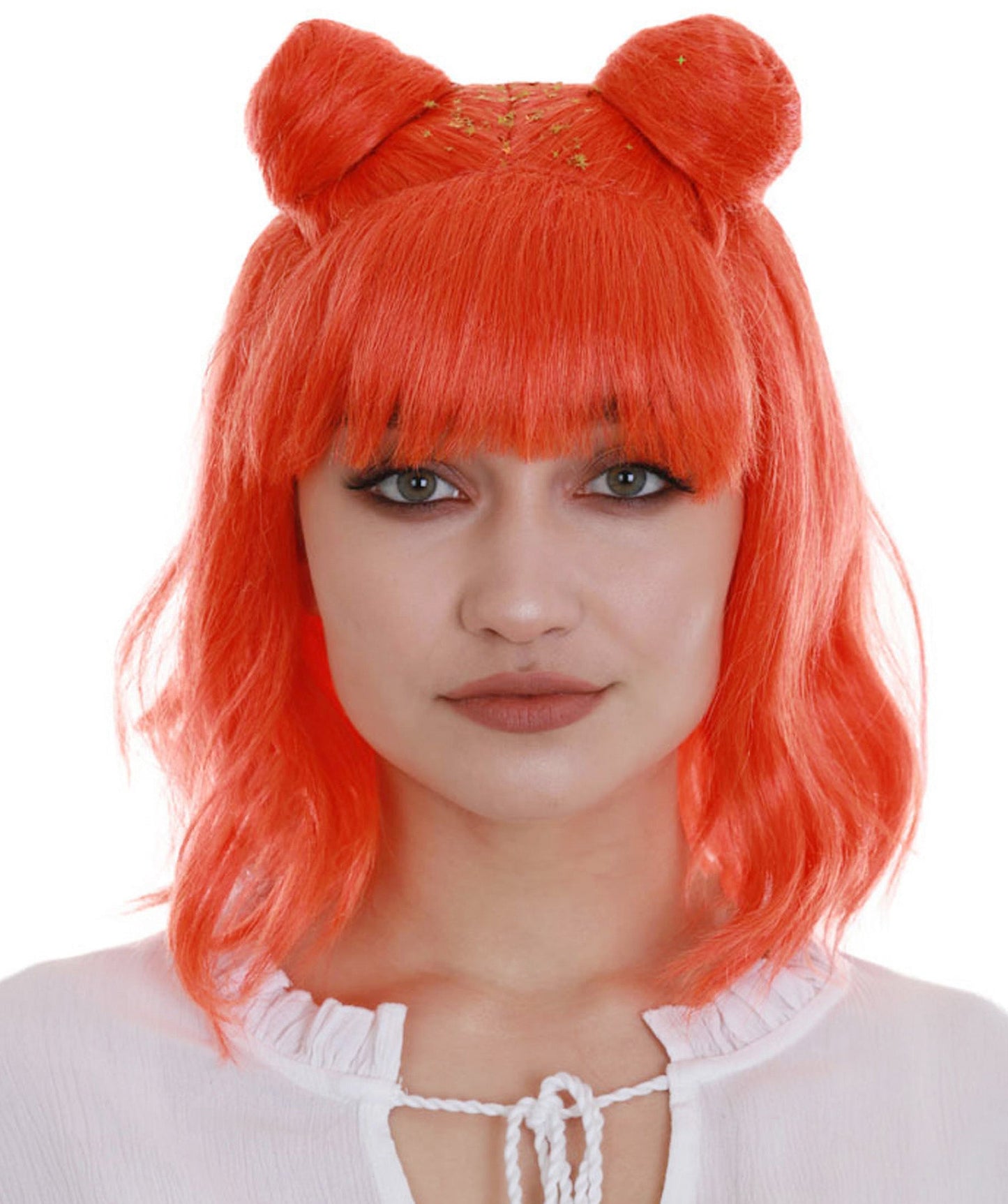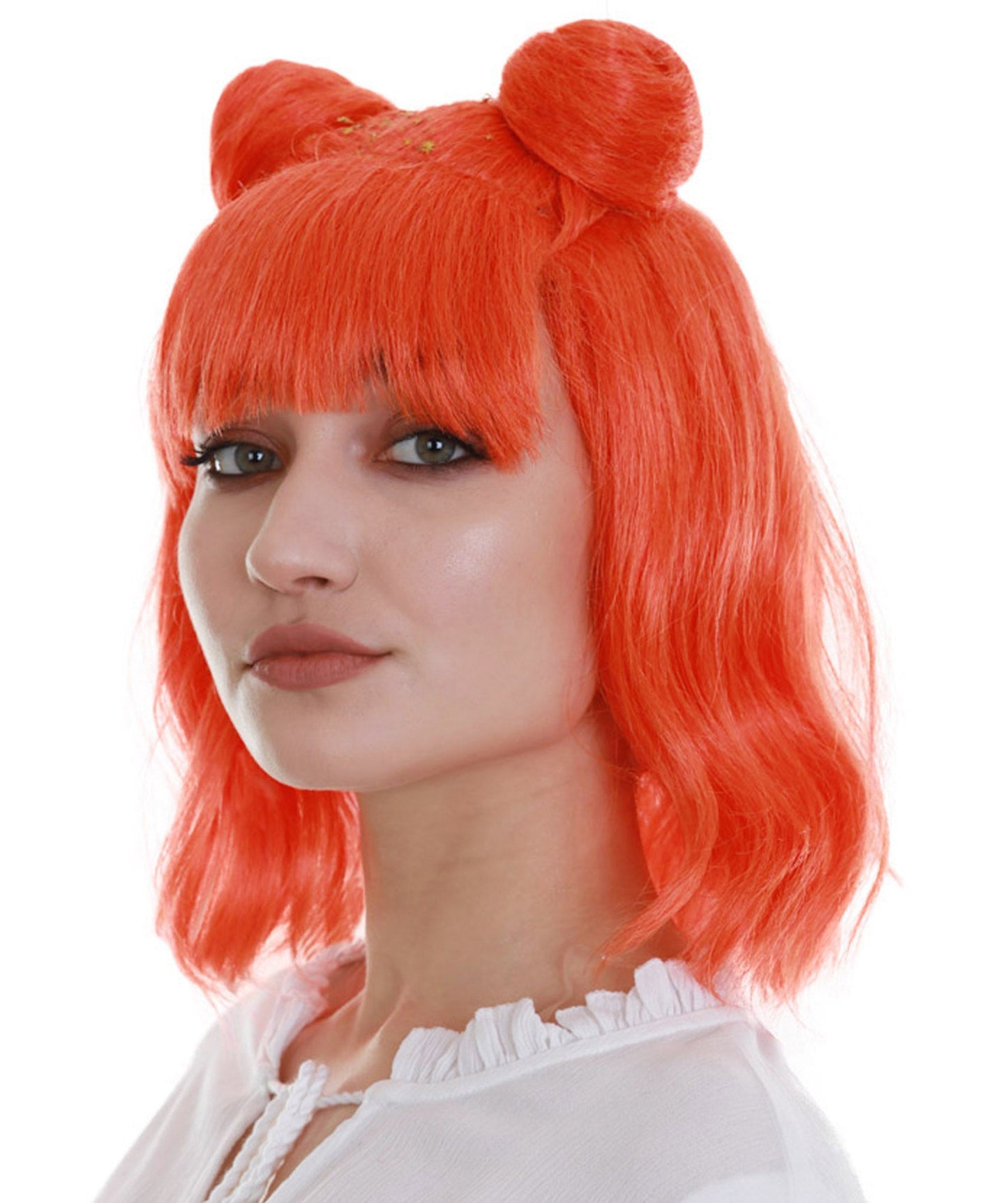 So, This Space Buns Wig from HPO is a great accessory for anyone looking for fun. With its orange color, shoulder-length style, and two buns on the head, this wig is perfect for any costume party or fun event.