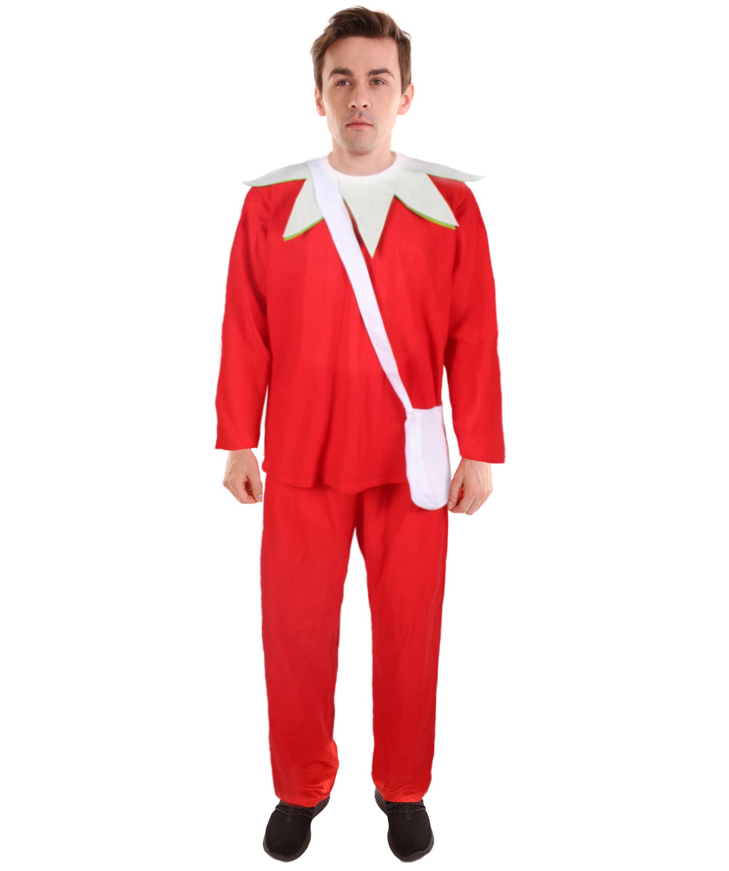 The costume includes a red pant that helps you to play the role of Santa's trusty assistant. Also, the costume includes an adorable, sturdy gift bag. Sized just right for carrying small presents or festive treats, this bag will make you look the part while keeping your essentials close at hand. Its durable construction ensures it can be used year after year.