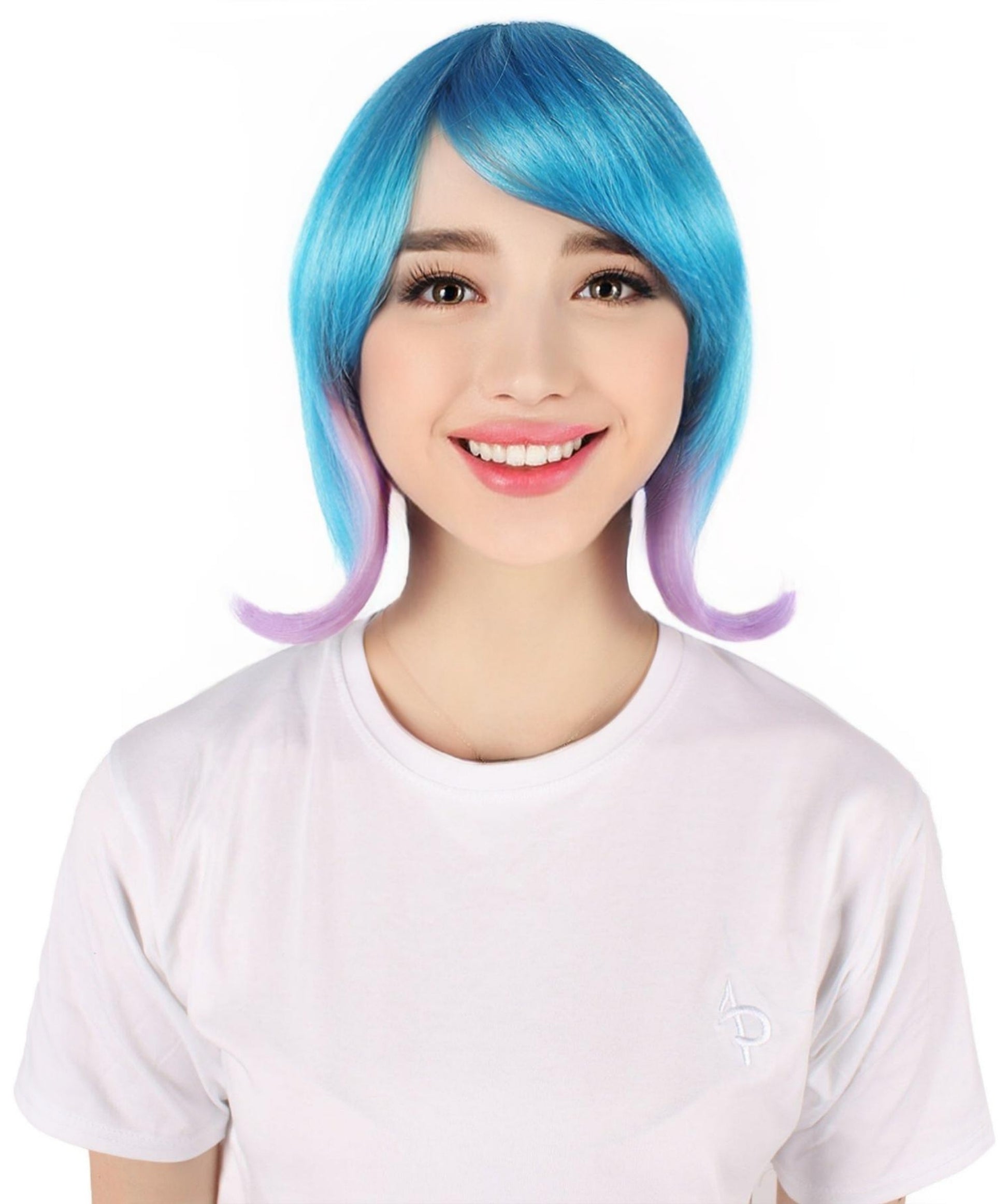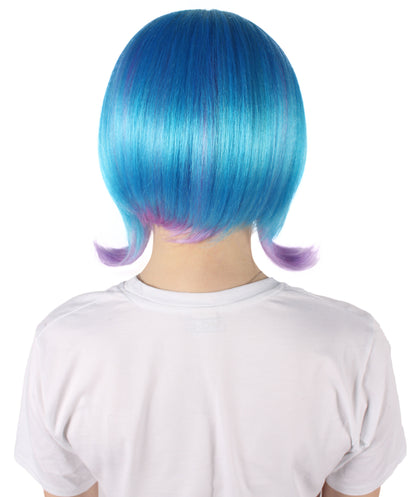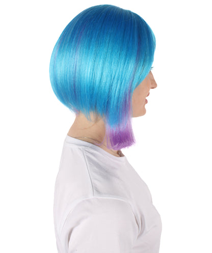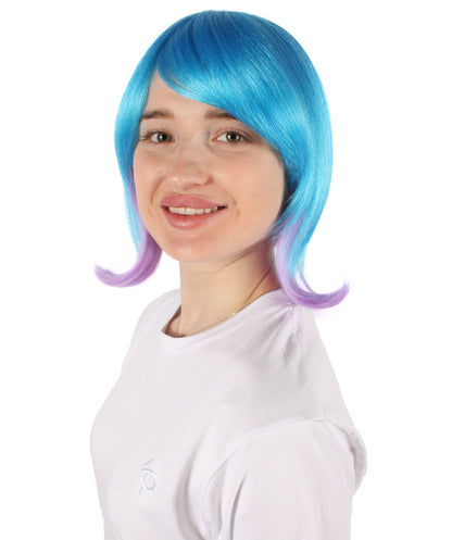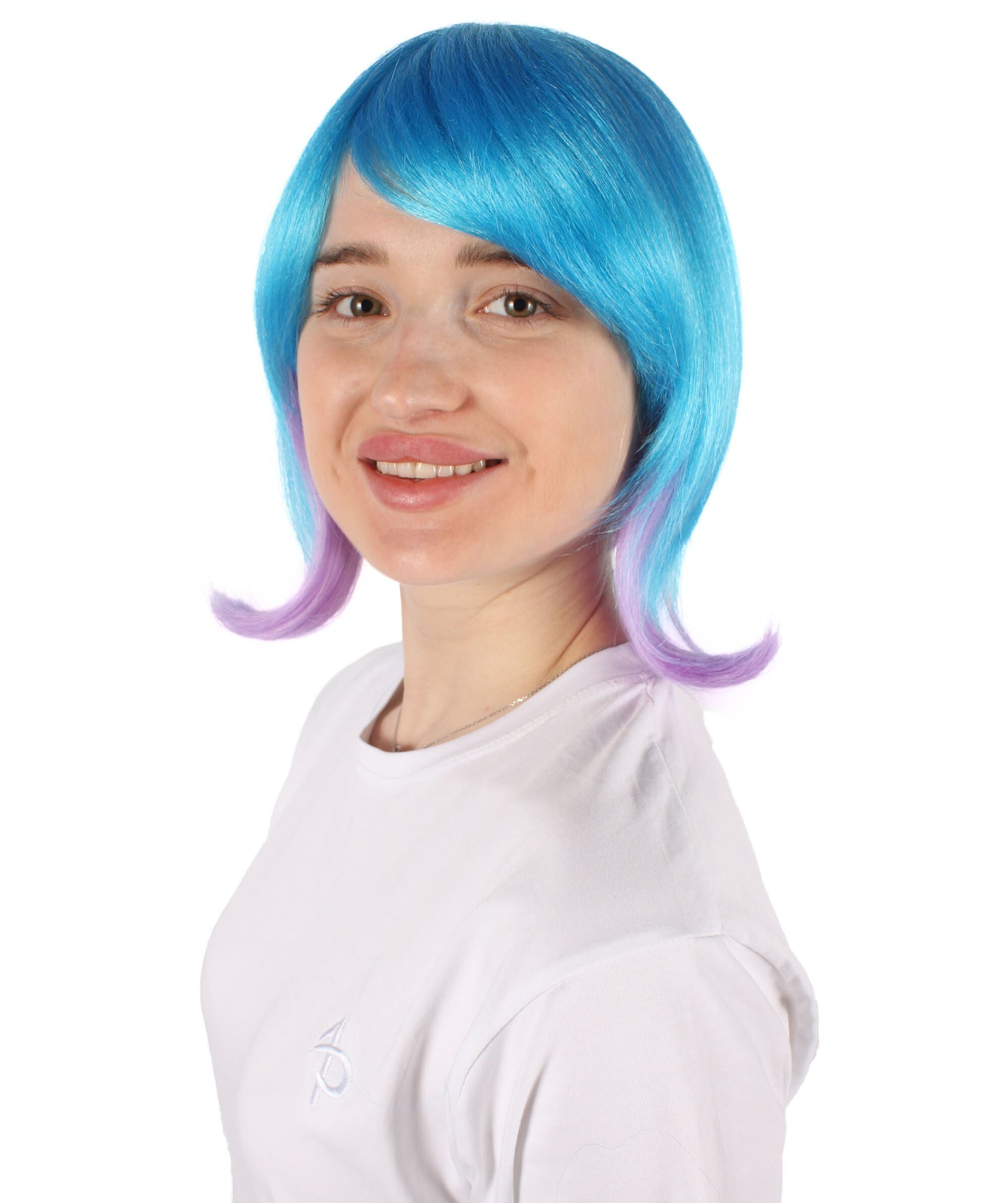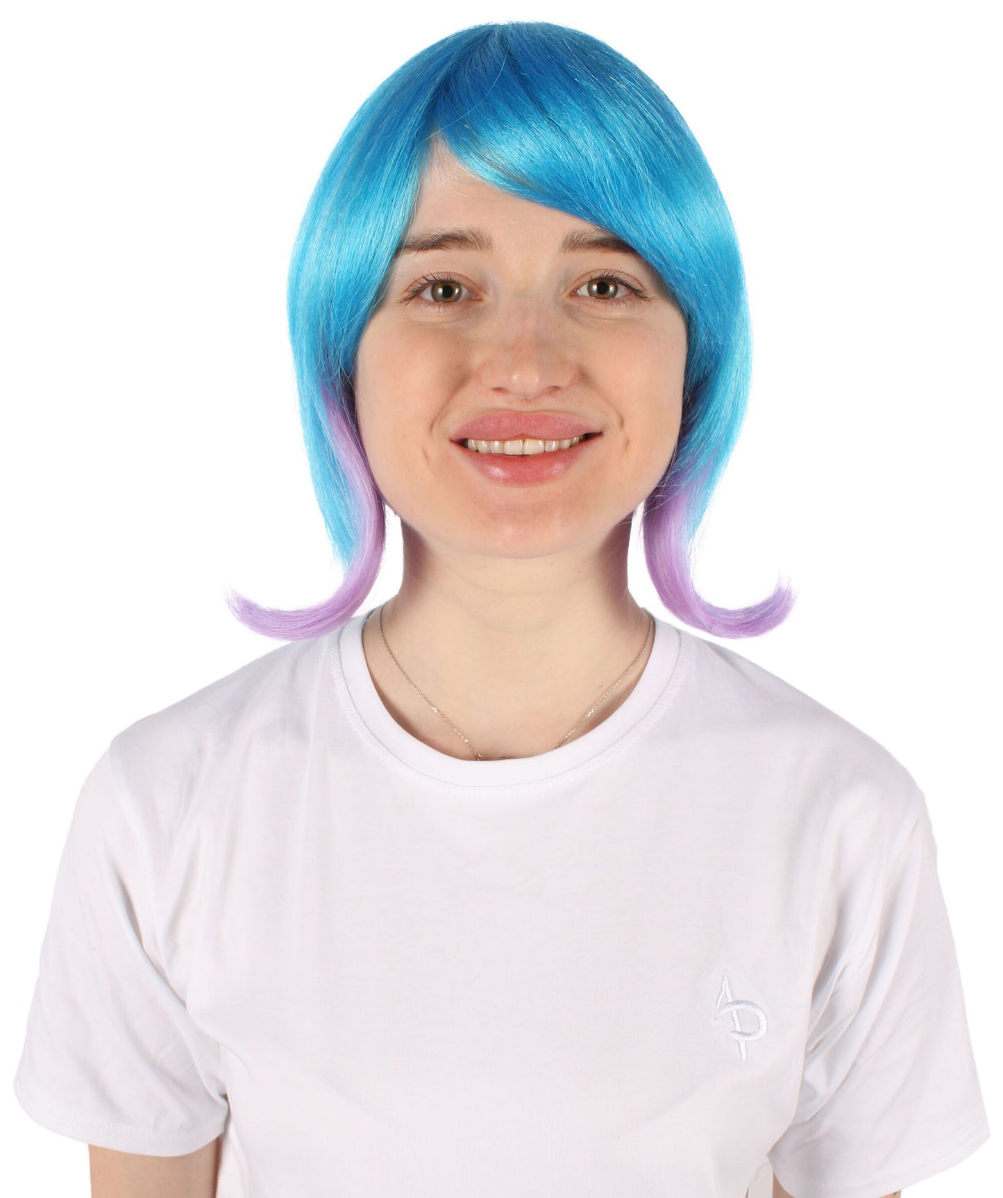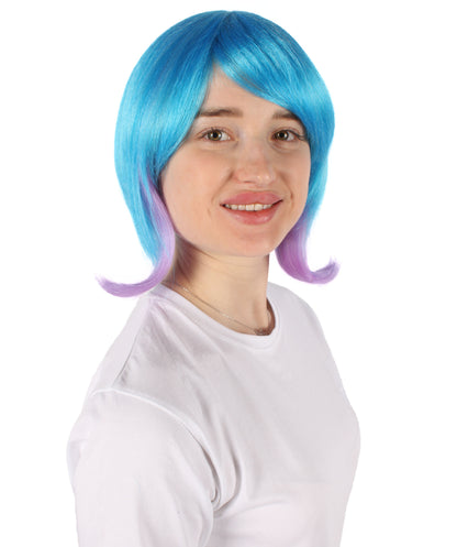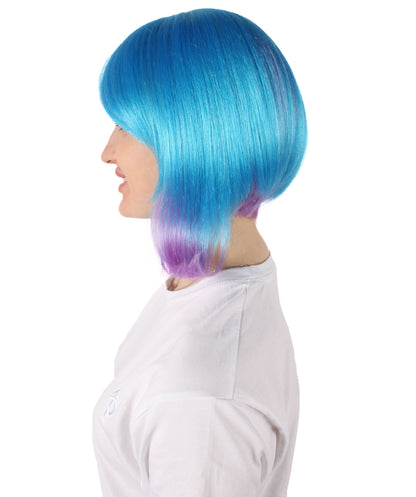 HPO Women's Teal Purple Short Wavy Wig I Halloween Wig I Flame-retardant Synthetic Fiber