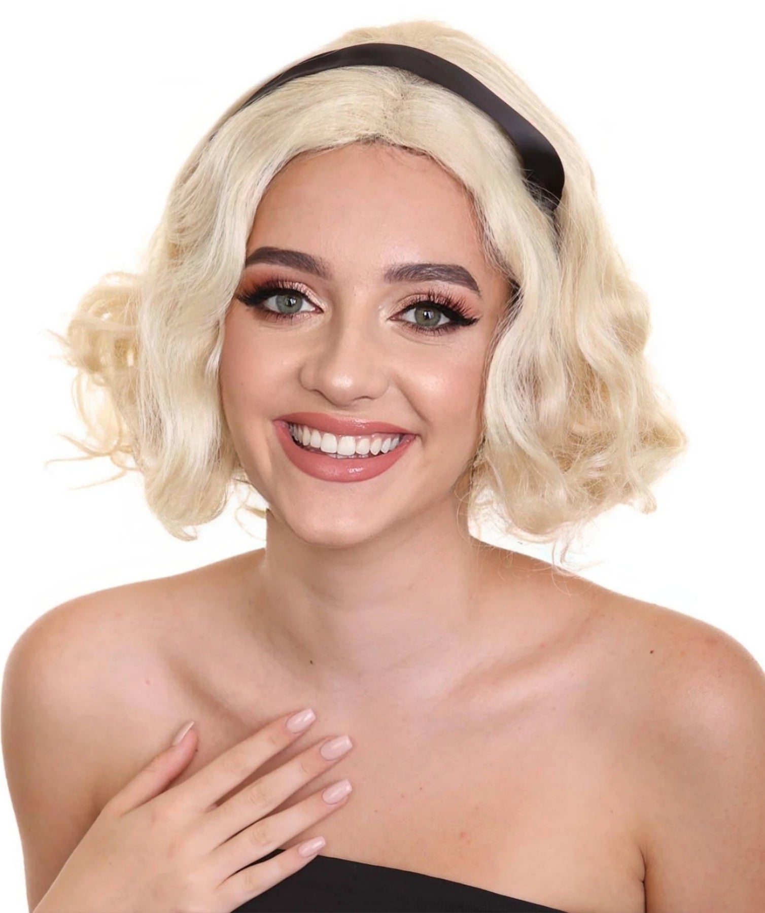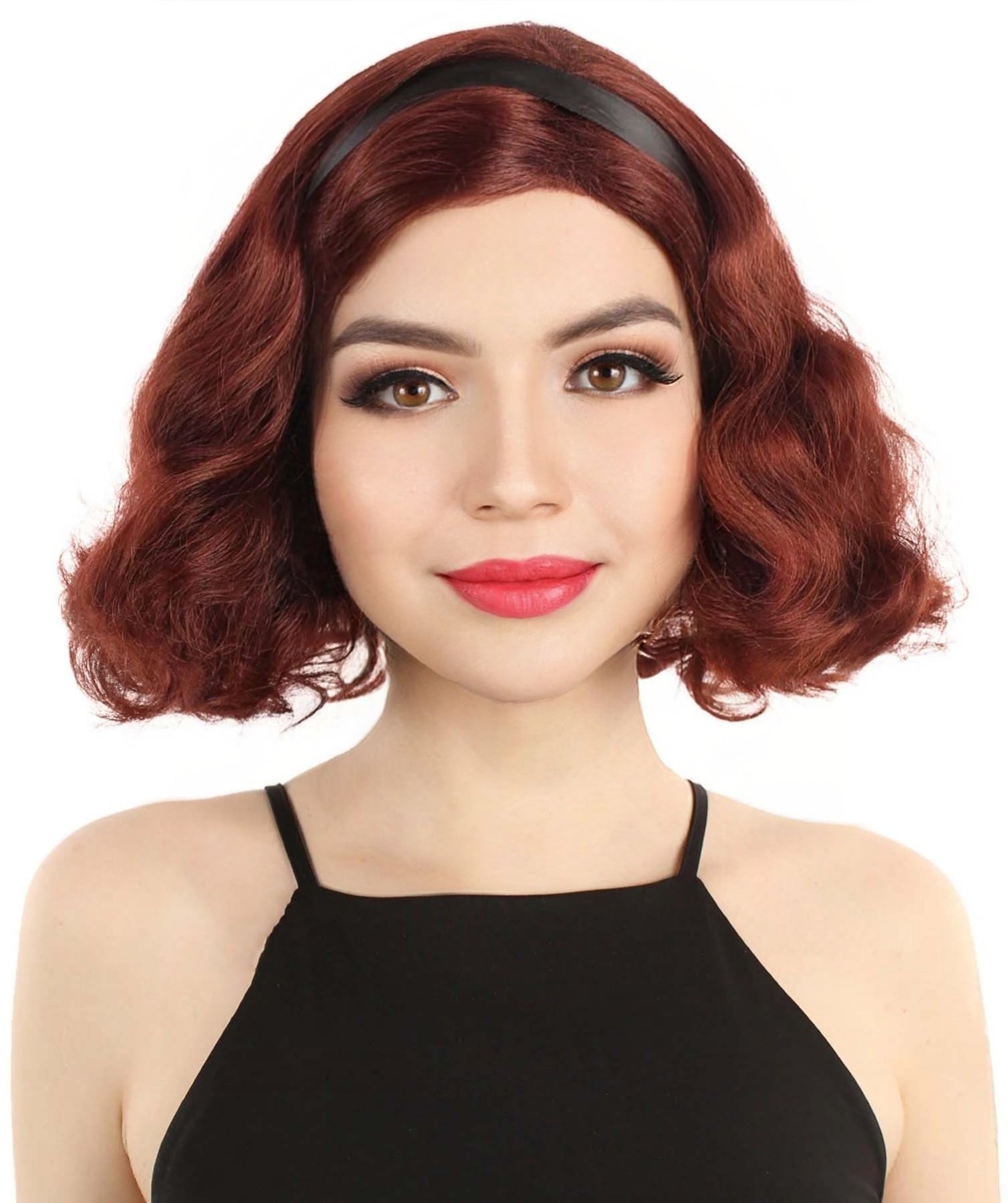 HPO Women's Chilling Witch Wavy Bob Wig with Black Head Ribbon, Multiple Color Option, Perfect for Halloween | Flame-retardant Synthetic Fiber