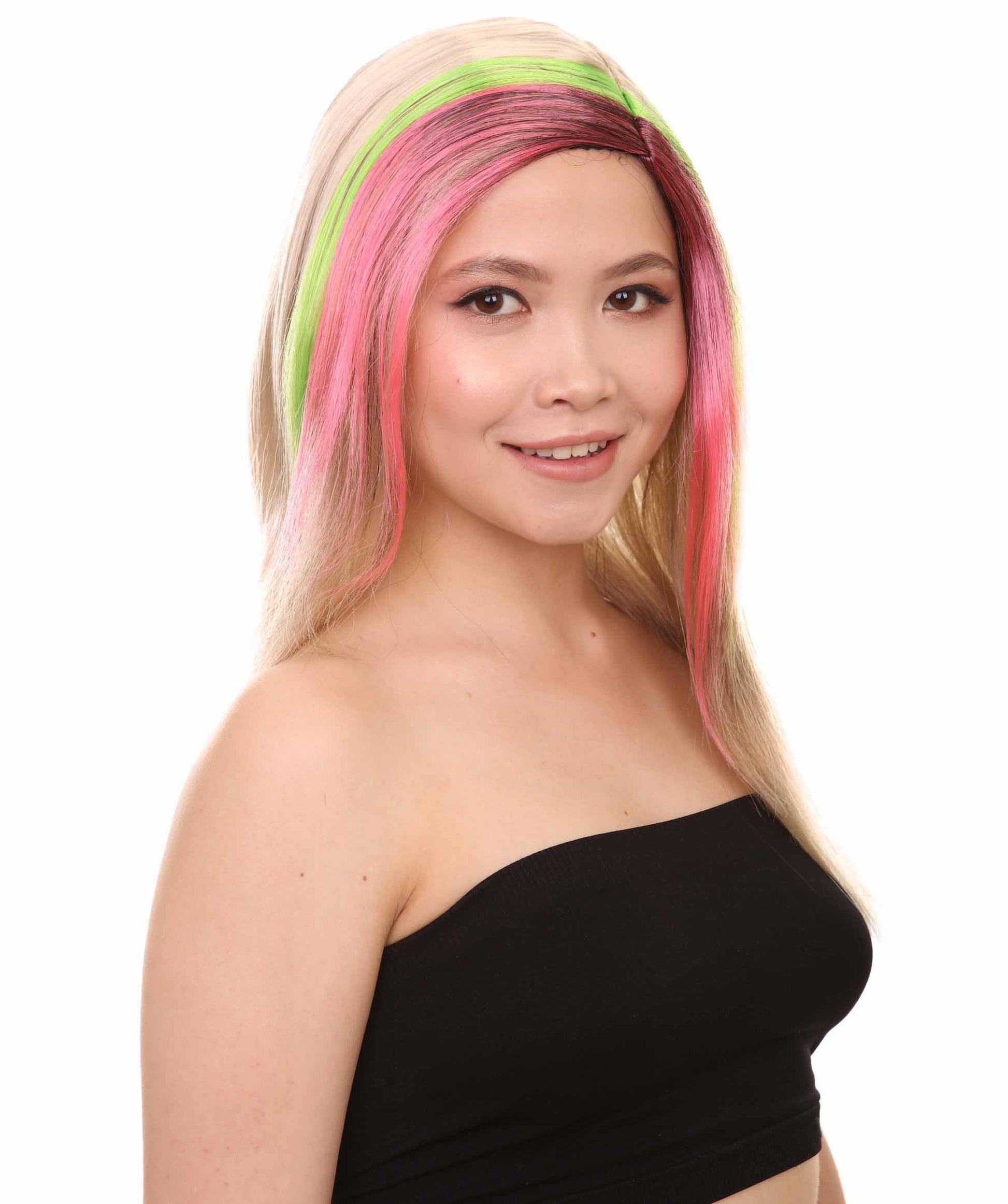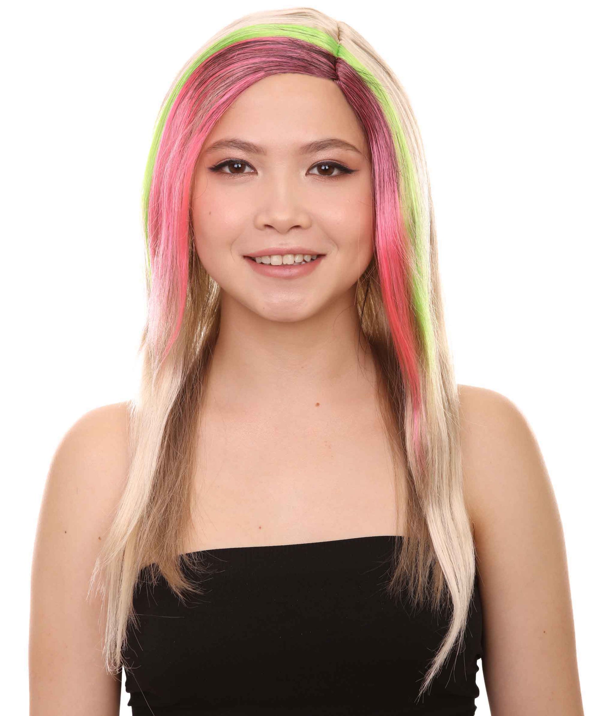 The Tri-Color Punk Unisex Wig is a bold and edgy accessory that exudes attitude and rebellion. It is a stunning cosplay accessory for every cosplay lover. The wig features three striking and contrasting colors- vibrant purple, light green and blonde.