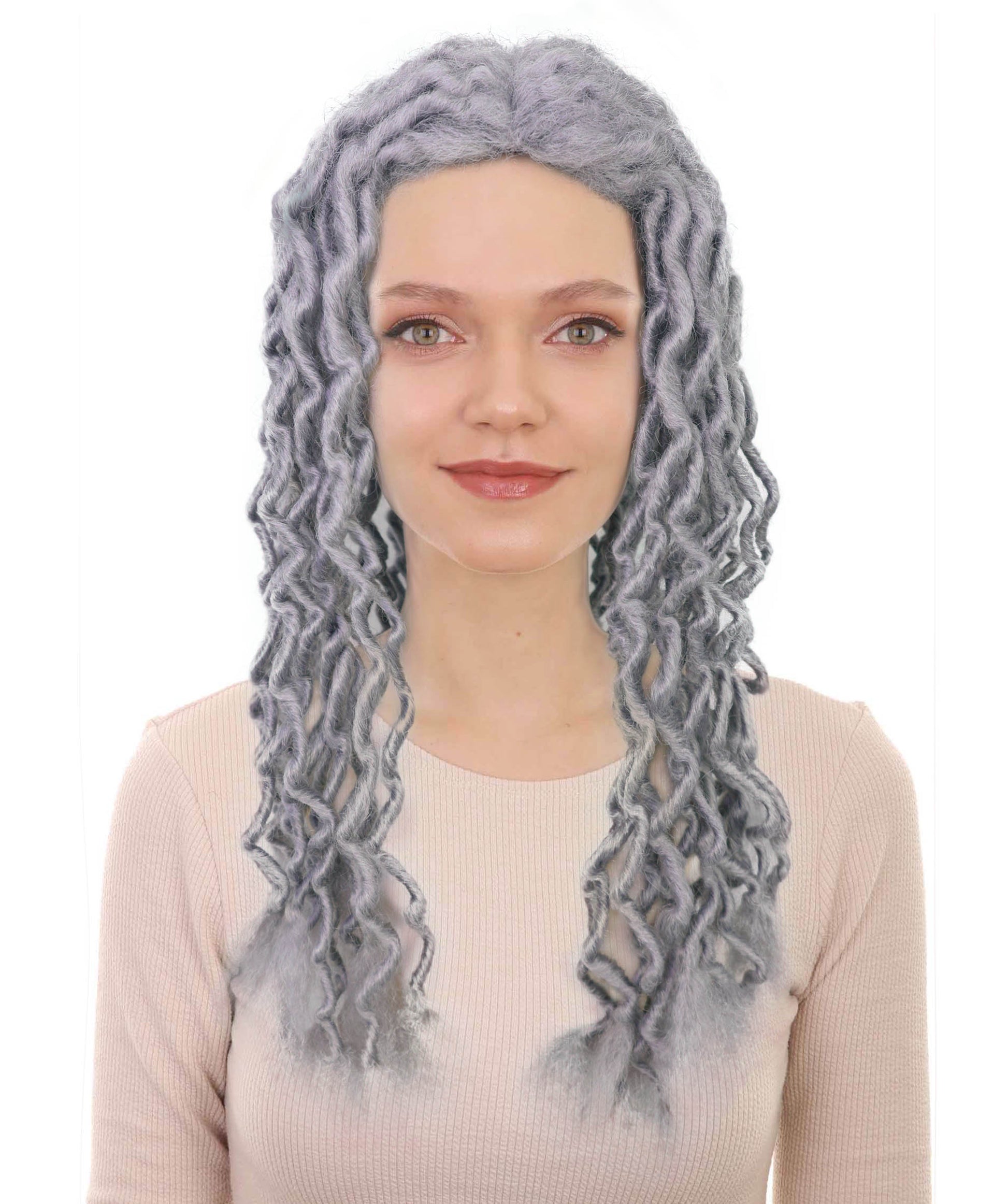 Step into the spotlight with this Adult Unisex Gray Crinkle Dreads Wig, a bold hairstyle designed for creative Halloween, music festivals, and costume parties.