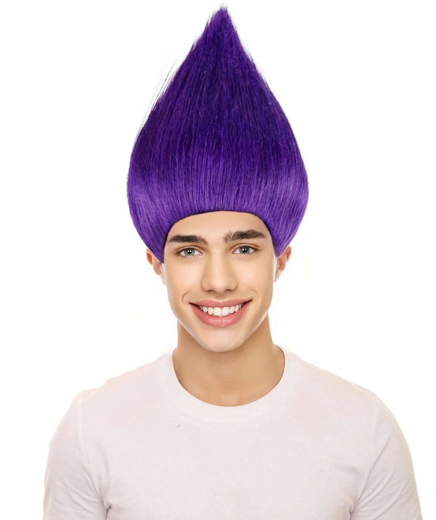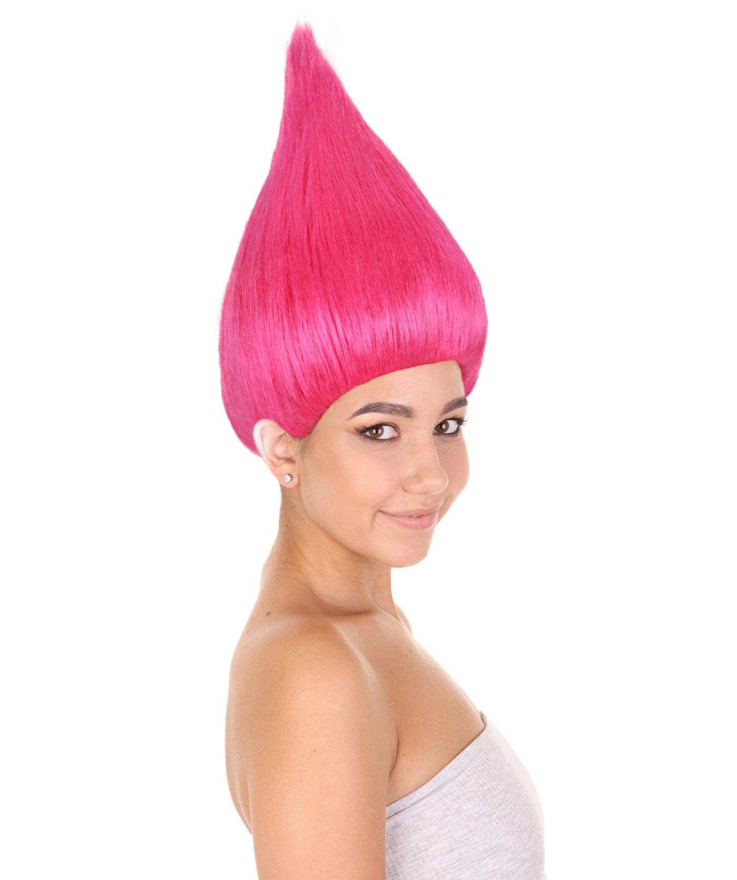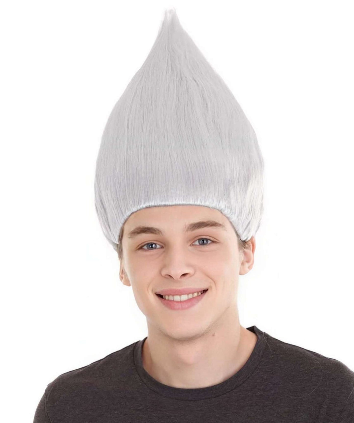 Unisex Troll Wig Dress up as a fun, happy-go-lucky troll at your next Halloween or costume party with this soft synthetic wig that comes with a breathable capless cap. These styled-to-stand-up troll wigs come in all varieties! Choose from multiple colors and patterns to create the troll persona of your dreams. The adjustable lining can be stretched up to 22 inches and can be made small enough to accommodate children aged four and up. These wigs are versatile - white can be used to cosplay vanilla ice cream, pink makes for a perfect fairy, yellow looks just like a beam of sun, and rainbow could create a great unicorn costume. Unleash your creativity!
