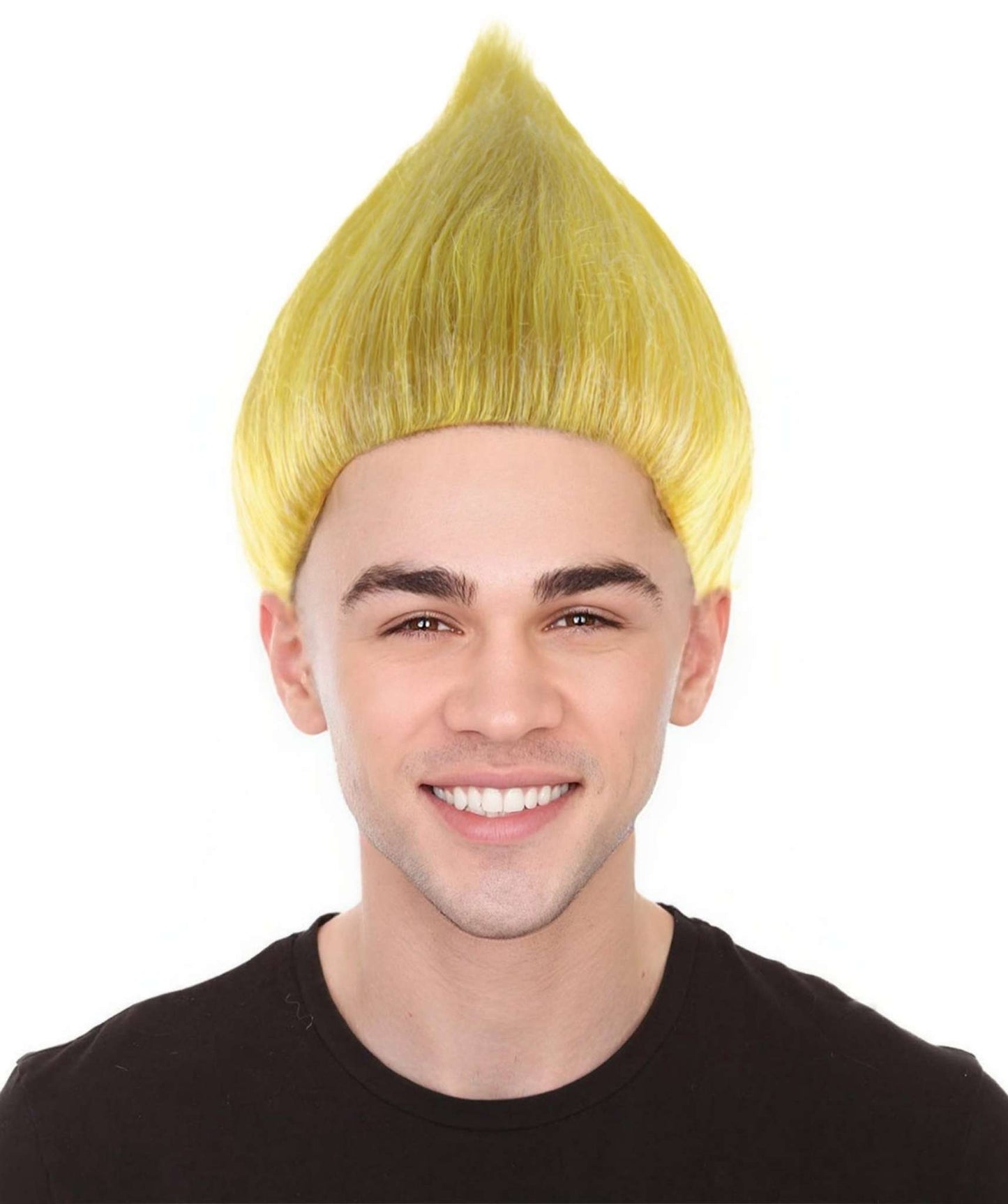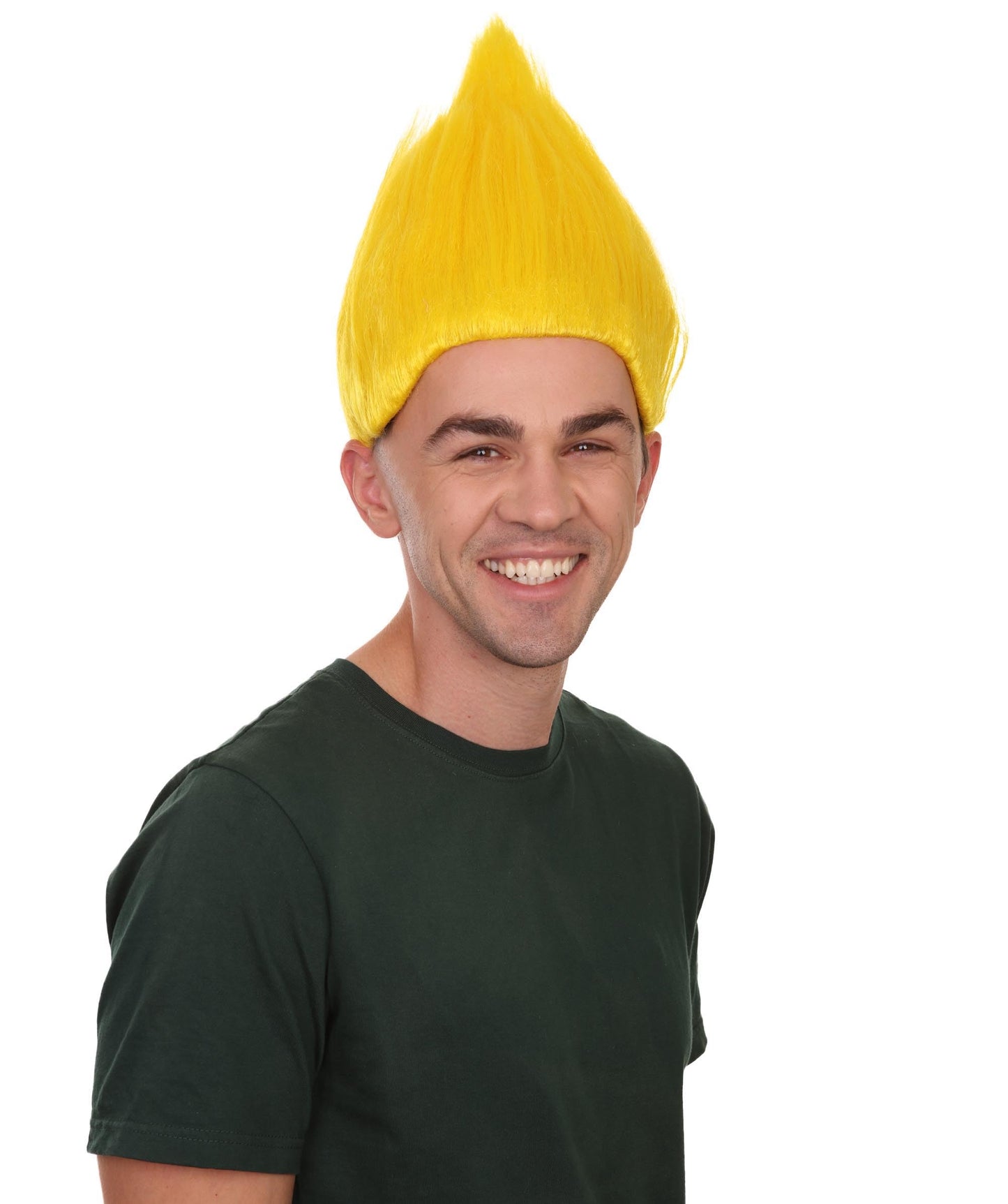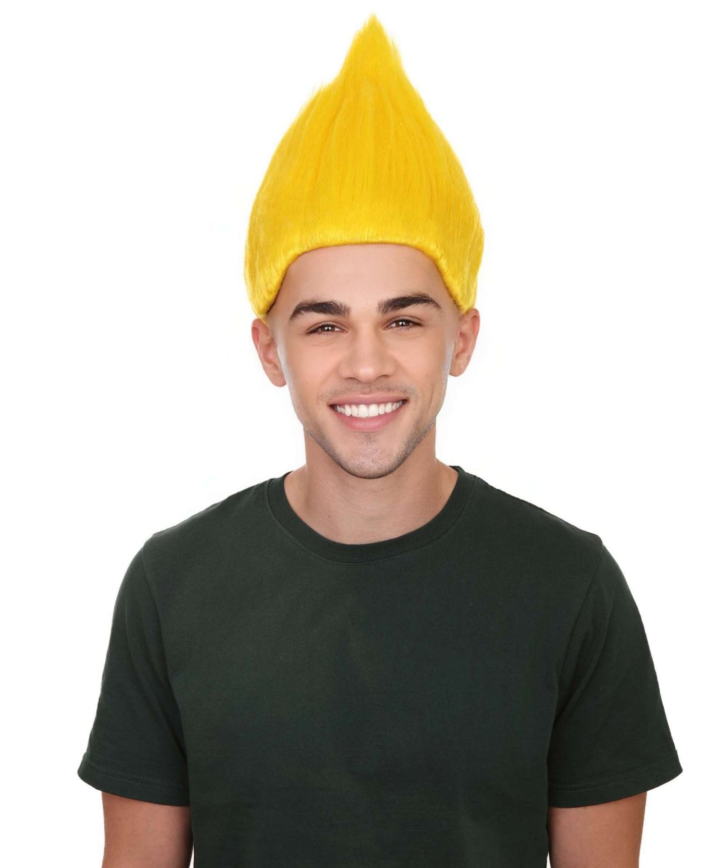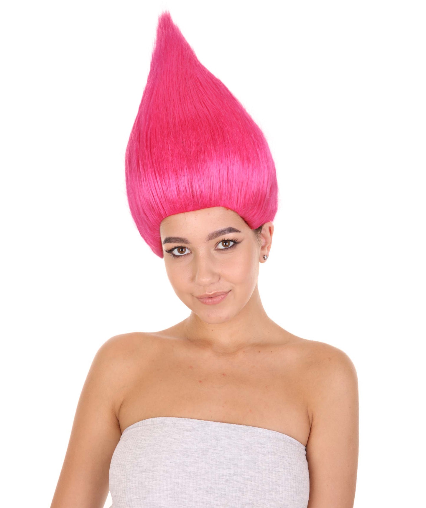 Unisex Troll Wig Dress up as a fun, happy-go-lucky troll at your next Halloween or costume party with this soft synthetic wig that comes with a breathable capless cap. These styled-to-stand-up troll wigs come in all varieties! Choose from multiple colors and patterns to create the troll persona of your dreams. The adjustable lining can be stretched up to 22 inches and can be made small enough to accommodate children aged four and up. These wigs are versatile - white can be used to cosplay vanilla ice cream, pink makes for a perfect fairy, yellow looks just like a beam of sun, and rainbow could create a great unicorn costume. Unleash your creativity!