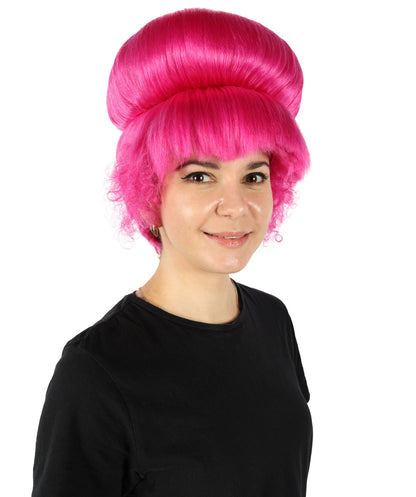 HPO Women's Vibrant Pink Updo Bun Wig I Flame-retardant Synthetic Fiber