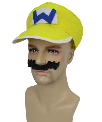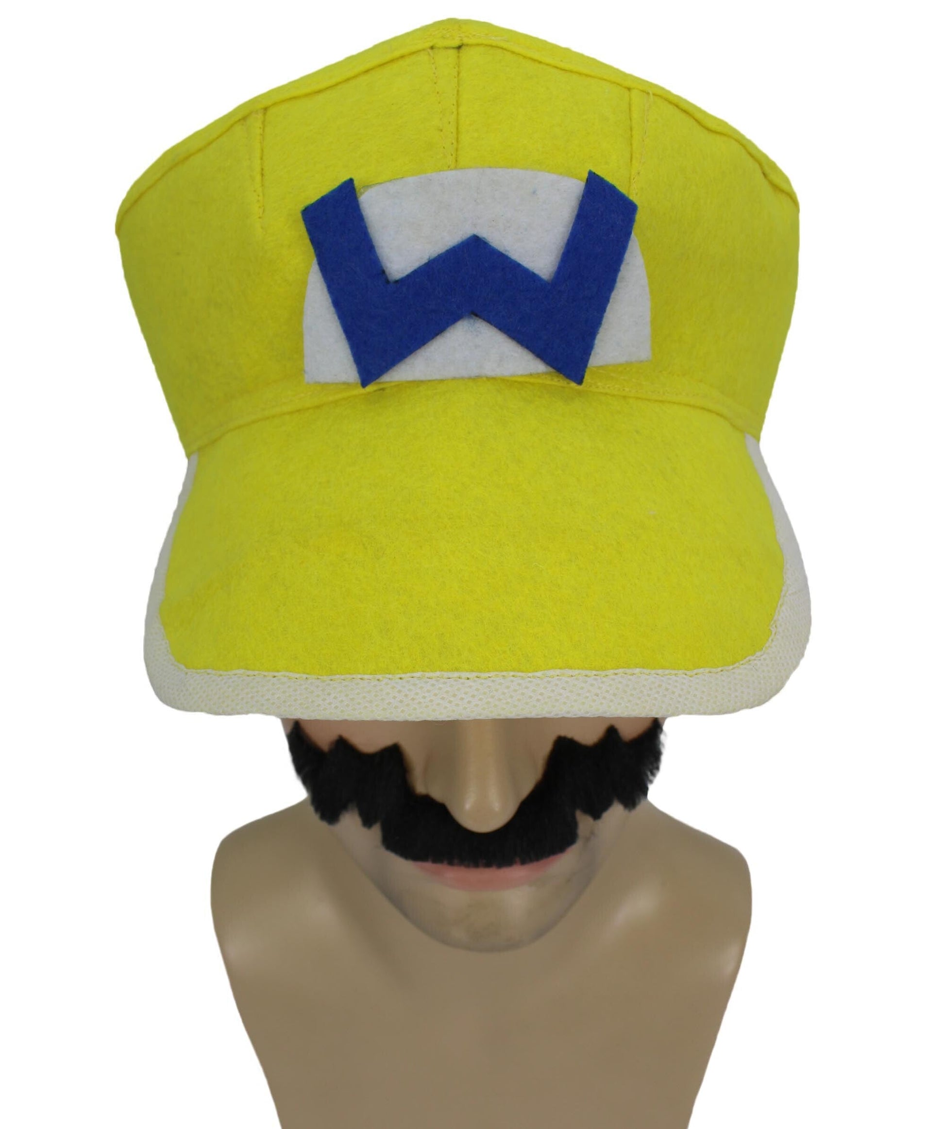 Crafted from the finest materials in the Mushroom Kingdom, this set includes everything you need to become the infamous treasure-hunting, coin-grabbing, garlic-loving villain himself. First up, we have the iconic yellow and blue hat, complete with his signature ""W"" emblem. Pair that with the bushy, black mustache that sits perfectly on your upper lip, and you'll be ready to give the hero of the game a run for his money.