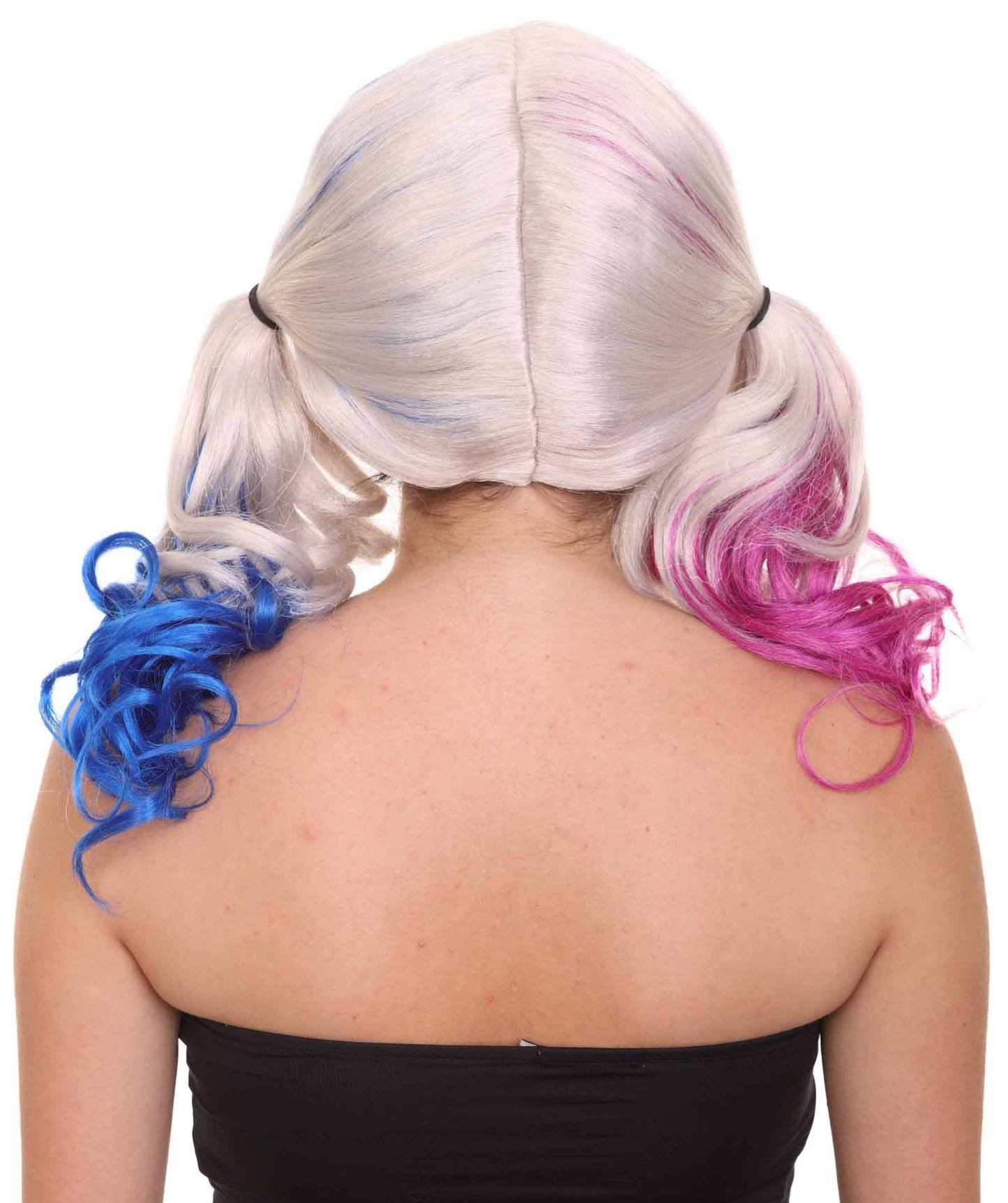 Villain Womens Wig | White Pink Blue Ponitail Wig | Premium Breathable Capless Cap