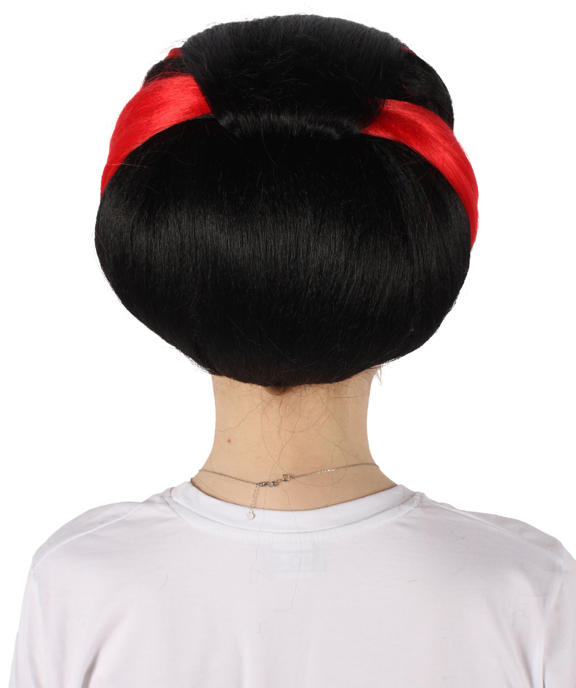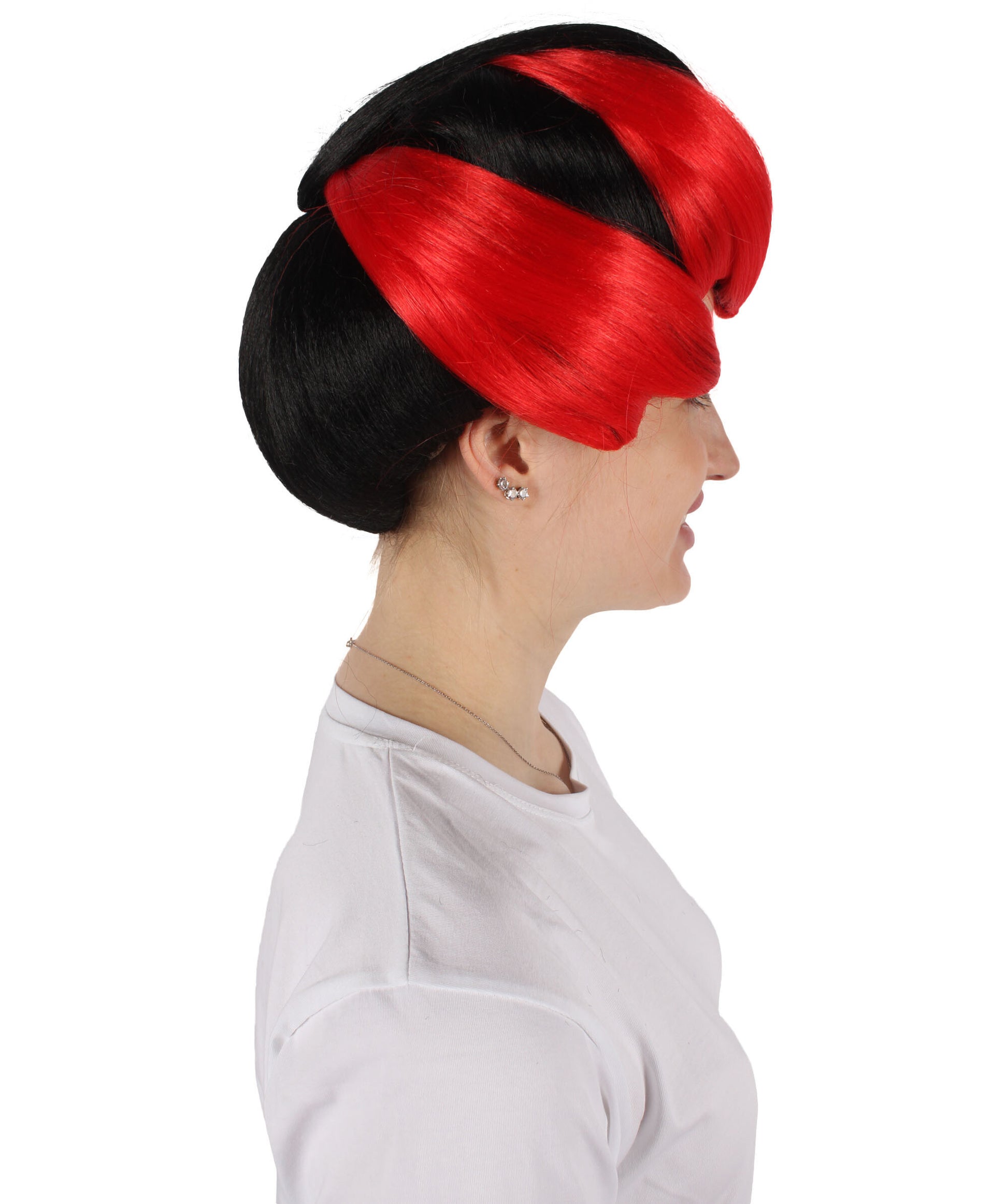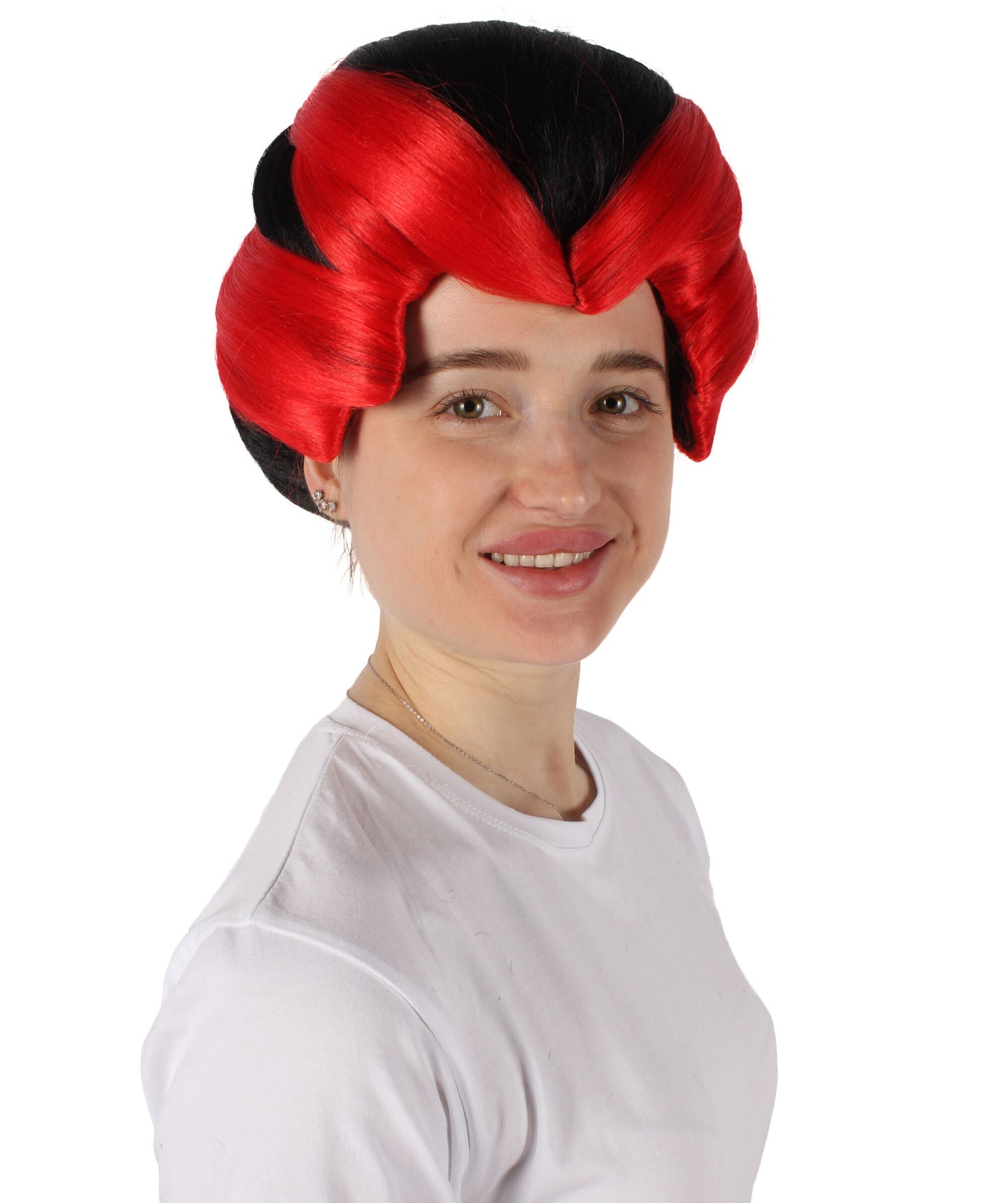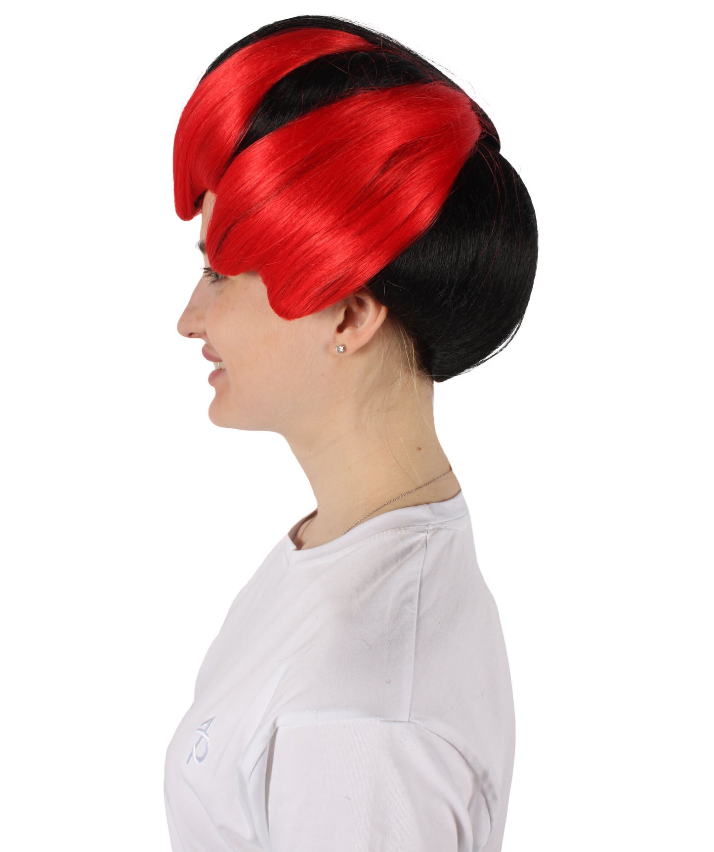 HPO Women's Volumized Black & Red Wig I Perfect for Halloween I Flame-retardant Synthetic Fiber