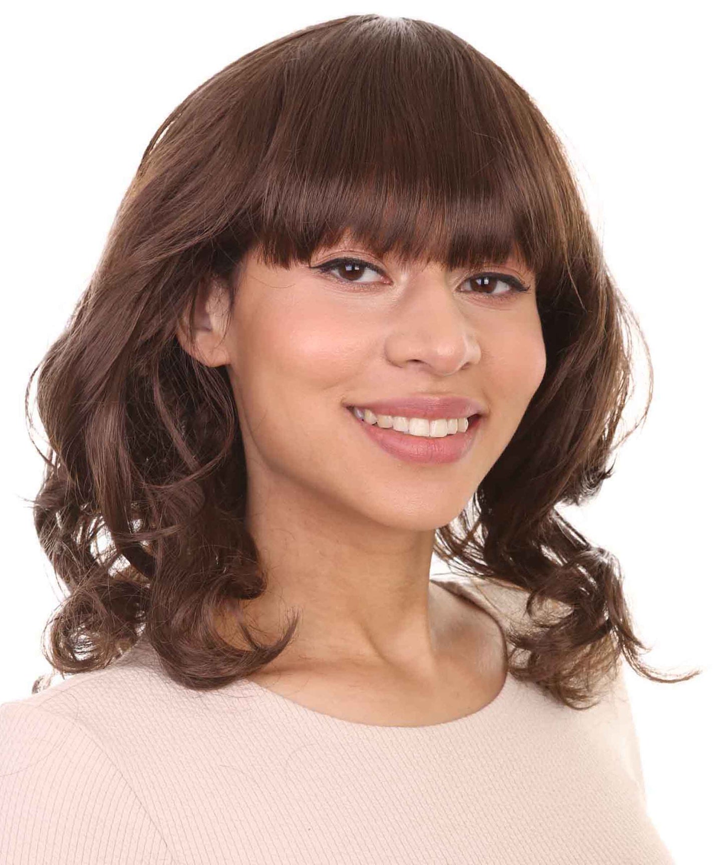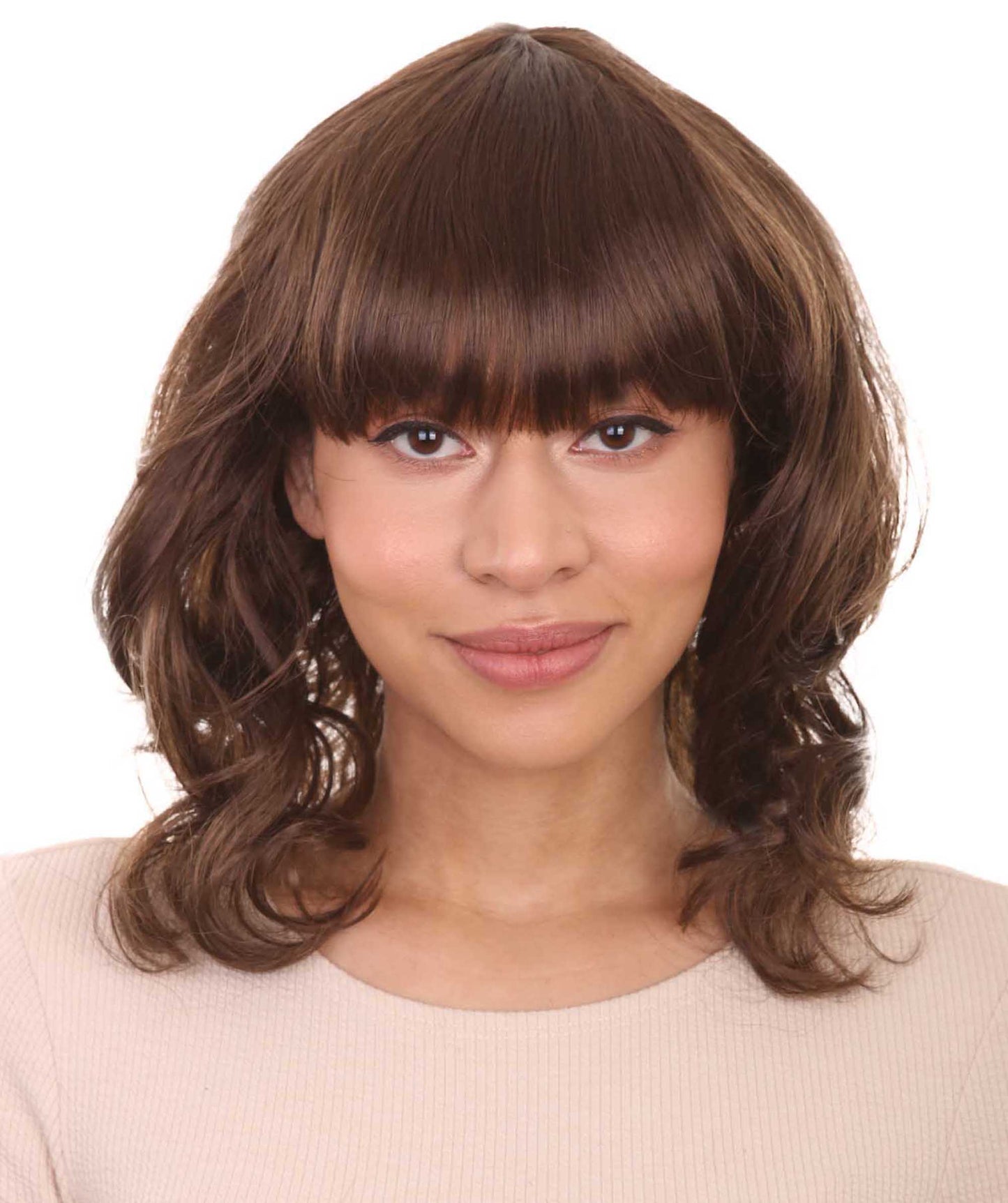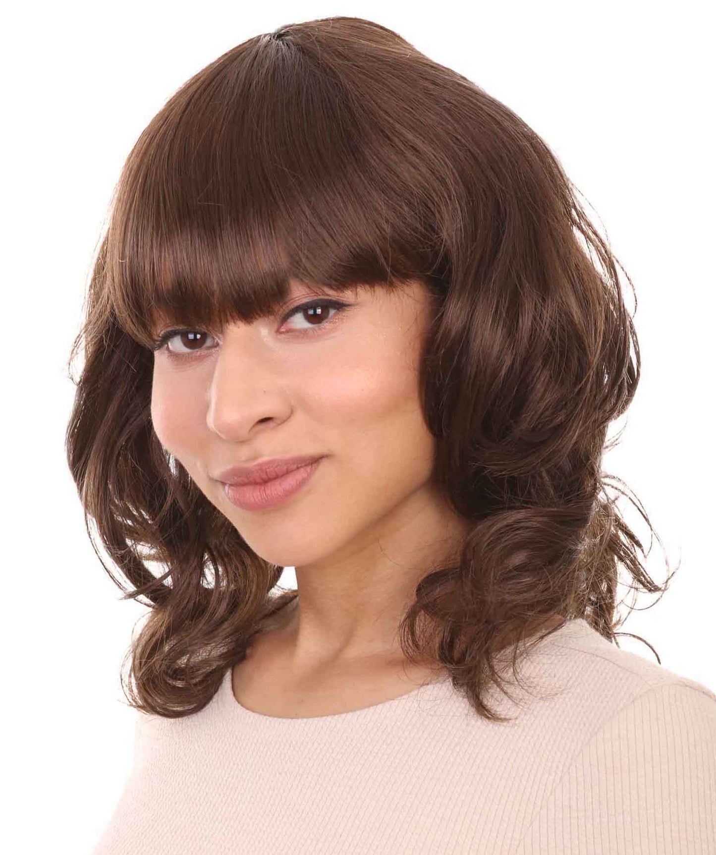 Wavy Brown Chic Womens Wig | Halloween Wig | Premium Breathable Capless Cap