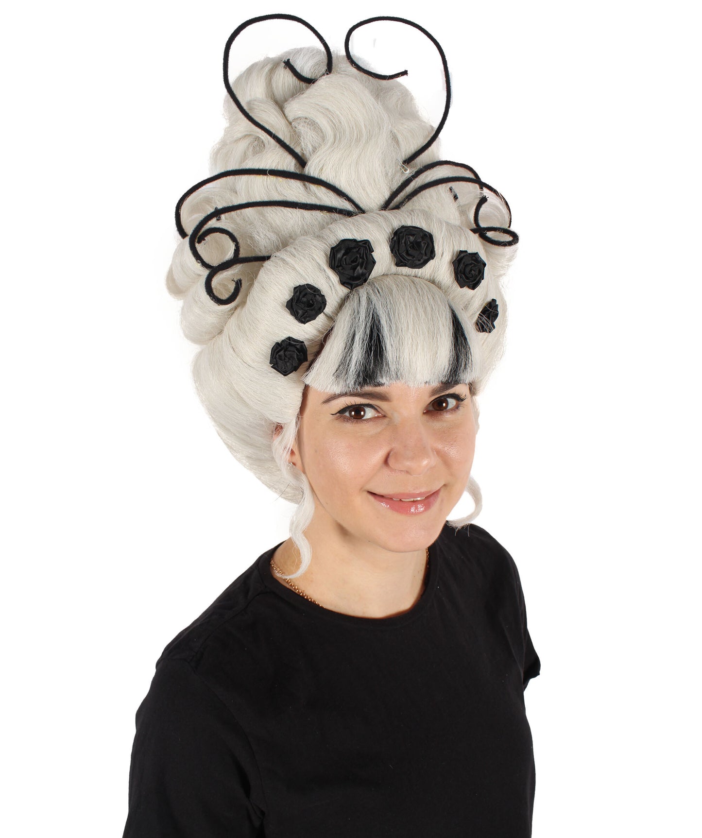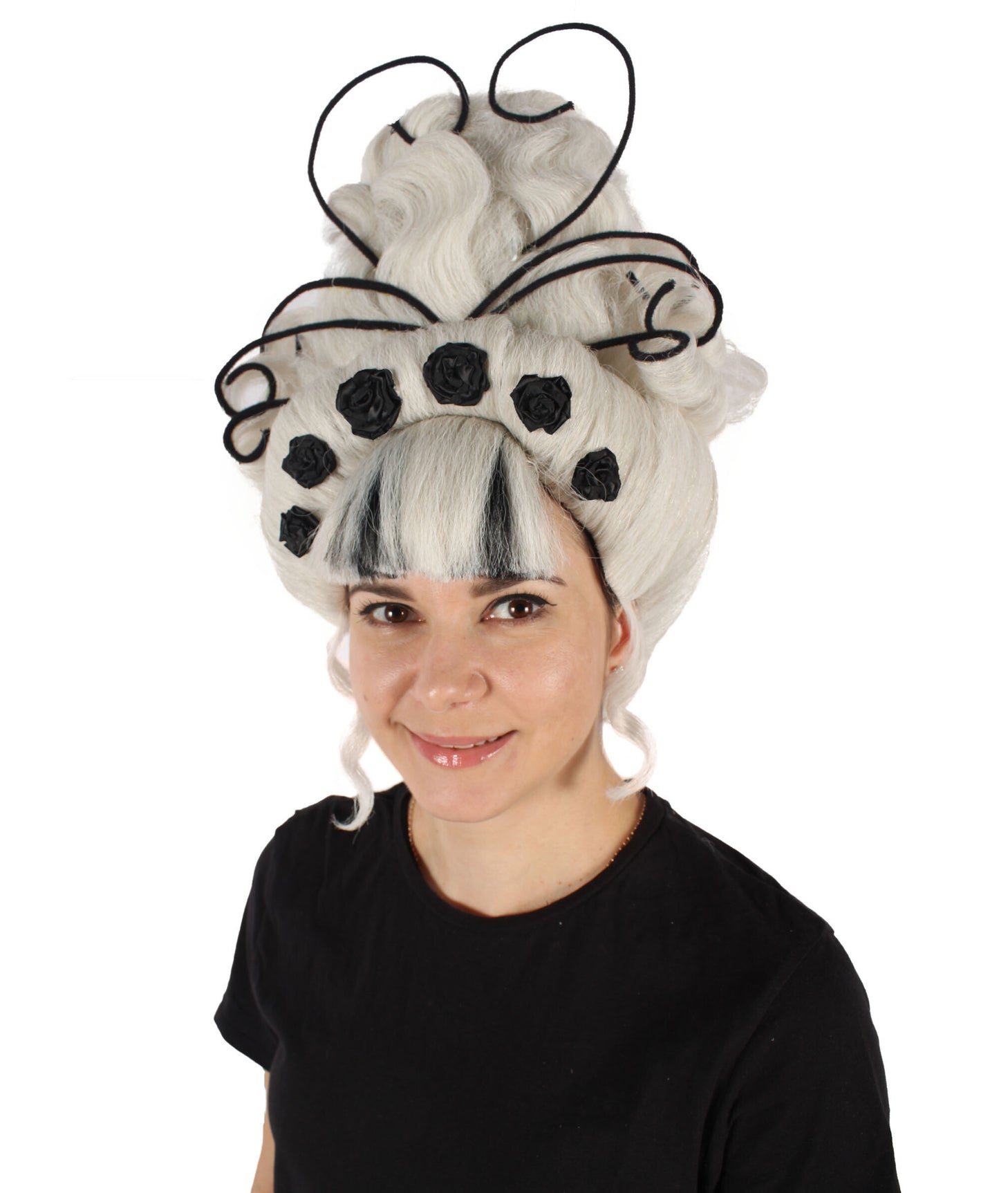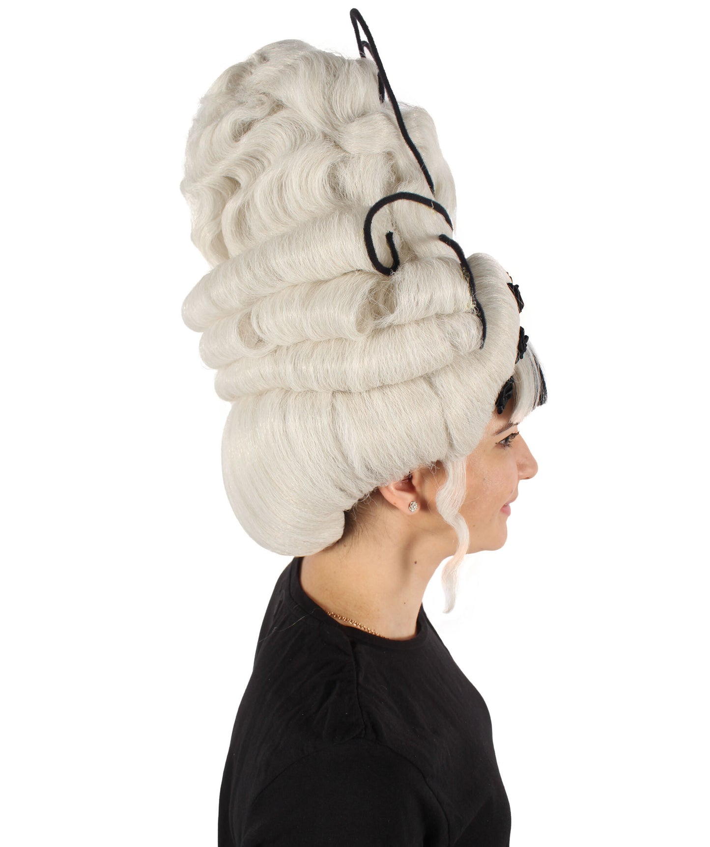 HPO Women's White Beehive Wig I Perfect for Halloween I Flame-retardant Synthetic Fiber