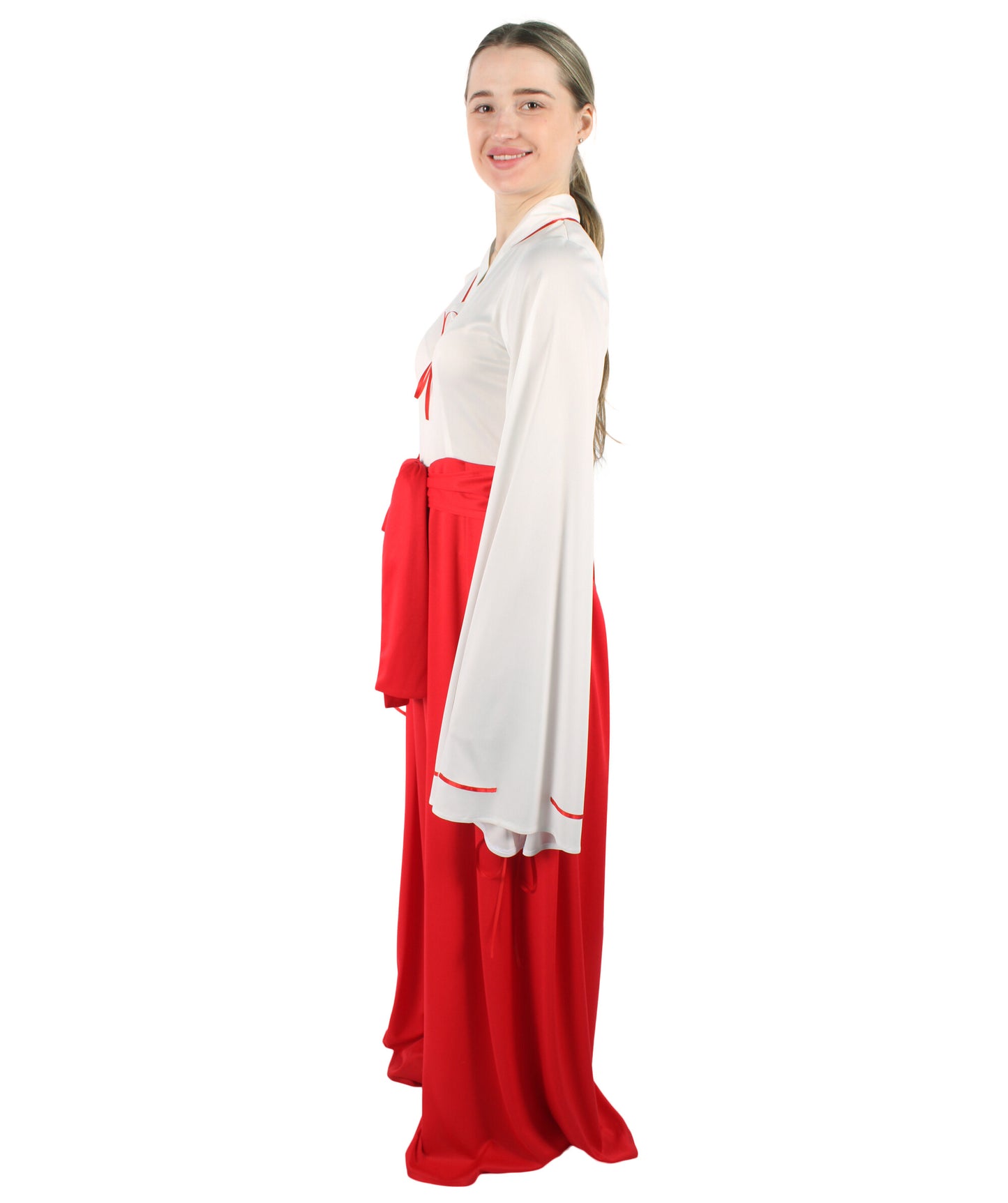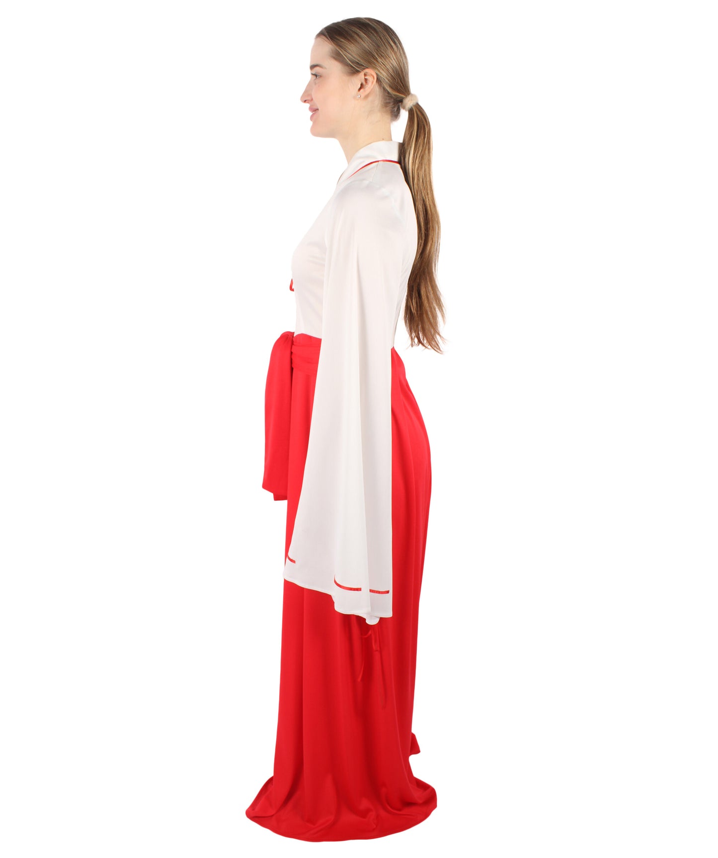 Enter a magical world with our Anime Priestess Red Kimono Costume which is specially designed for making your and Halloween more dramatic. Inspiration comes from a newly popular Japanese anime character. Our gorgeous Kimono Costume Set is made for people who want to represent the beauty and may of a supernatural protector. This Kimono Costume shows sophistication, beauty, and a hint of supernatural fascination, attracting inspiration from the traditional charm of traditional Japanese clothing. A combination of white and red colors makes this costume super elegant.