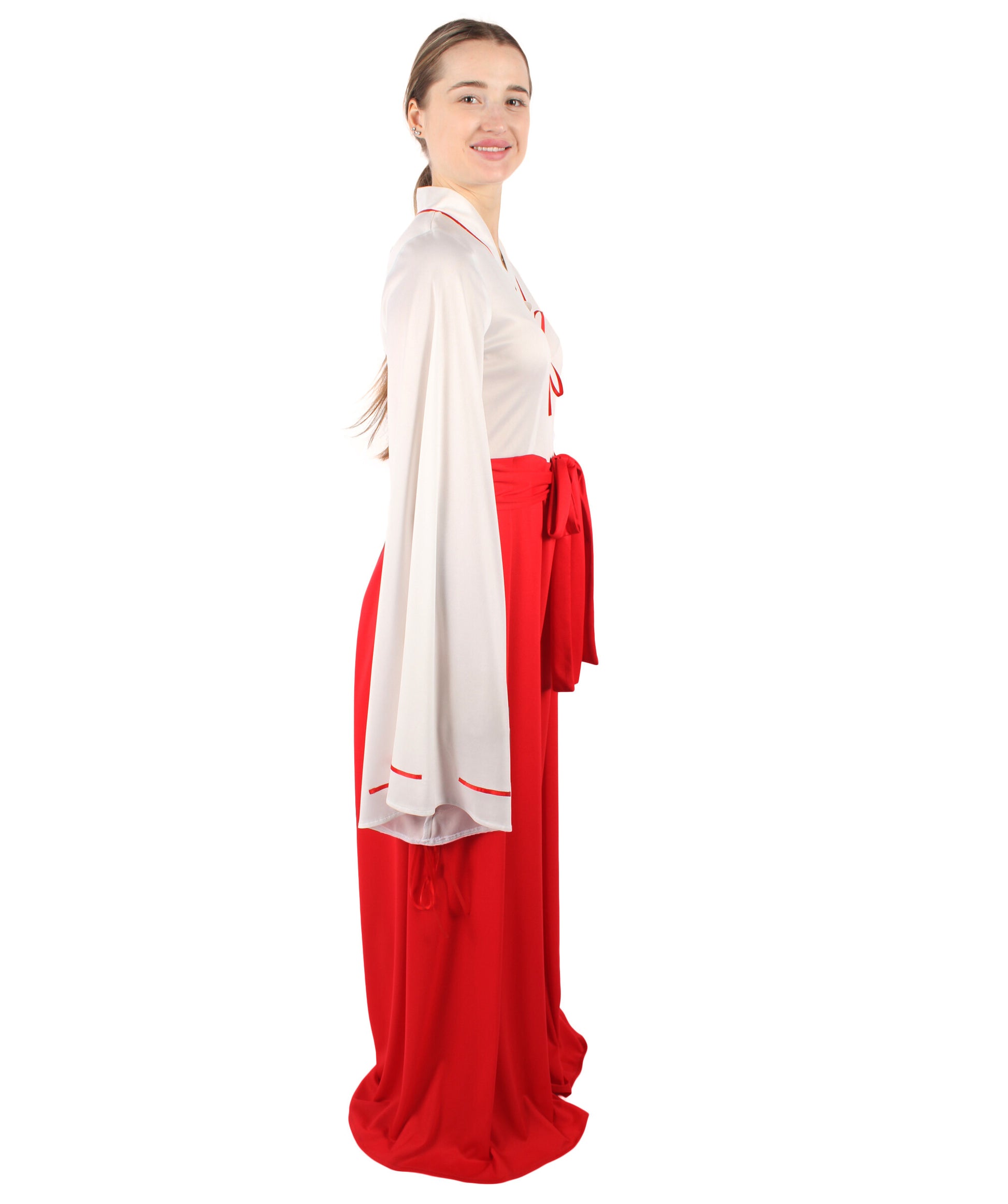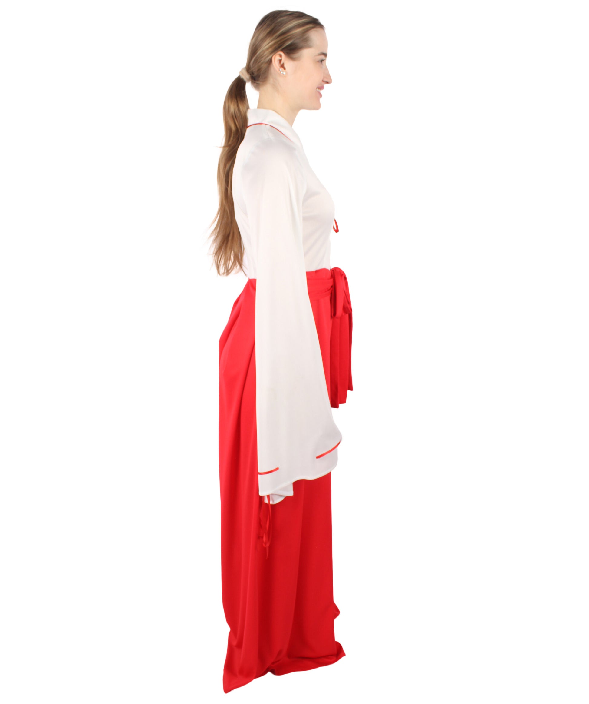 HPO Women Anime Priestess Red Kimono Costume,Perfect for Halloween ,Flame-retardant Synthetic Fabric