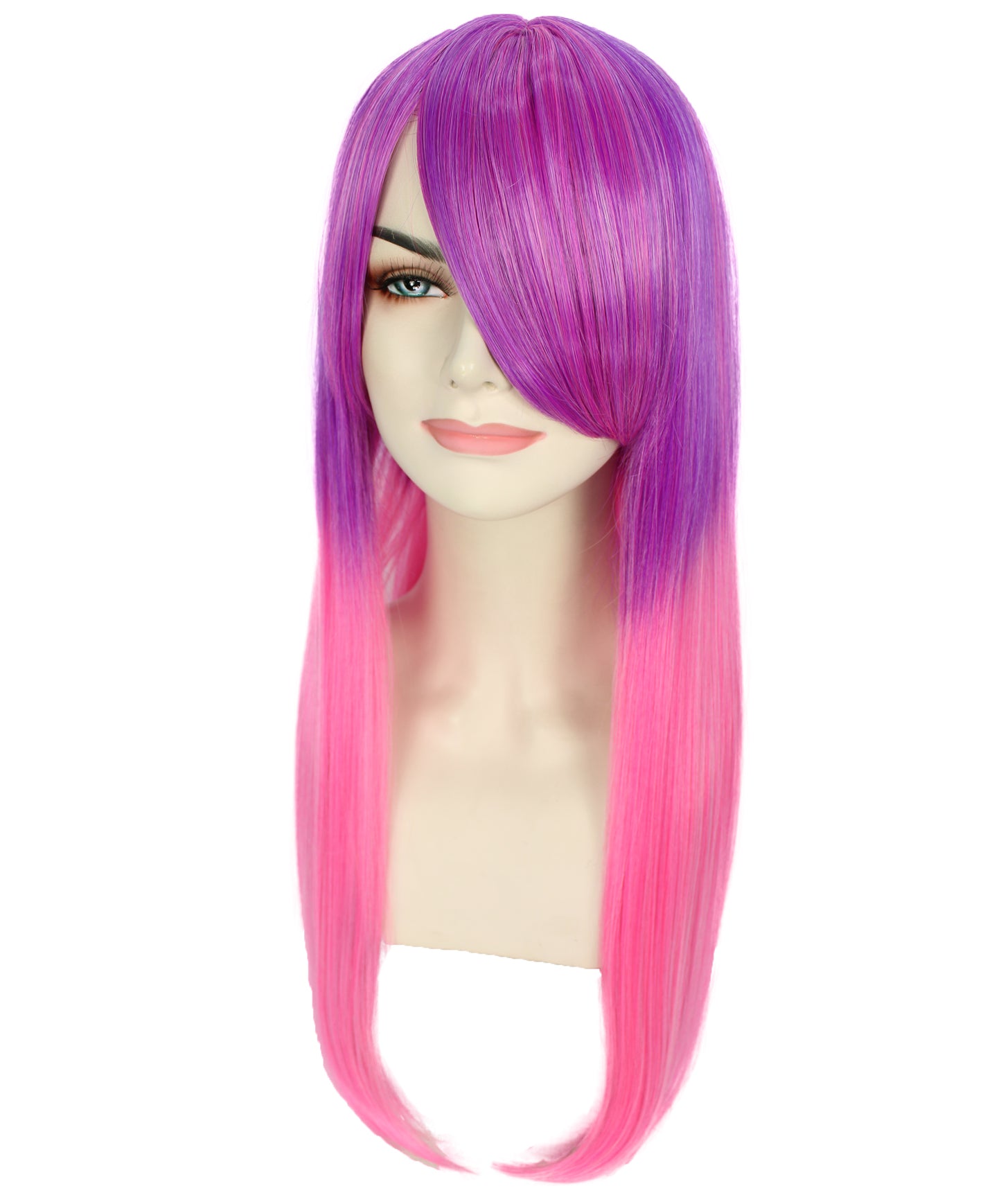 Made of flame-retardant Synthetic Fiber, this Straight Pink Cosplay Wig comes with an adjustable lining that can be stretched up to 22 inches in diameter making it perfect for both adults and children up to 5.