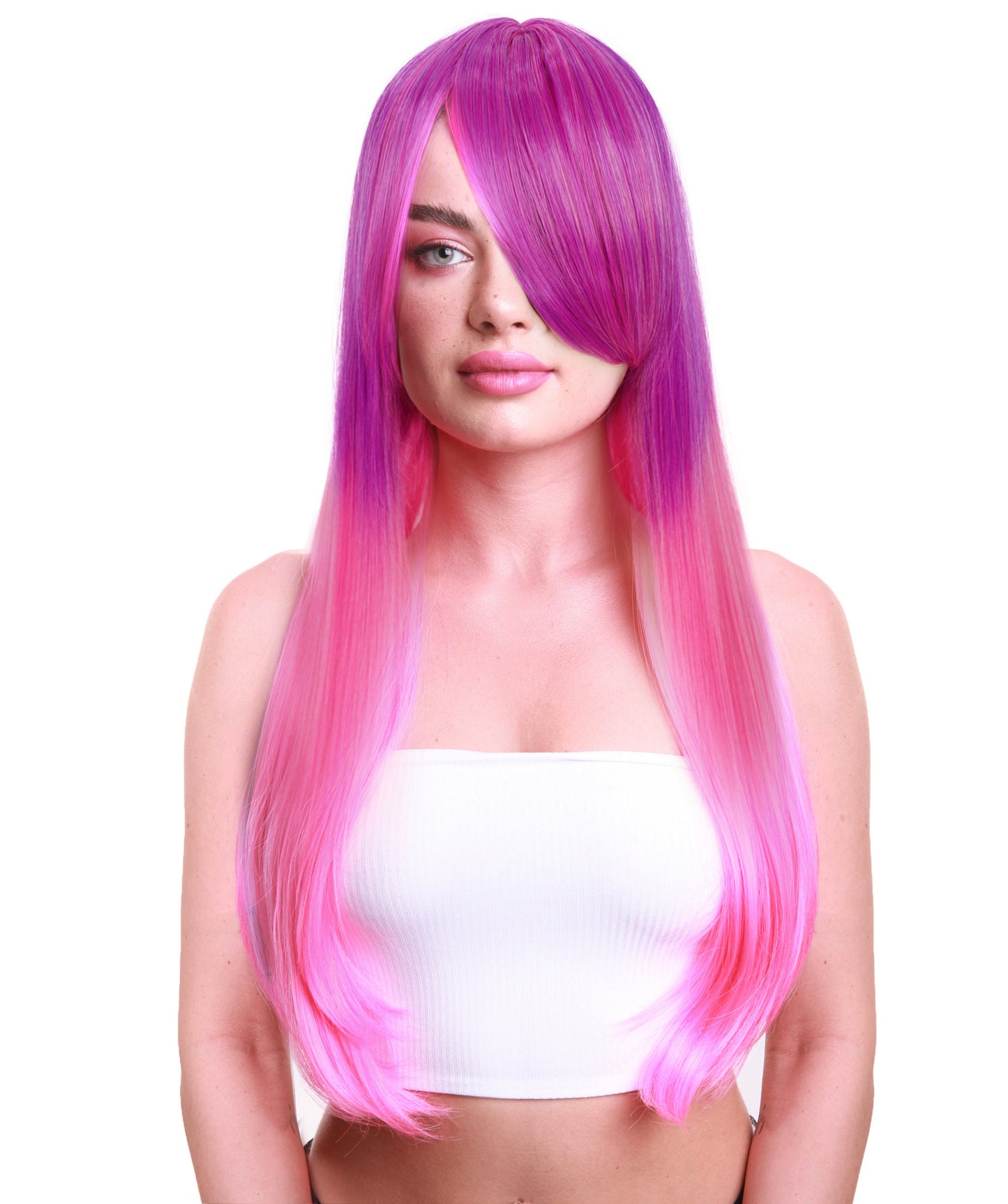 Women Gradation Straight Pink Fancy Wig | Premium Breathable Capless Cap