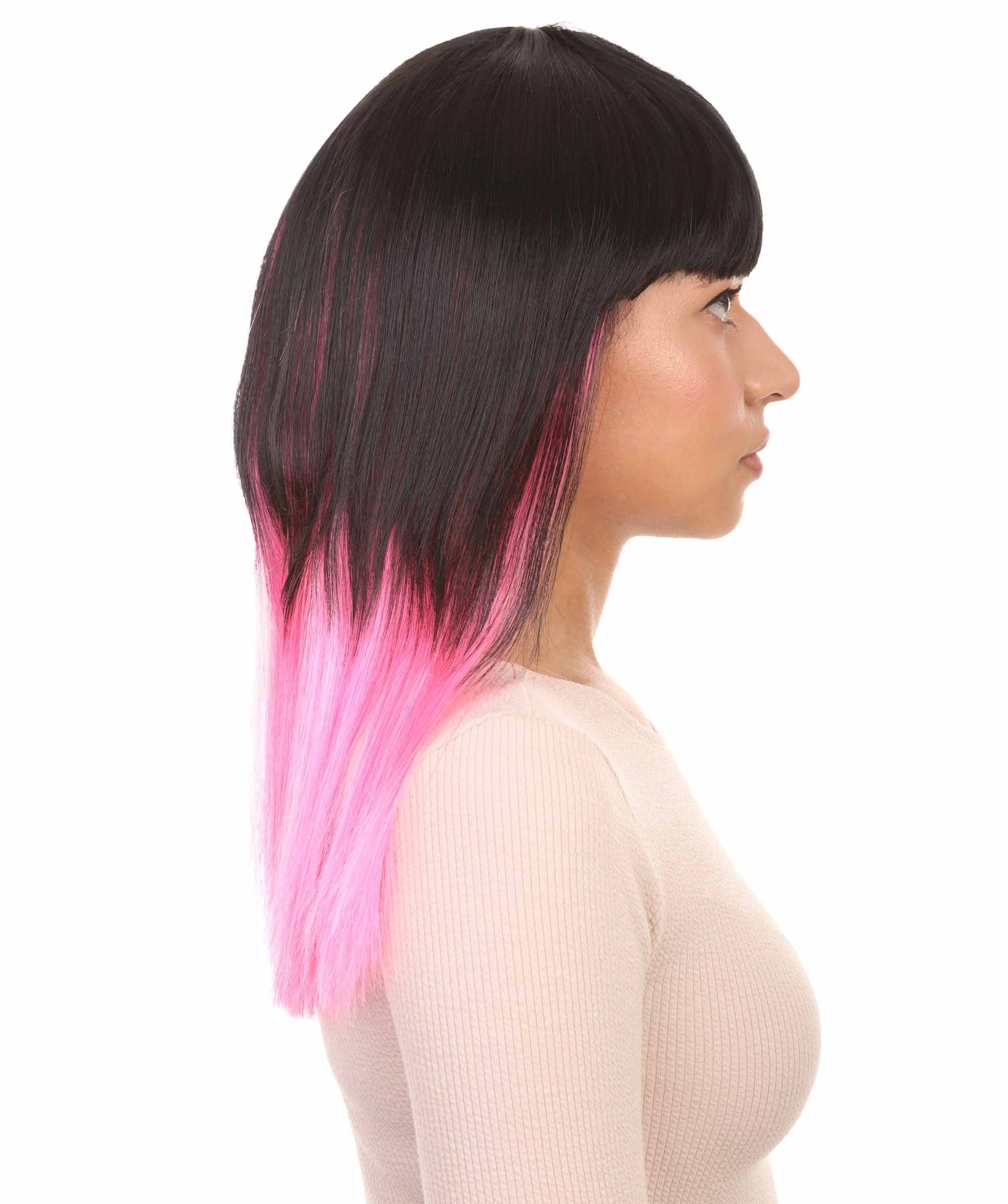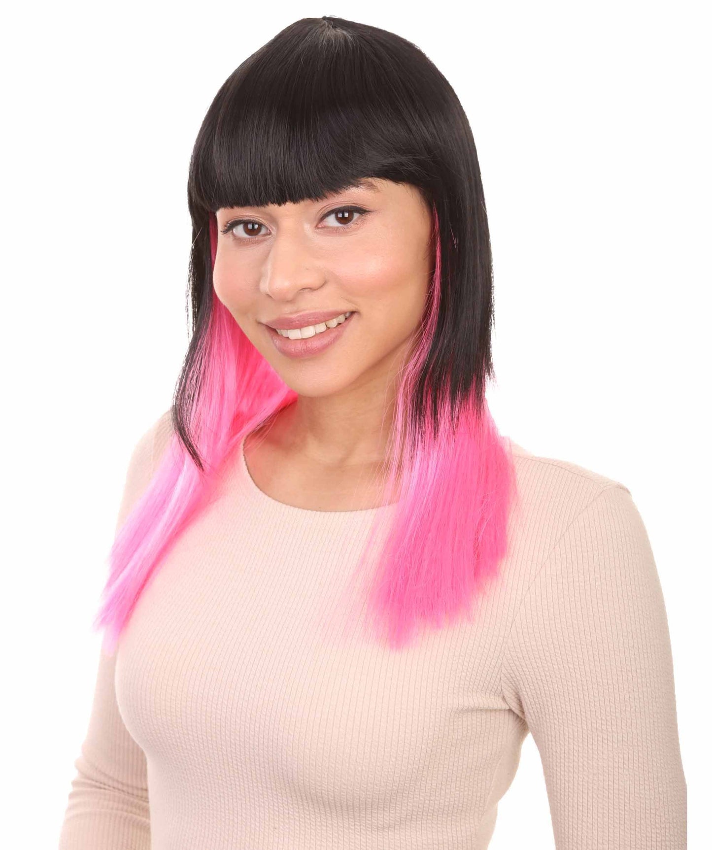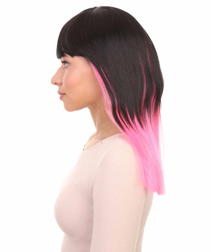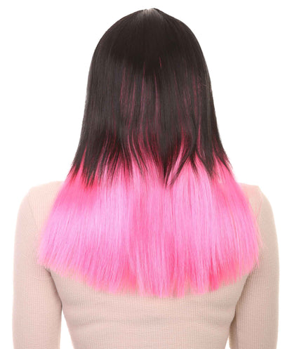 Black Pink Bob Womens Wig | Medium Fashion Fancy Halloween Wig | Premium Breathable Capless Cap