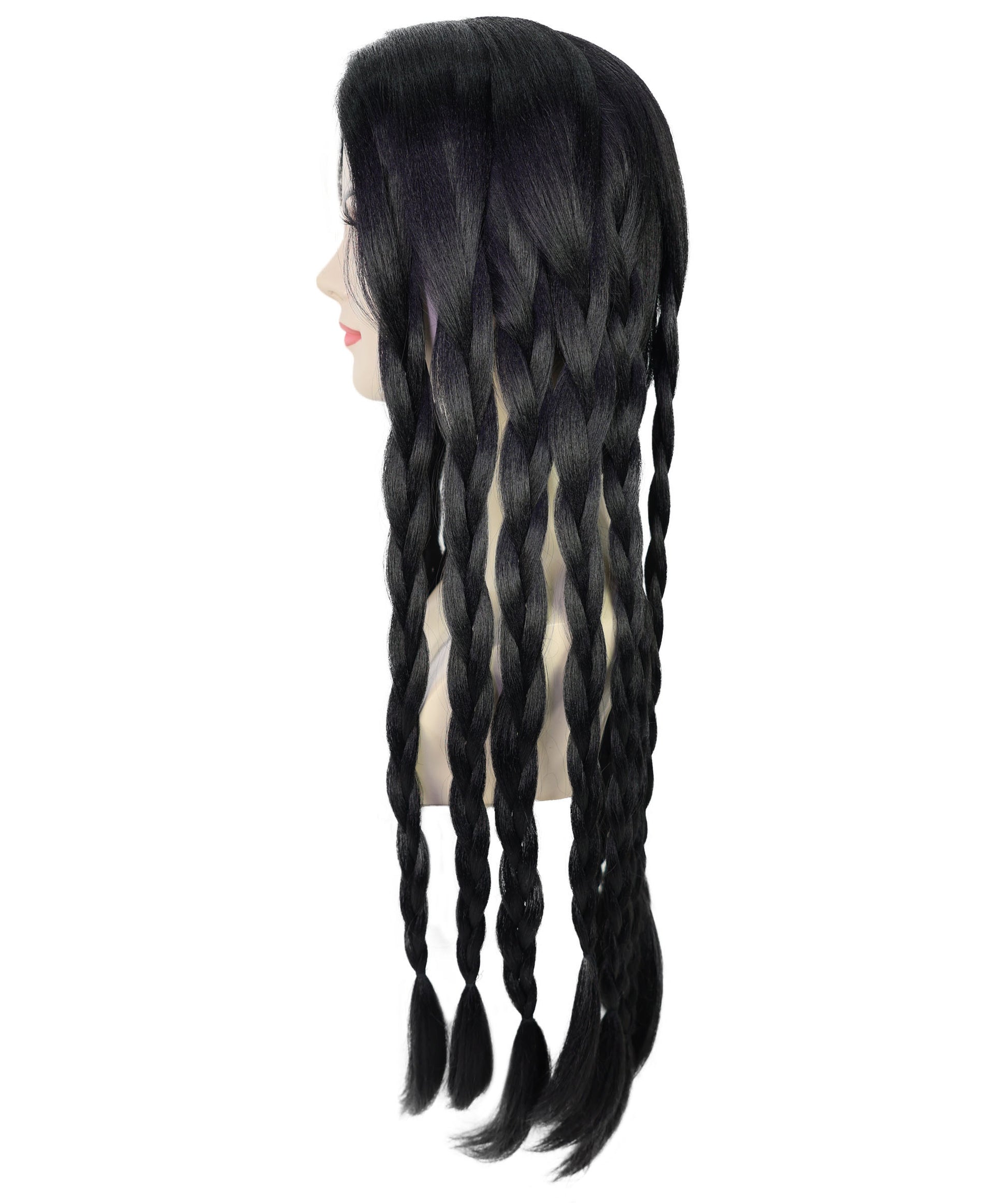 Elevate your party, or themed look with this Adult Women’s Long Black Braided Wig and play a dramatical character at your upcoming and Halloween event.