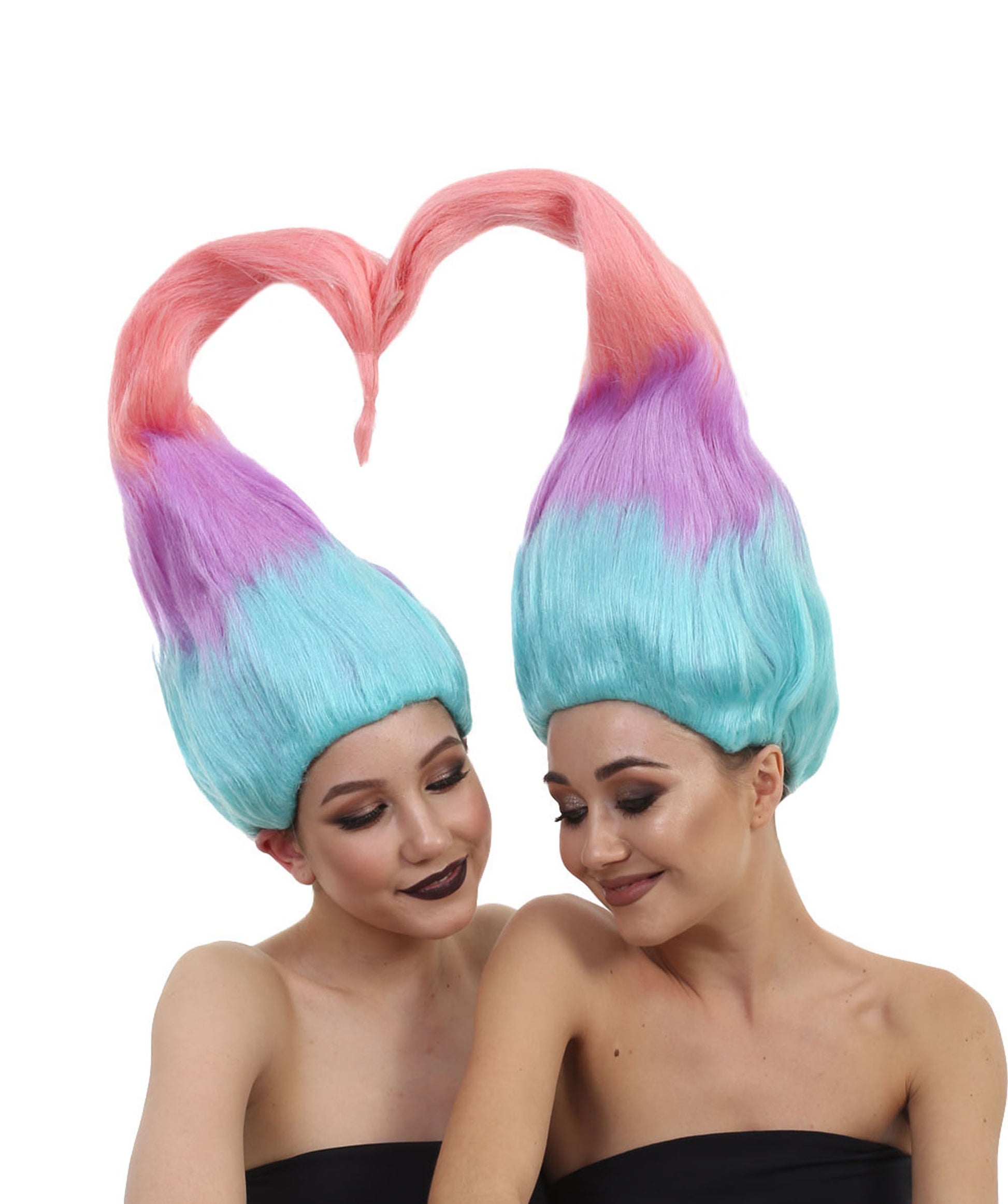 HPO Women Twin Troll Style Wig | Multicolor Wig | Premium Breathable Capless Cap