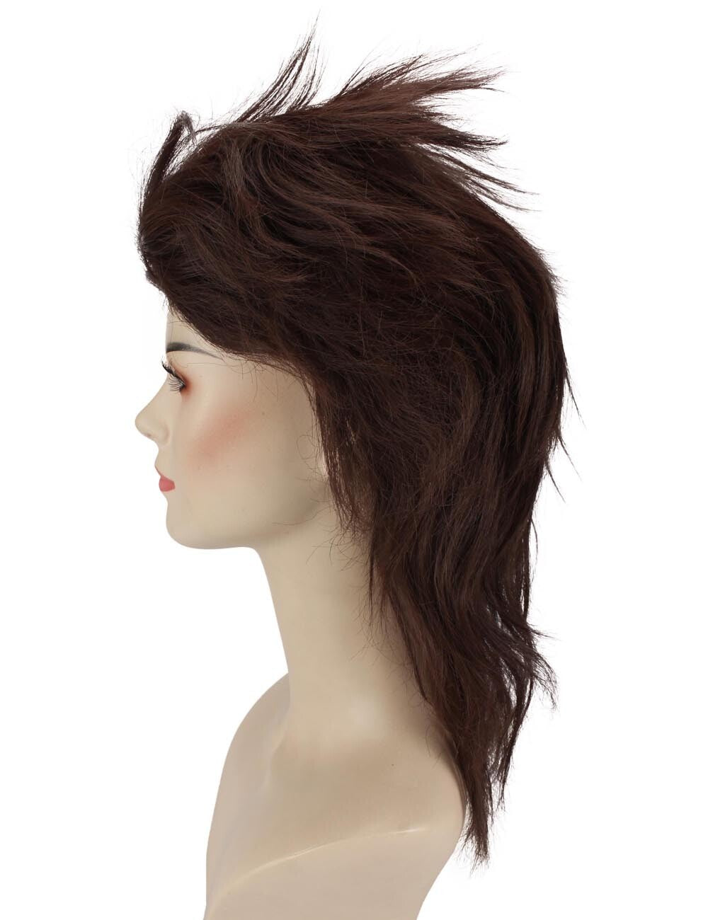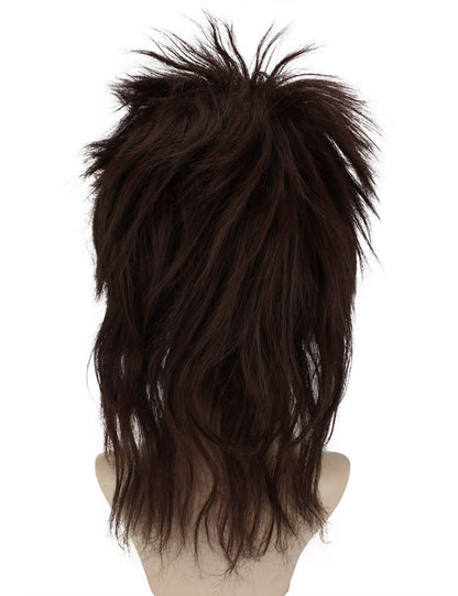 The great attention to detail of this Dark Brown Mullet Wig reflects the essence of the 1980s mullet haircut, which is long in back and short in front, giving it an authentic and vintage appearance. When you want to make a statement at Halloween parties, costume events, or any other occasion, the dark brown color provides a touch of sophistication that makes you stand out.