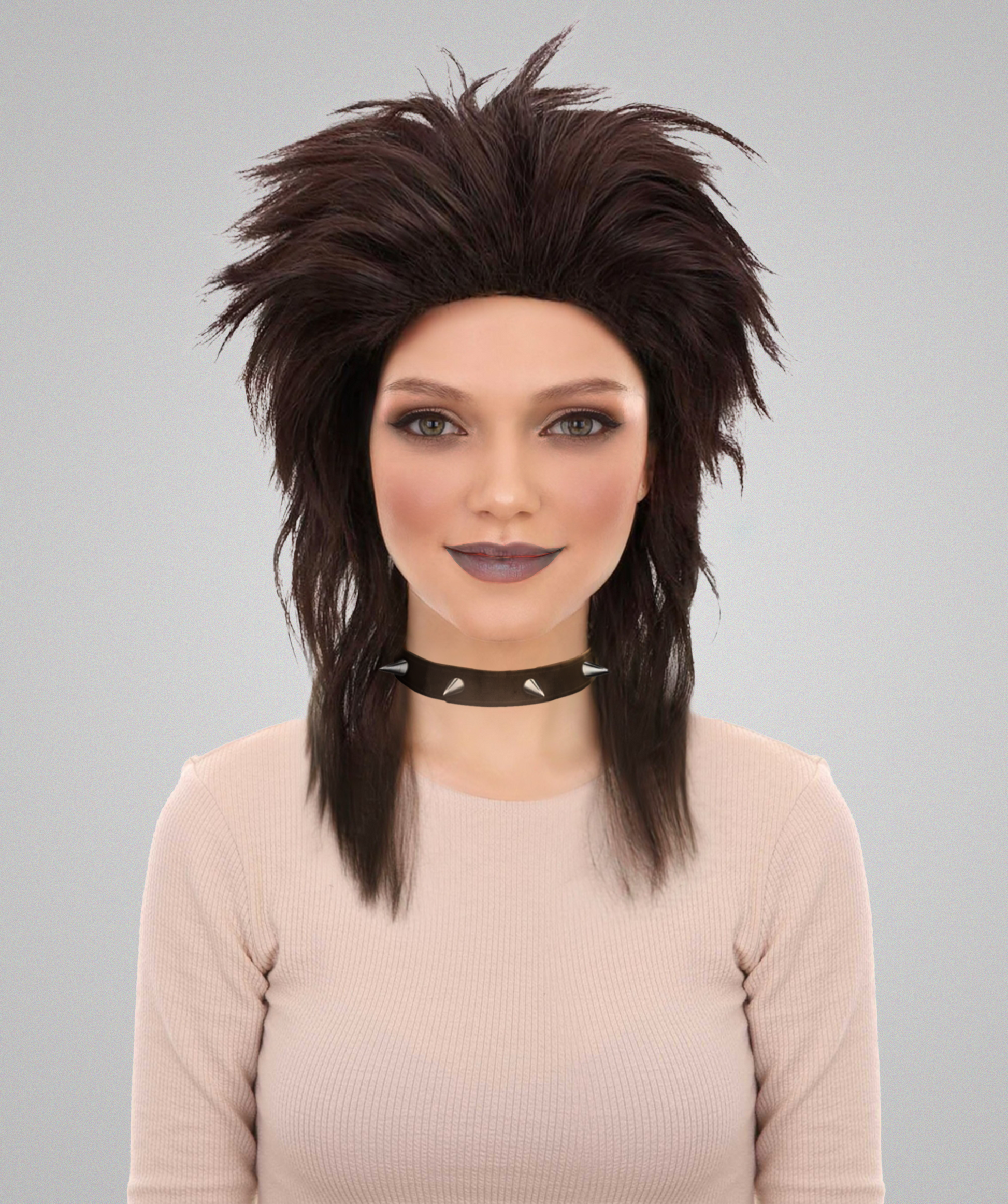 With our Adult Women's 80s Dark Brown Mullet Wig, you can step back in time and embrace the retro look. It's the ideal accessory for Halloween celebrations. With the safety and style combined in this flame-retardant synthetic fiber wig, you can travel through nostalgia with confidence.