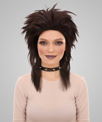 Women's Dark Brown 80's Mullet Wig | Perfect for Halloween | Flame-retardant Synthetic Fiber